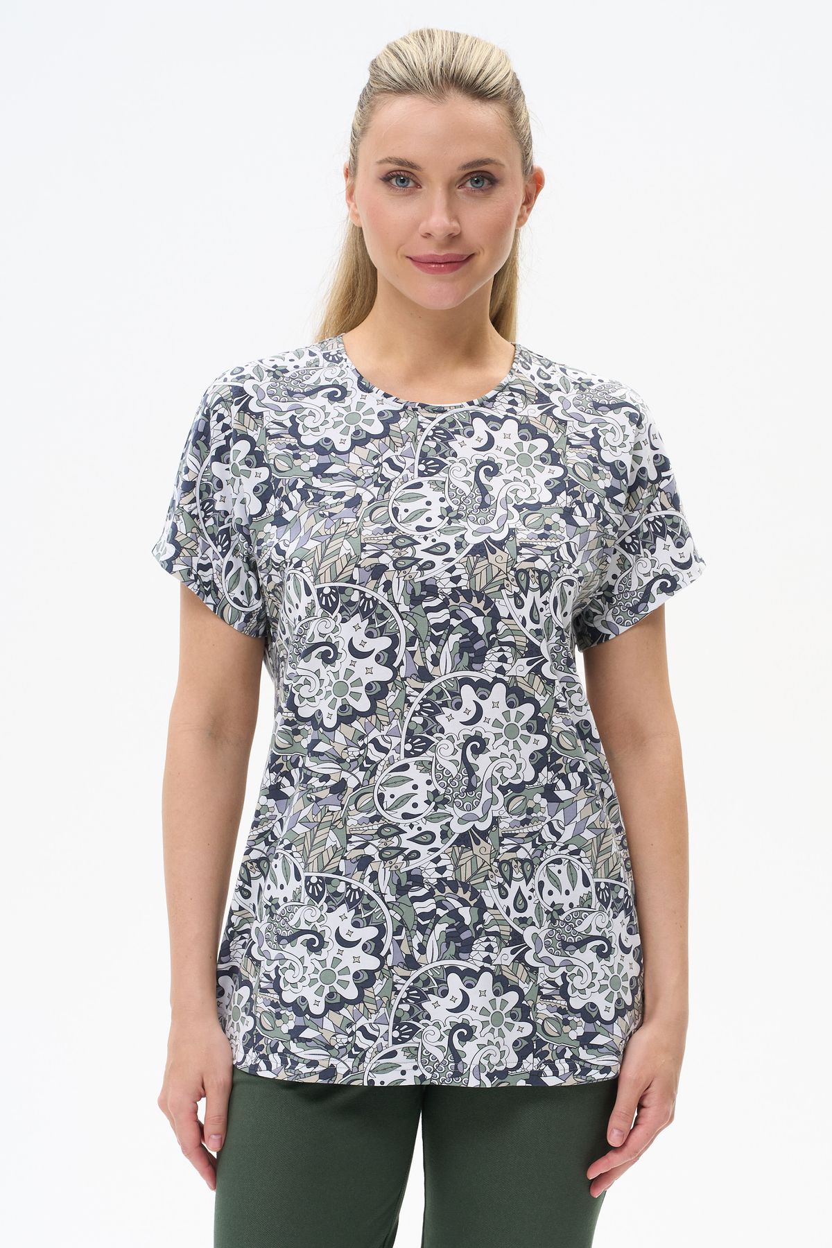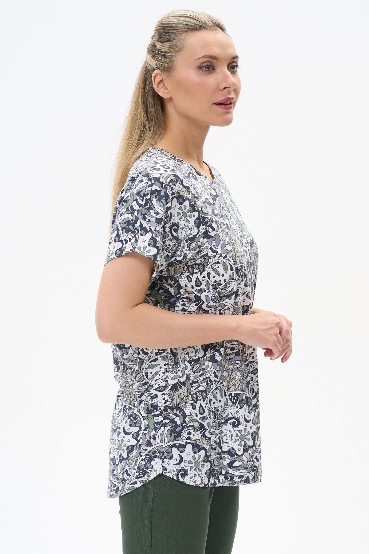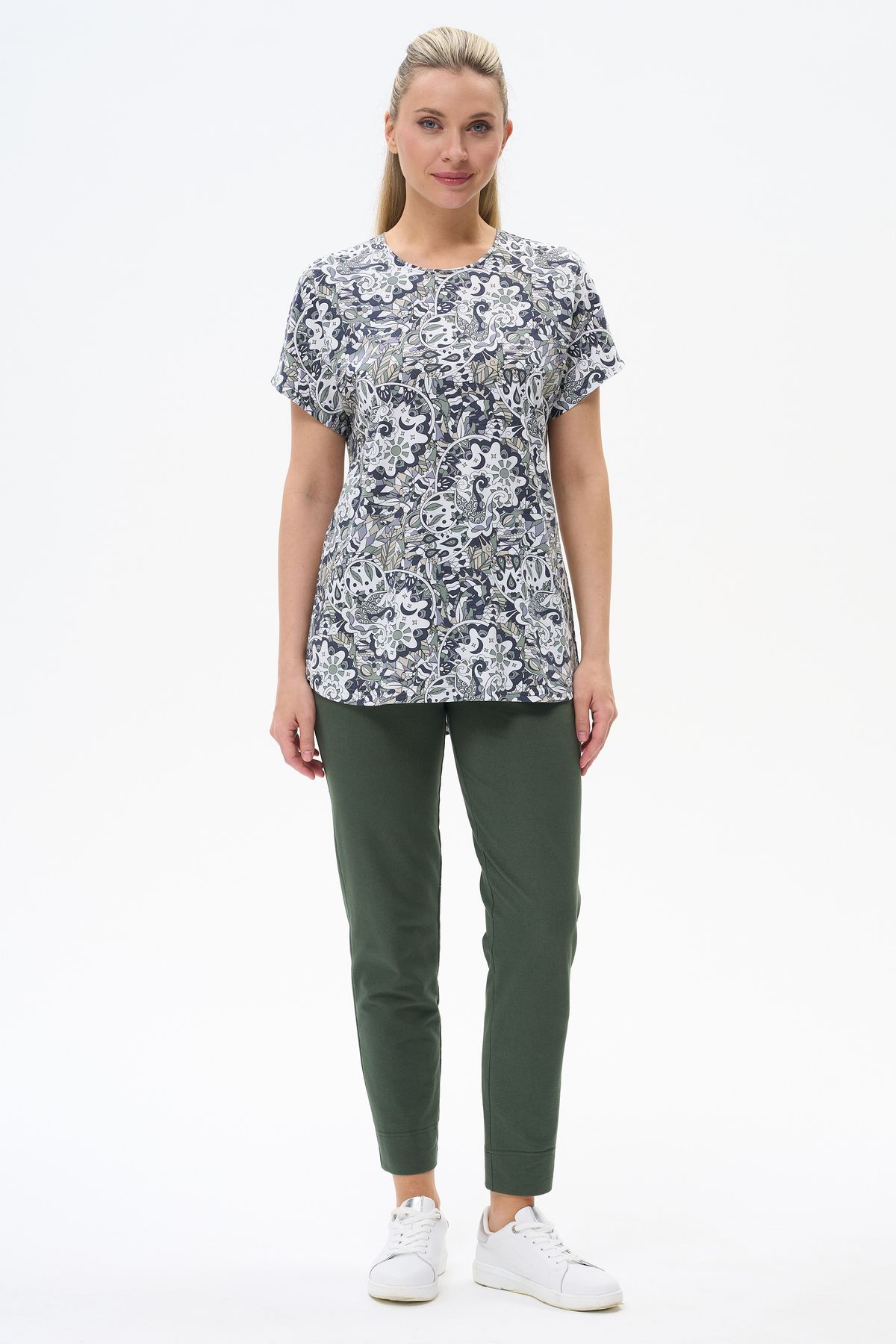 Описание: Футболка из хлопкового полотна. Круглый вырез горловины, оформлен отделочным кантом. Цельнокроенные короткие рукава, фигурная линия низа. Рост модели на фото 177см.