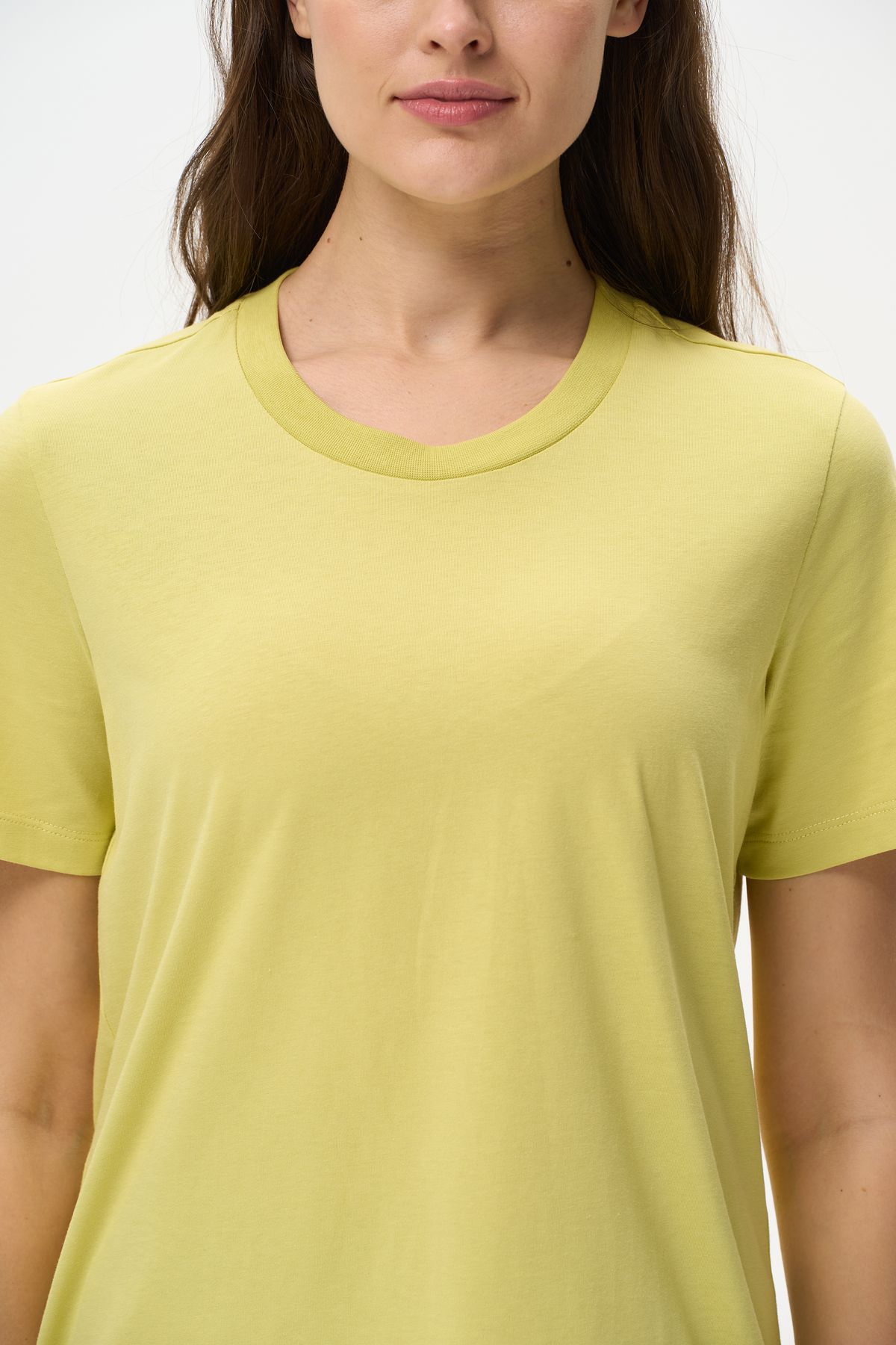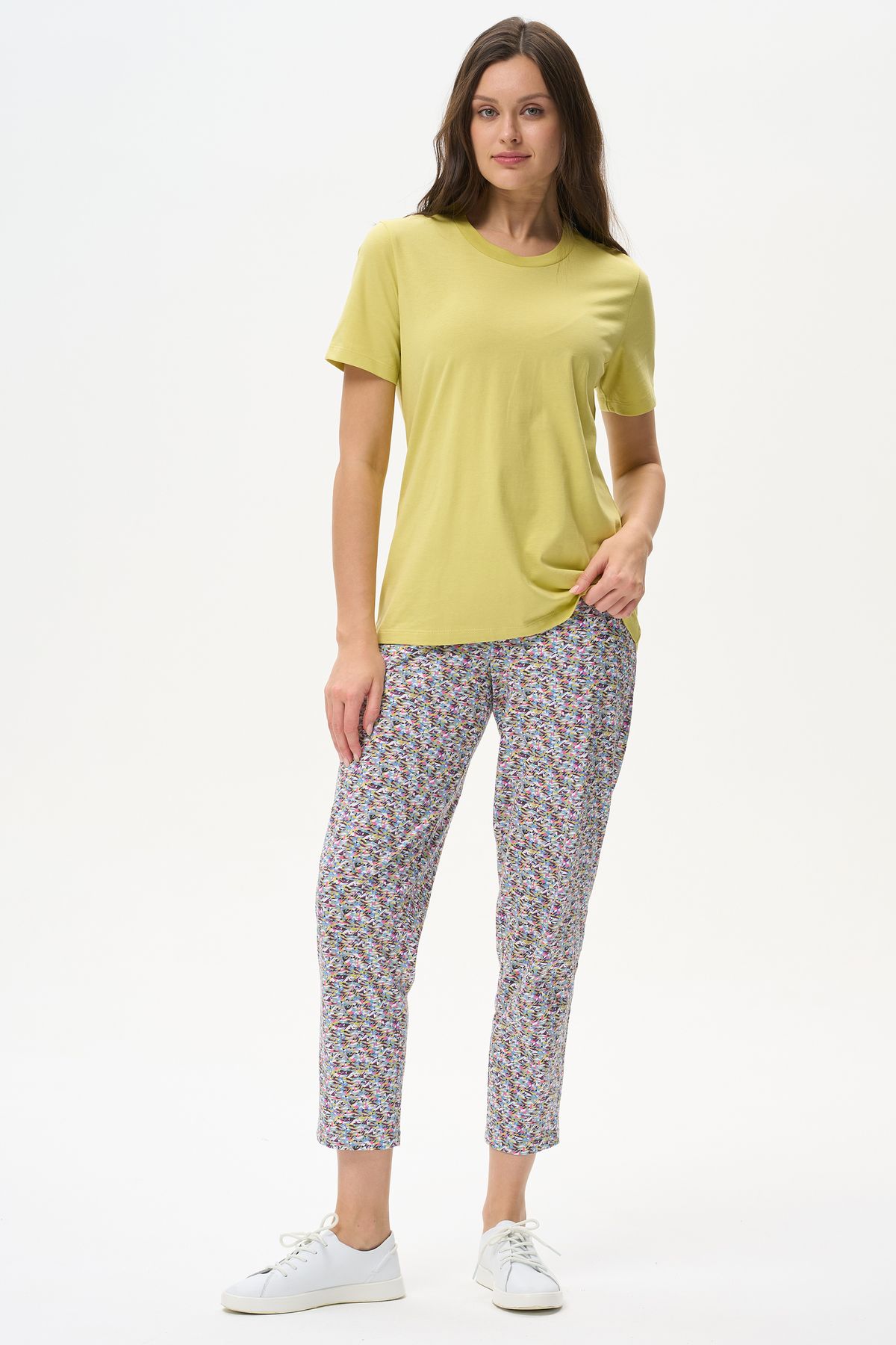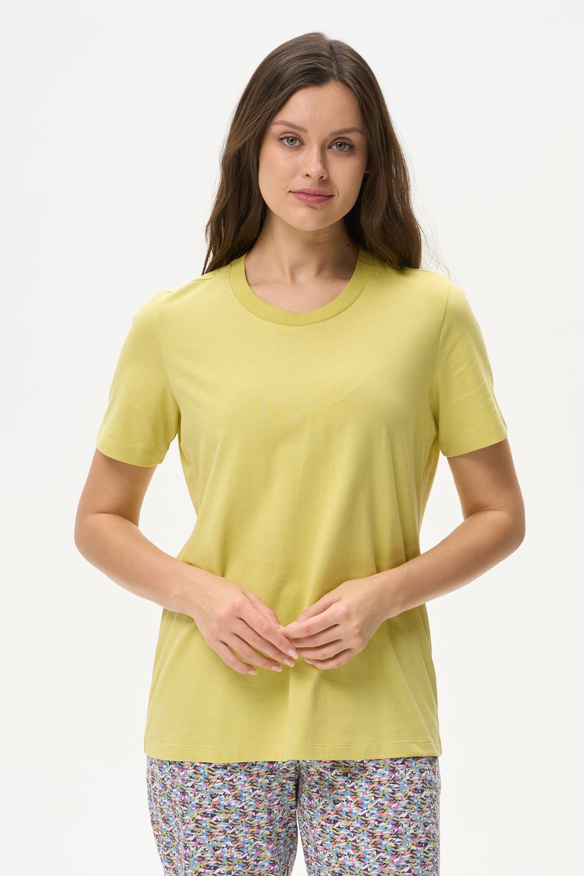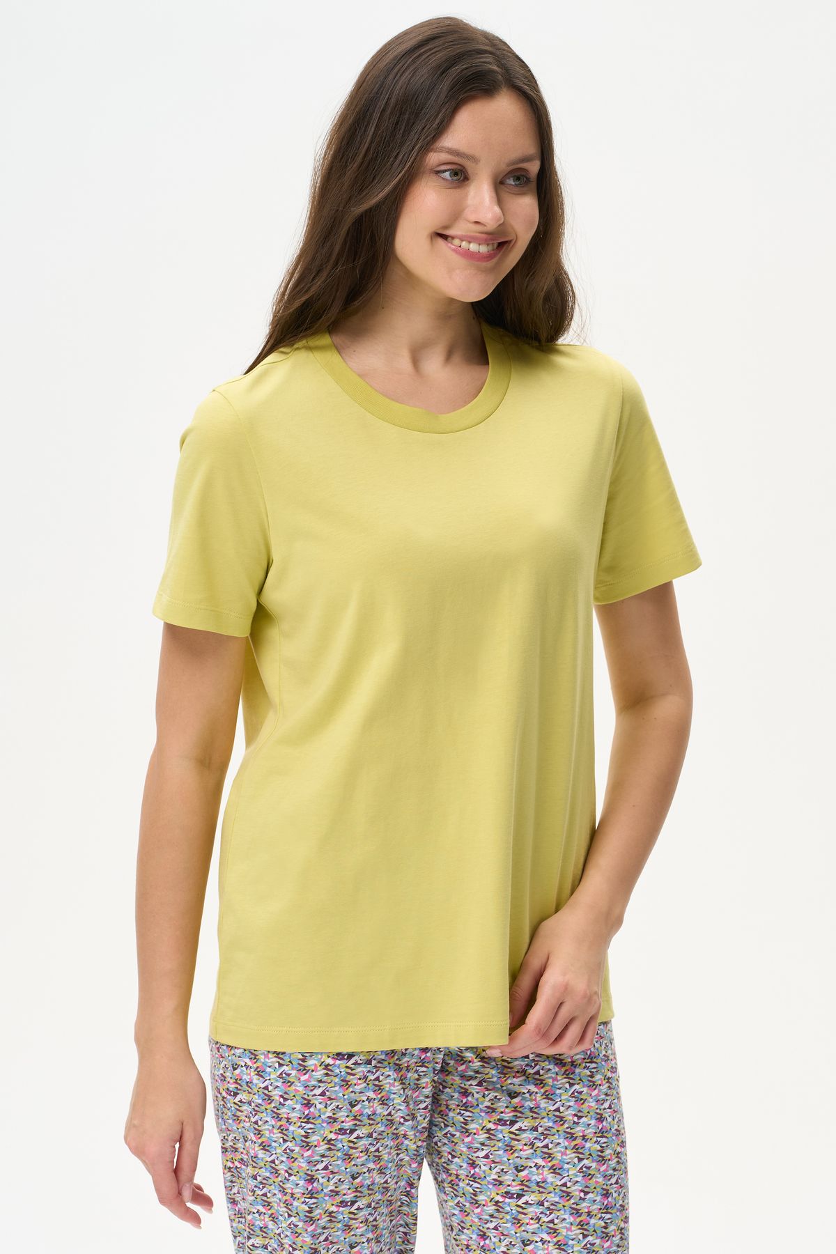Описание: Футболка модного кроя - свободная и чуть укороченная, до середины бёдер. Выполнена из хлопкового трикотажного полотна. Вырез горловины обработан хлопковым полотном - рибана. Свободный втачной рукав гармонизирует общий стиль. Рост модели на фото 175см