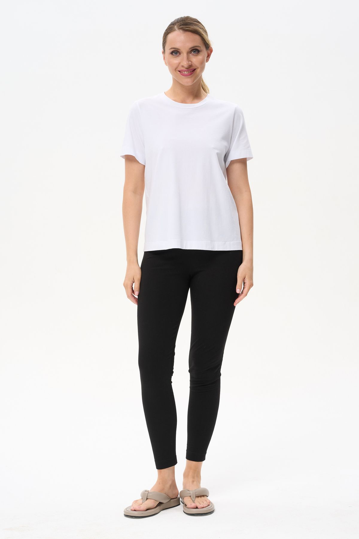 Описание: Футболка модного кроя - свободная и чуть укороченная, до середины бёдер. Выполнена из хлопкового трикотажного полотна. Вырез горловины обработан хлопковым полотном - рибана. Свободный втачной рукав гармонизирует общий стиль. Рост модели на фото 175см