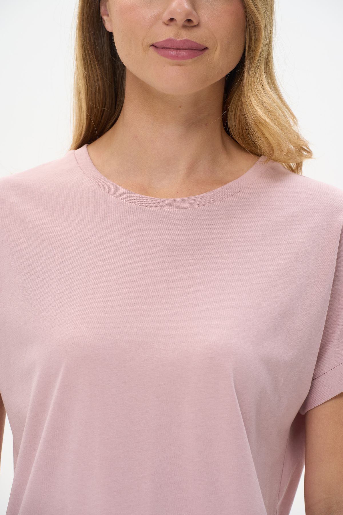 Описание: Футболка из хлопкового полотна качества пенье. Круглый вырез горловины окантован хлопковым полотном рибана. Цельнокроеные короткие рукава с отворотами. Рост модели на фото 177.
