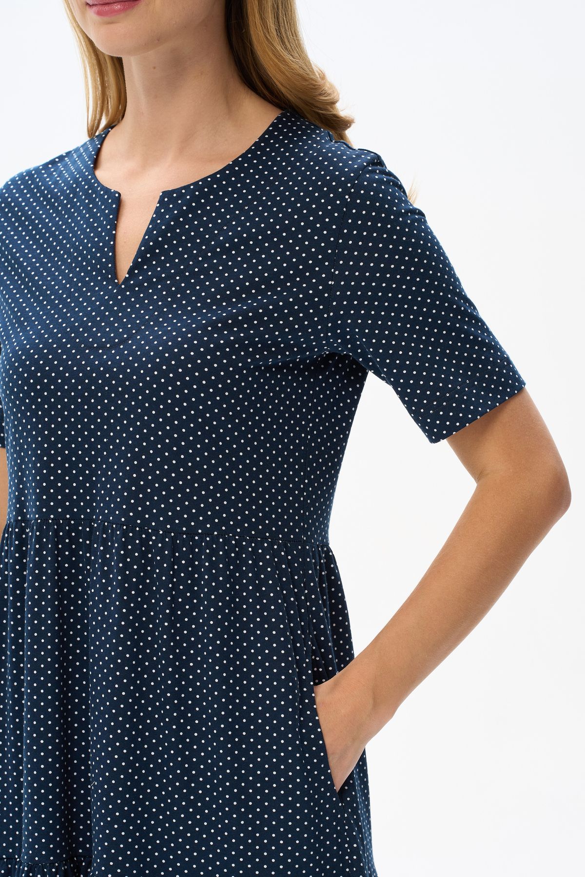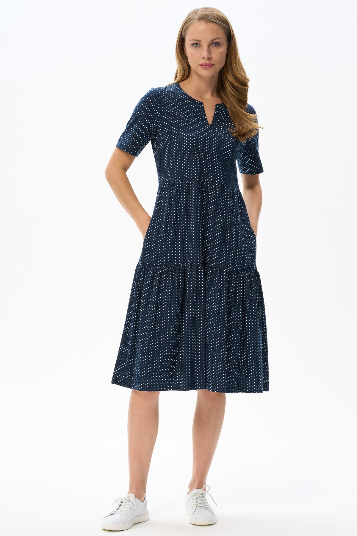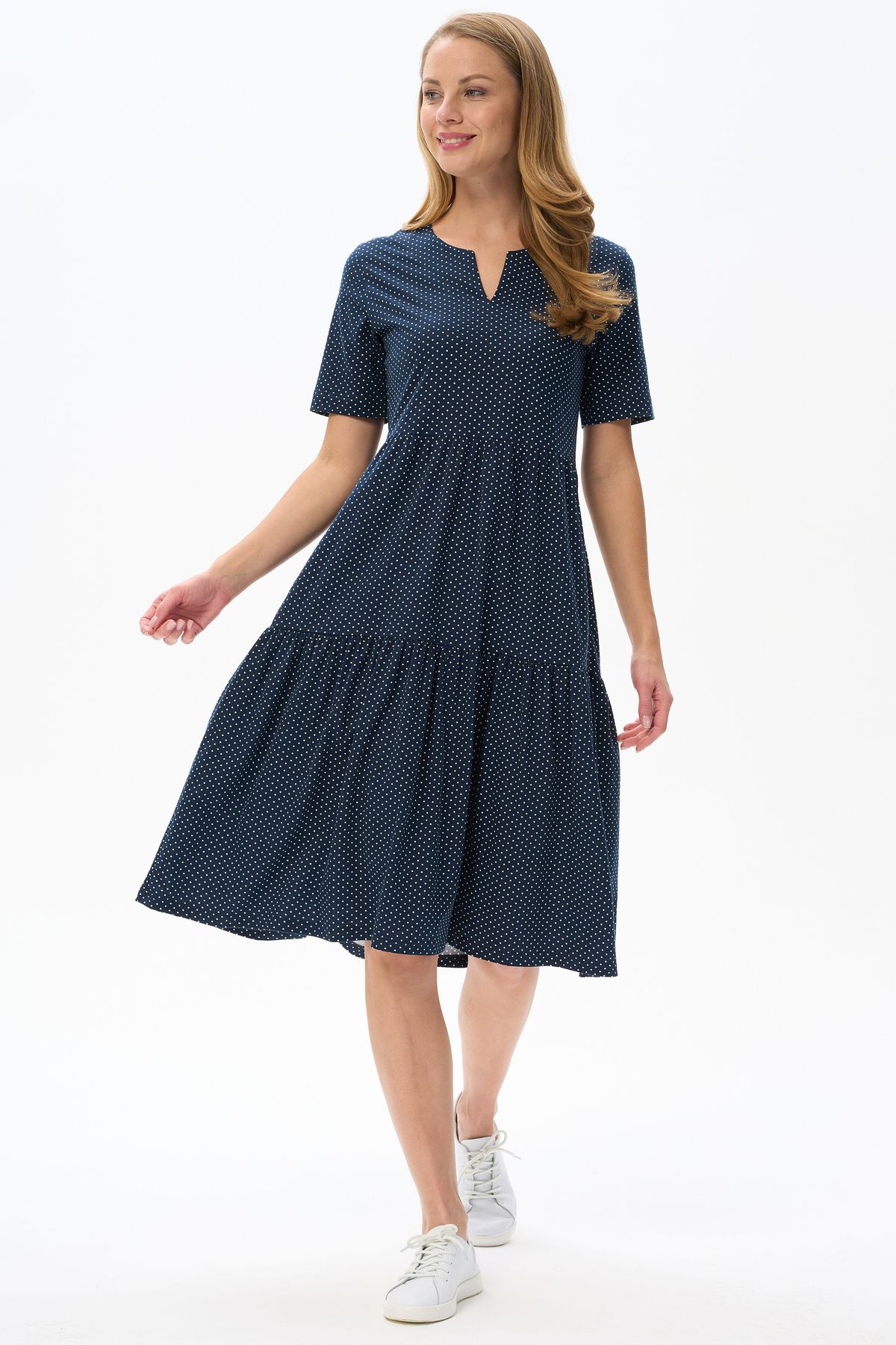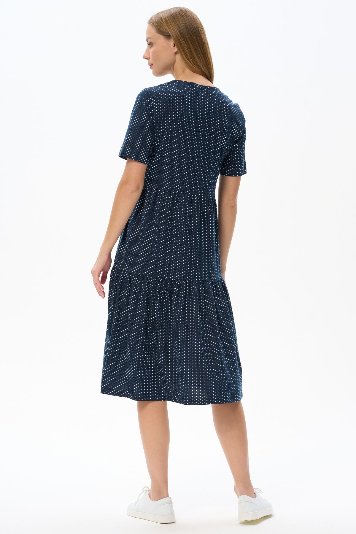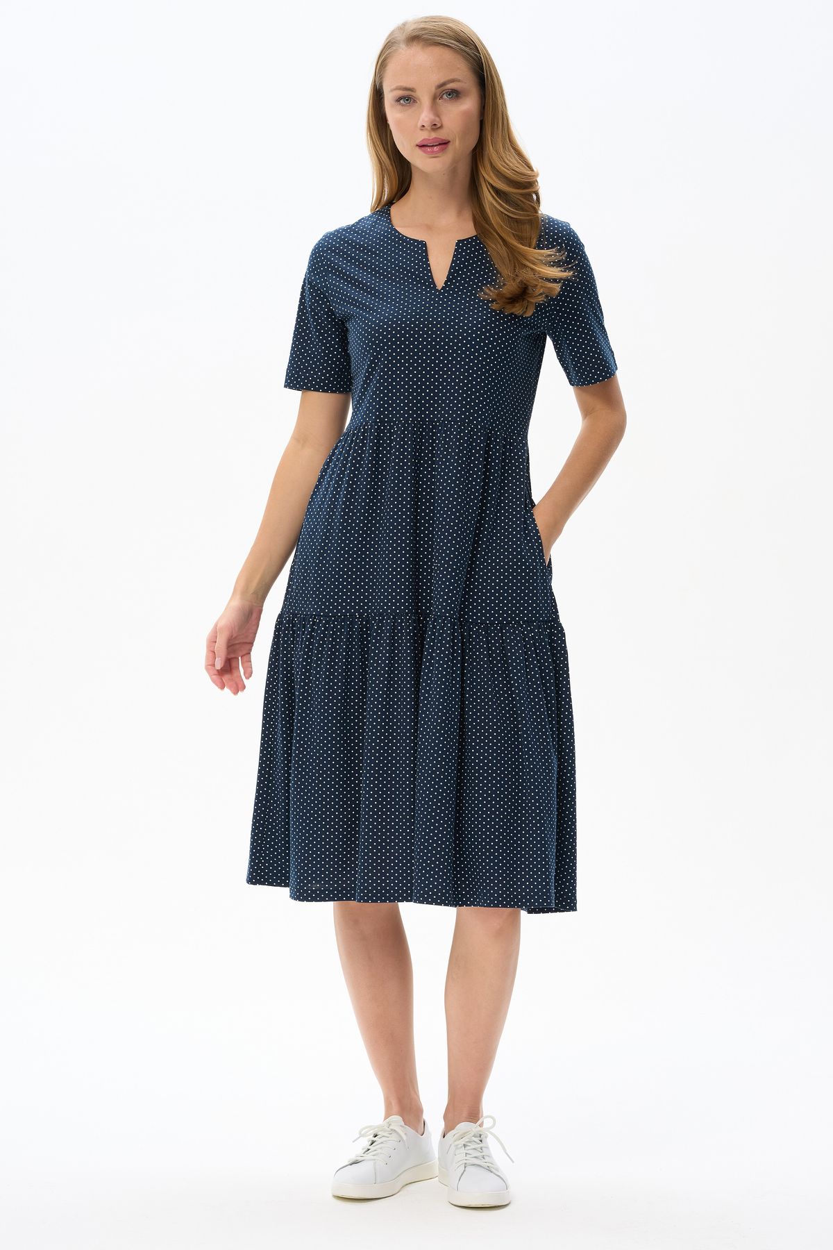 Описание: Комфортное ярусное платье, полуприлегающего силуэта, выполнено из хлопкового полотна. Круглый вырез горловины, втачные короткие рукава, карманы в боковых швах. Рост модели на фото 178см.