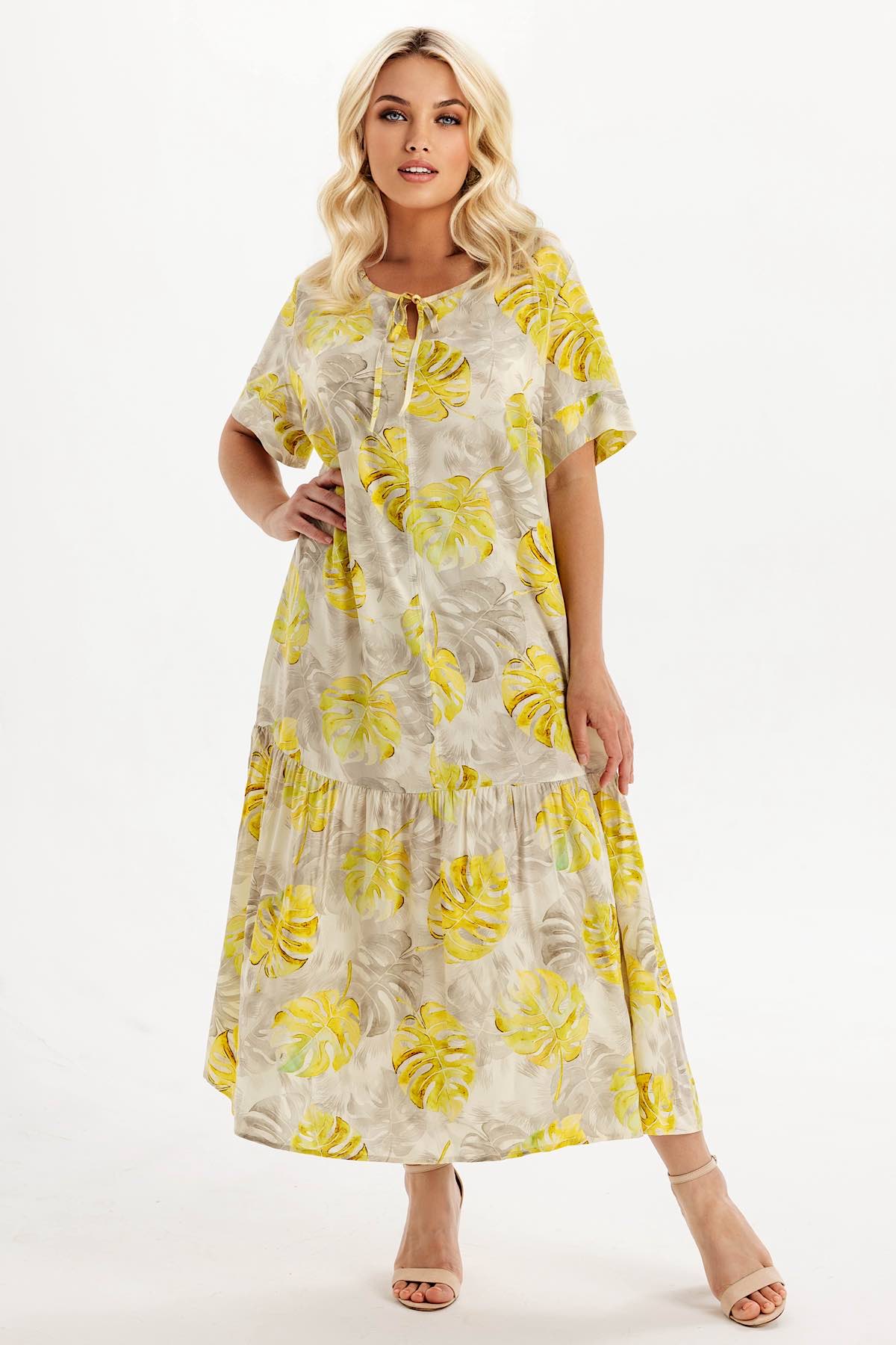 Описание: Летнее женское платье из штапеля с карманами. Вы будете чувствовать себя комфортно даже в самую жаркую погоду. Юбка-волан эффектно струится при ходьбе. Этот образ подчеркнет вашу женственность и романтичность. Фирменные лекала гарантируют хорошую посадку.Рукав короткий. О-горловина завязывается на завязку. Платье выполнено из натуральной ткани штапель, стирка при 30 градусов, усадка 5%.
