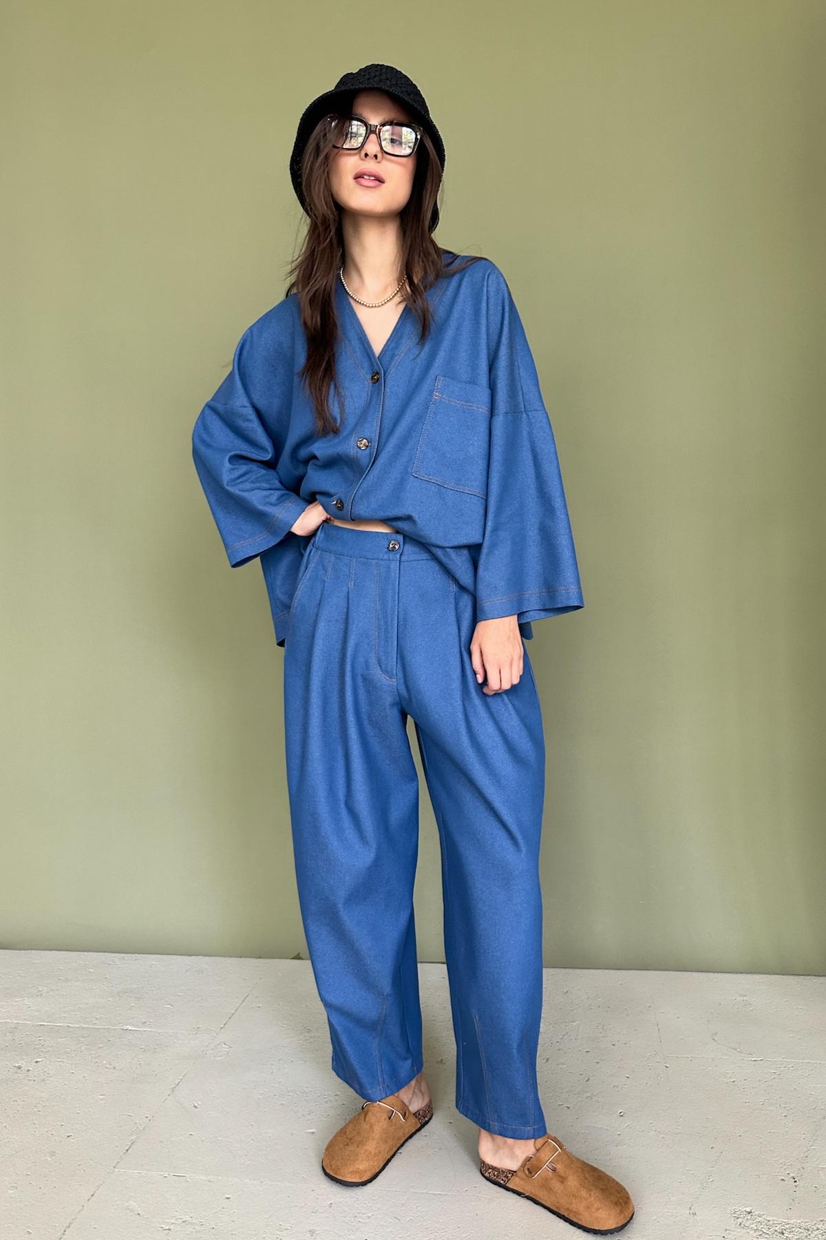 Описание: Брюки-бананы из мягкого хлопка с кармана. Подойдут для создания непринужденного городского образа. Брюки можно дополнить коротким топом или длинной рубашкой или блузкой. Такой комплект—идеальный  вариант для тех, кто ценит качество и минимализм.