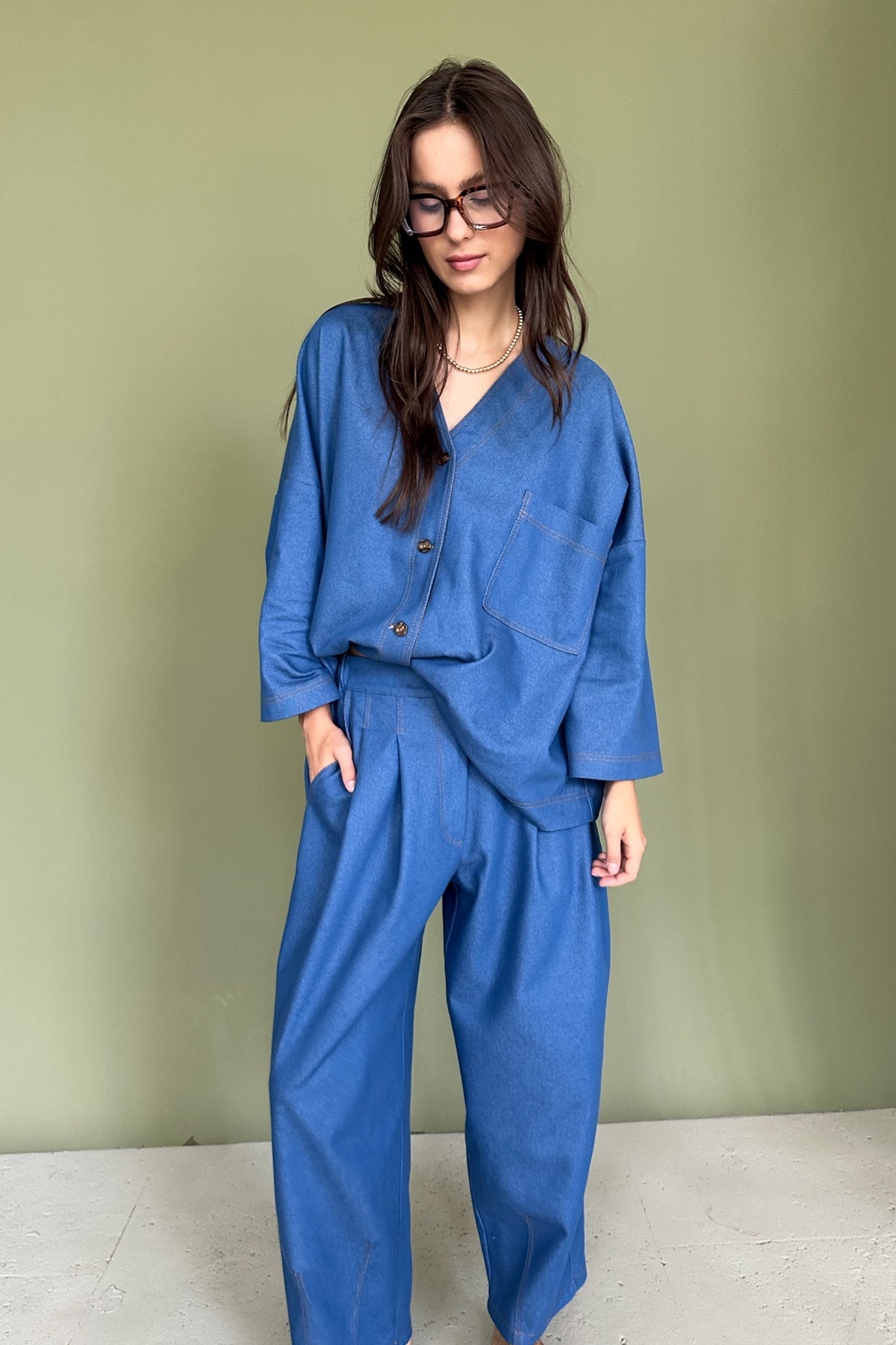Описание: Все изделия имеют безупречный пошив и идеальную посадку. Рубашка широкая из джинса. Свободный крой рубашки не стесняет ваши движения. Рубашка идеально садится на любой тип фигуры. Все изделия уникальны и отшиваются небольшими партиями. Стирка изделий вручную либо использовать машинную стирку в деликатном режиме (не более 30 градусов).