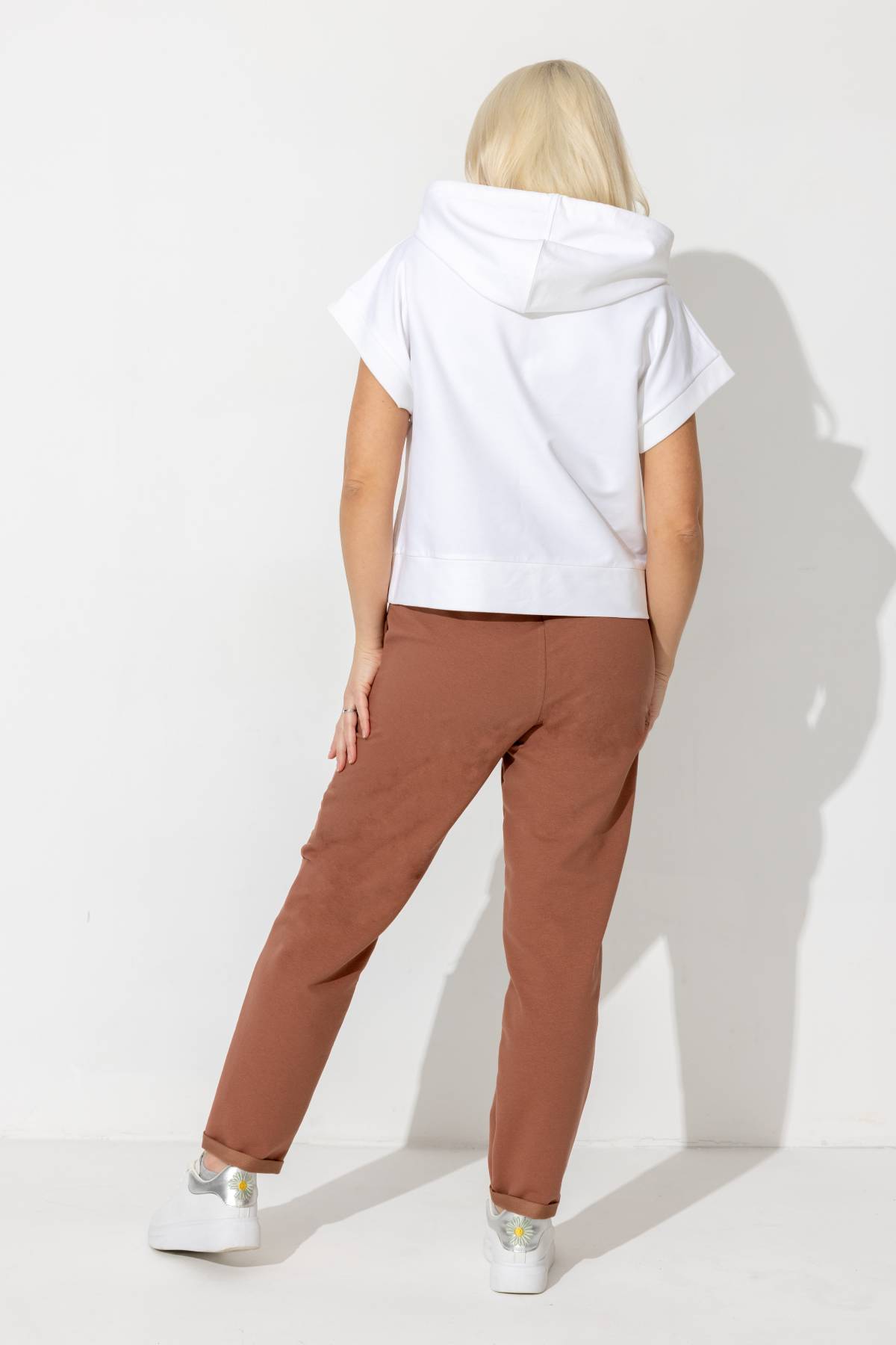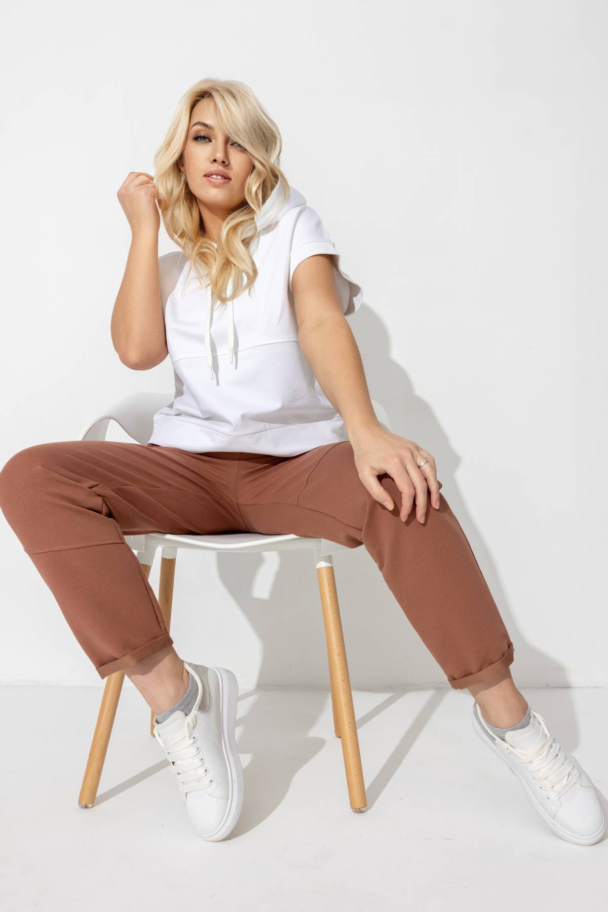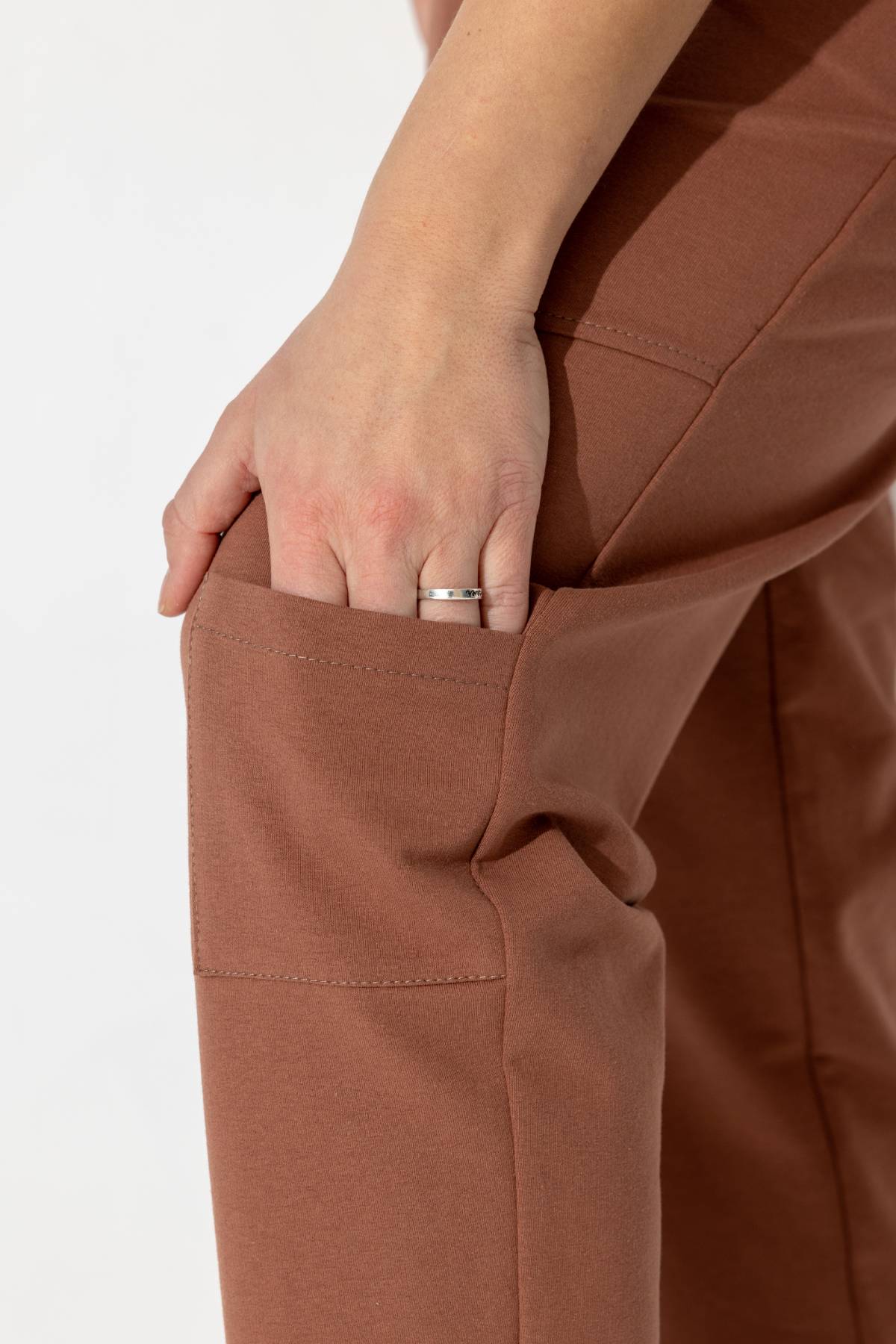 Описание: Брюки женские из футера-двунитки. Трикотажные женские брюки свободного кроя, слегка зауженные к низу, с двумя боковыми карманами. Высокая посадка и пояс на широкой резинке – 4см. Трикотажные брюки с идеальной посадкой модного силуэта.