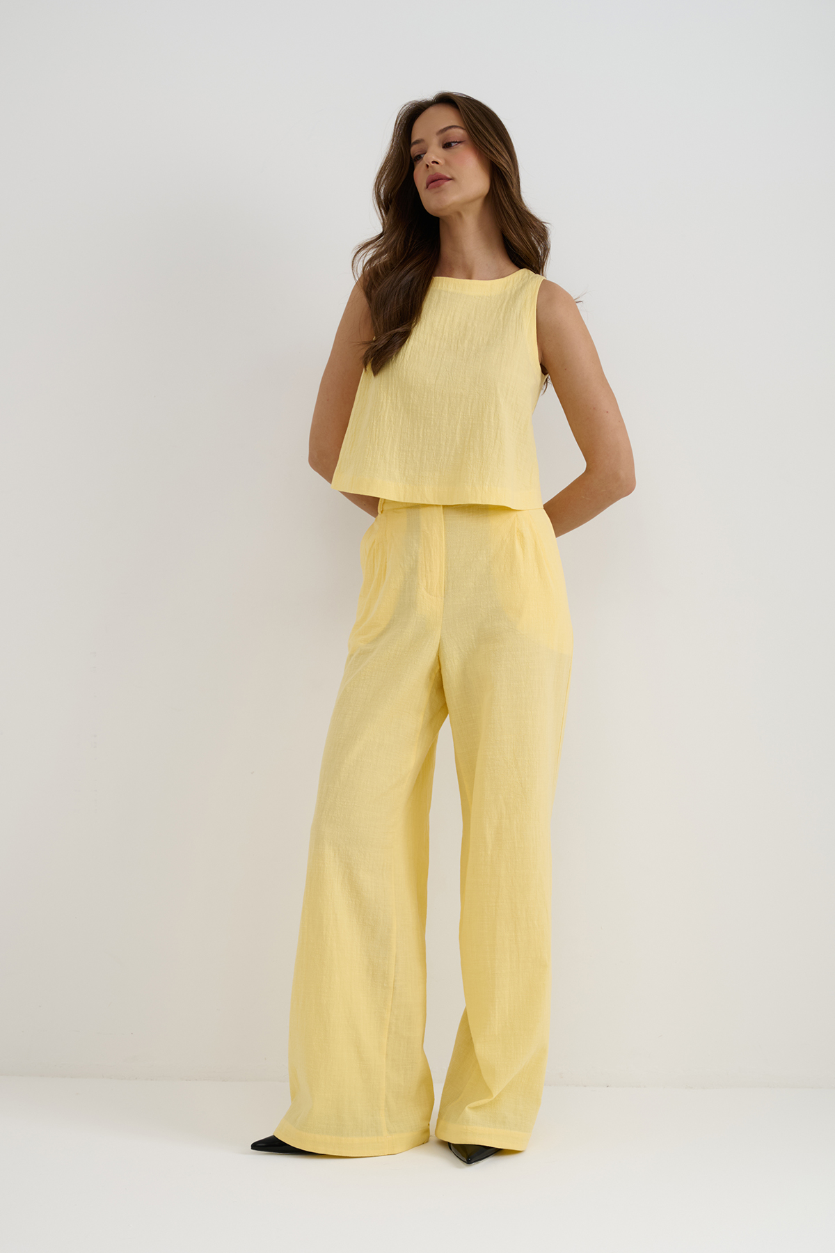Брюки палаццо с высокой талией из натурального высококачественного хлопка, подойдут для создания непринужденного городского или домашнего образа. Можно дополнить короткой или длинной рубашкой Ypsilon на пуговицах. Такой комплект—идеальный вариант для тех, кто ценит качество и минимализм. Сделано в России на собственном производстве.