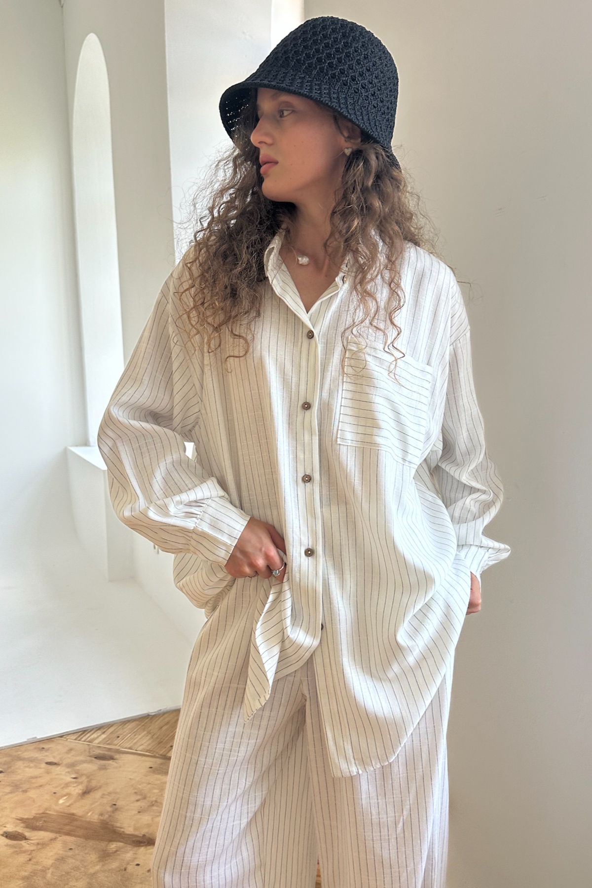 Описание: Все изделия имеют безупречный пошив и идеальную посадку. Костюм SET065 рубашка удлиненная с брюками изо льна и вискозы. Свободный крой рубашки и брюк не стесняет ваши движения, шорты с карманами (высокая посадка, на мягкой резинке, ручной работы) не давят и подходят беременным. Костюм идеально садится на любой тип фигуры. Все изделия уникальны и отшиваются небольшими партиями. Стирка изделий вручную либо использовать машинную стирку в деликатном режиме (не более 30 градусов).
