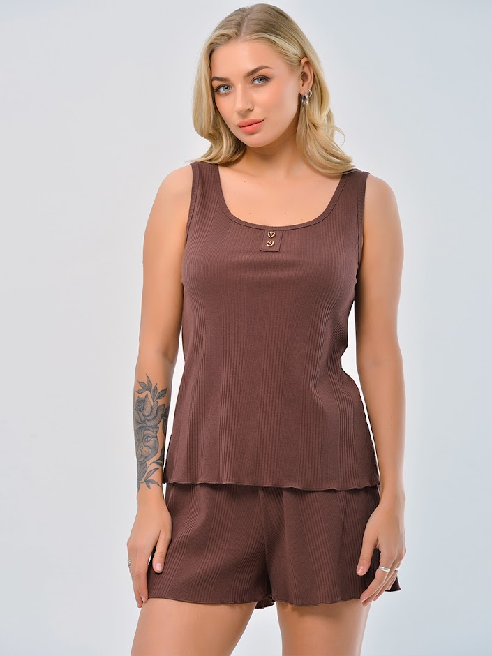 Пижама с фактурой рубчик состоит из майки и