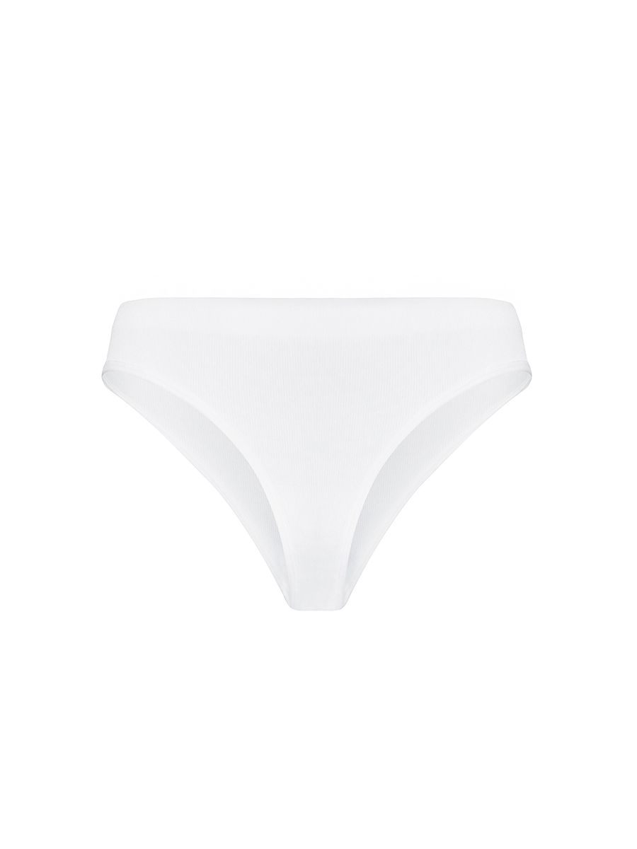 Трусики Tanga со средней посадкой из эластичного рибового полотна в вертикальный рубчик. Эластичная окантовка по краю ножек, ластовица из хлопка. Брендированная резинка по талии.