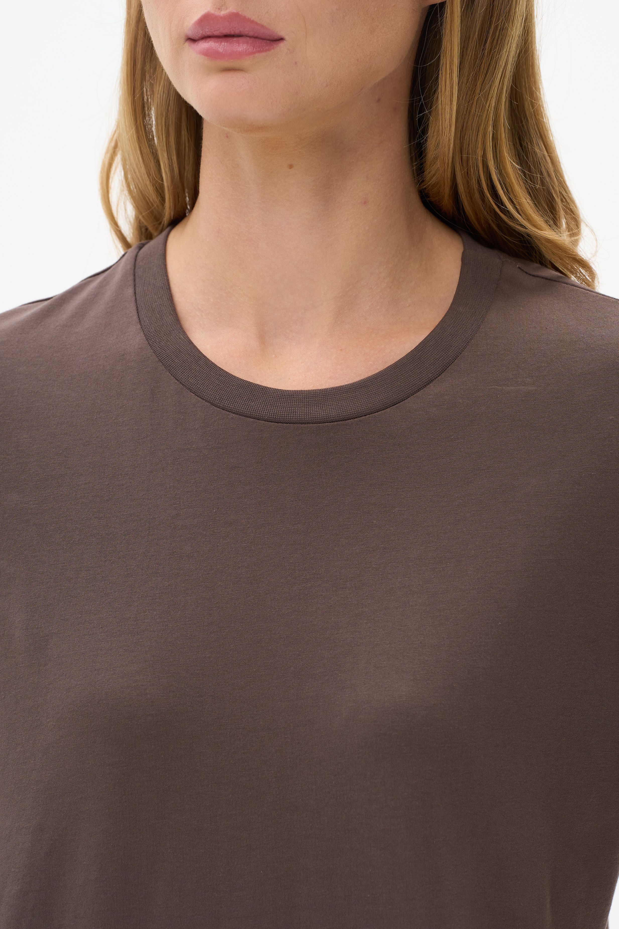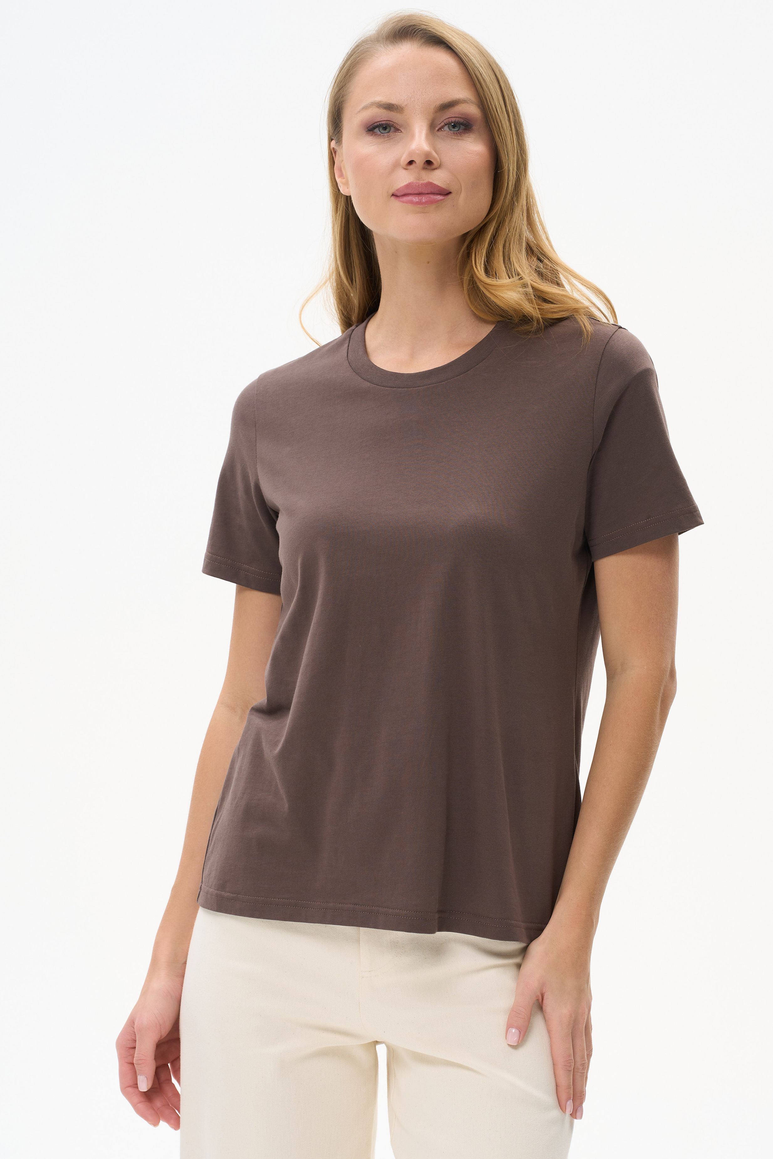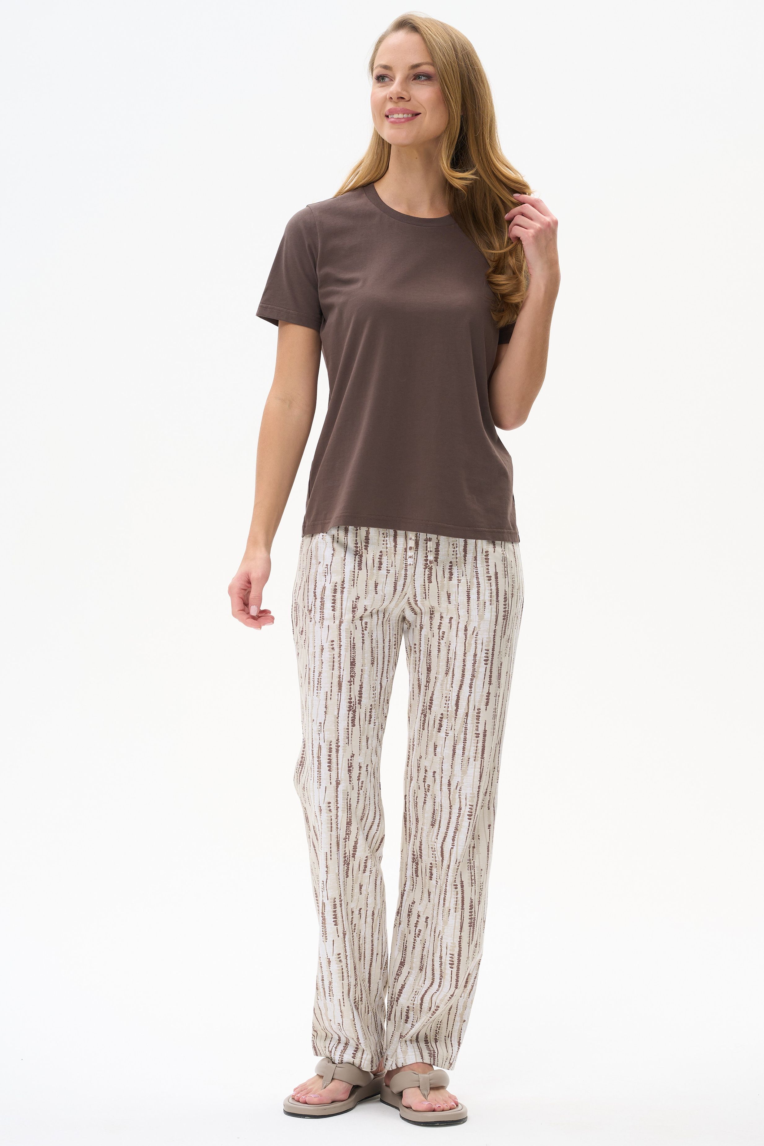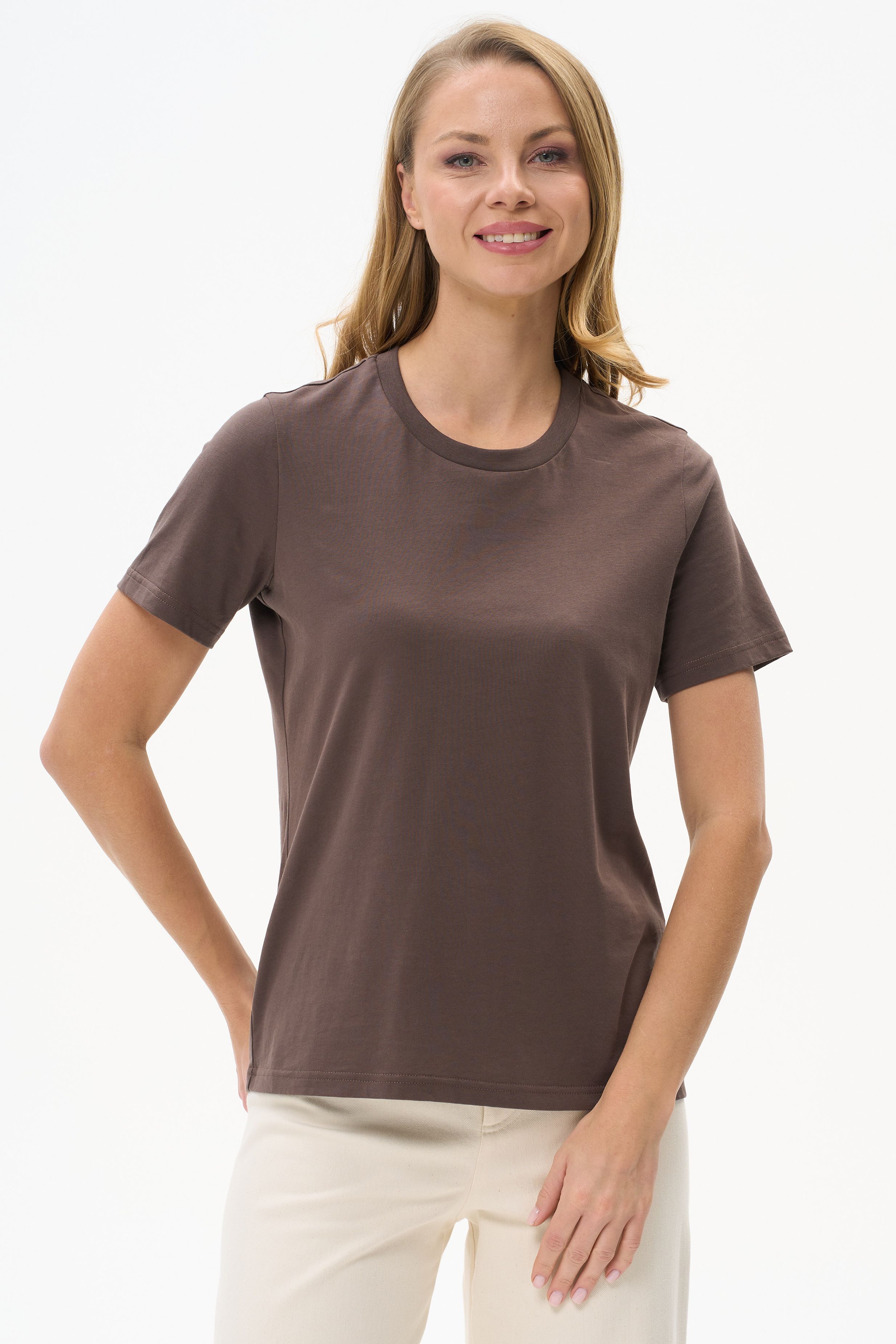 Описание: Футболка модного кроя - свободная и чуть укороченная, до середины бёдер. Выполнена из хлопкового трикотажного полотна. Вырез горловины обработан хлопковым полотном - рибана. Свободный втачной рукав гармонизирует общий стиль. Рост модели на фото 175см