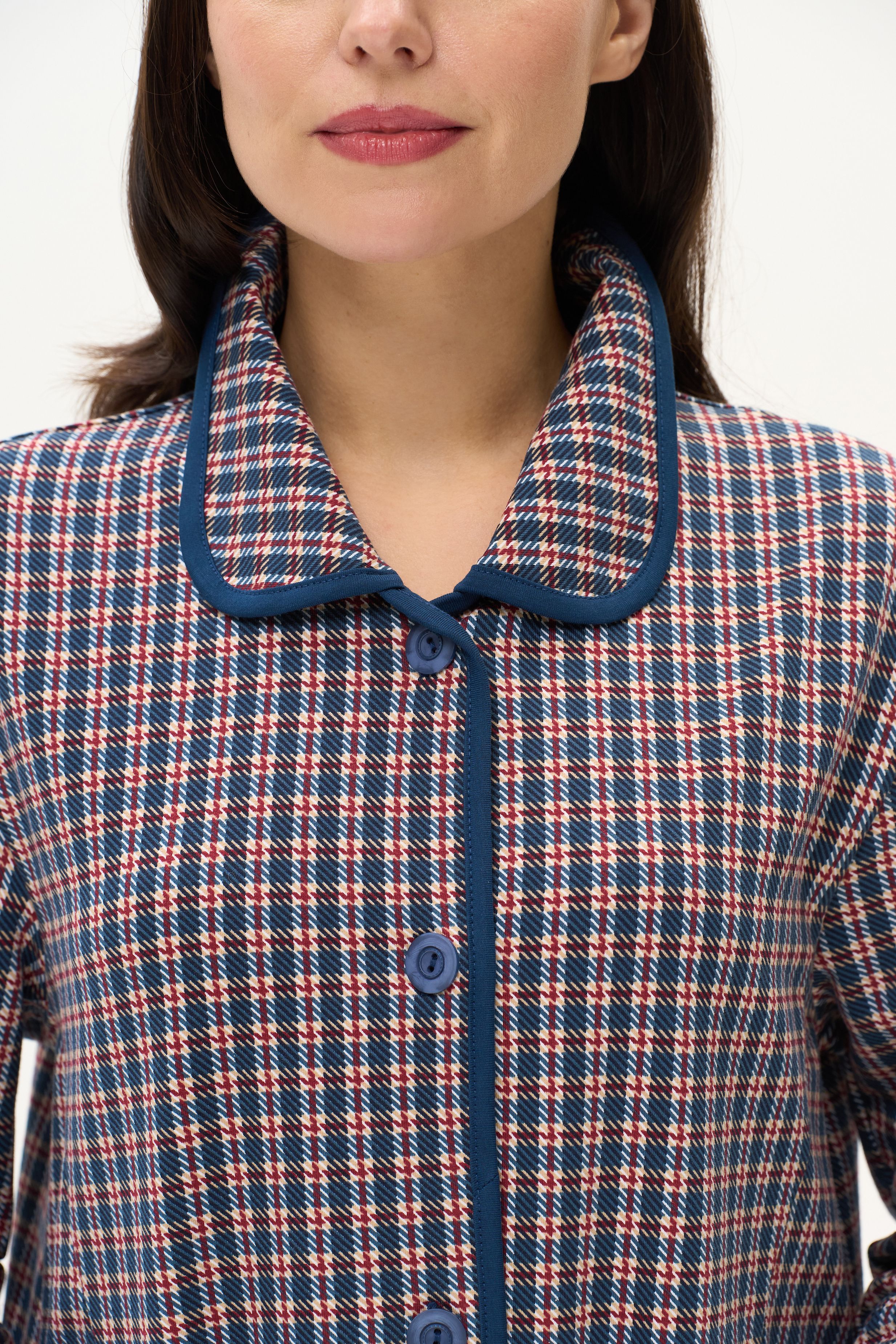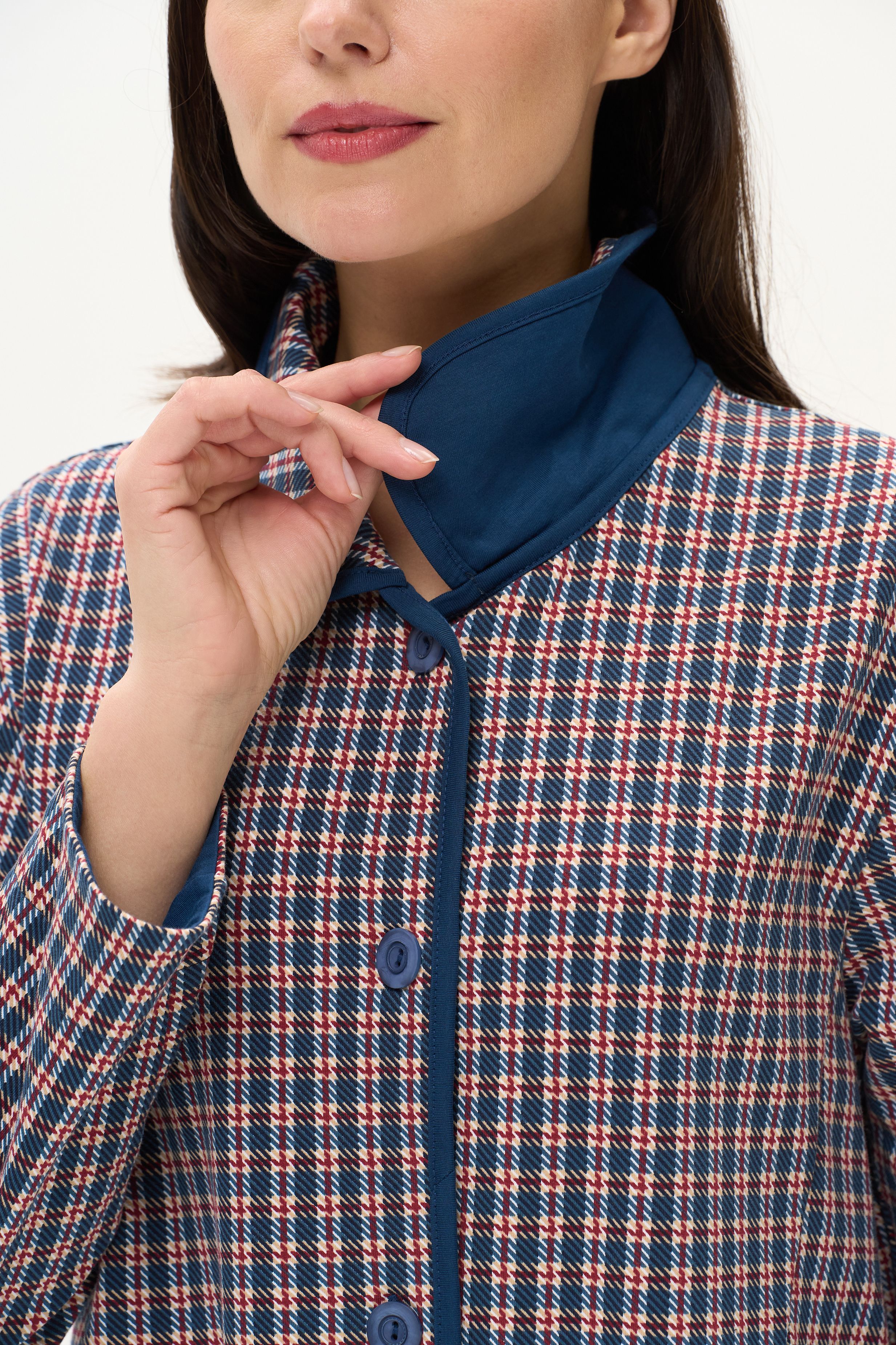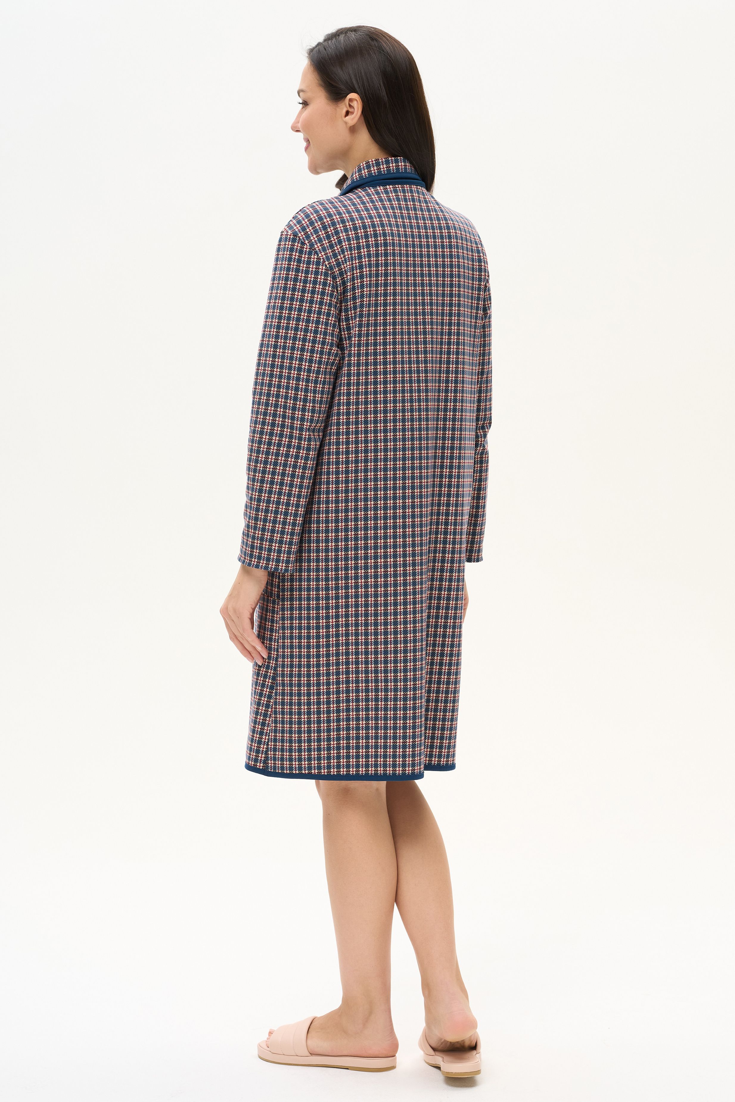 Описание: Тёплый халат из хлопкового трикотажного футера. Элегантный отложной воротник, длинные втачные рукава. Застёжка на пуговицы, накладные карманы. Рост модели на фото 170 см.
