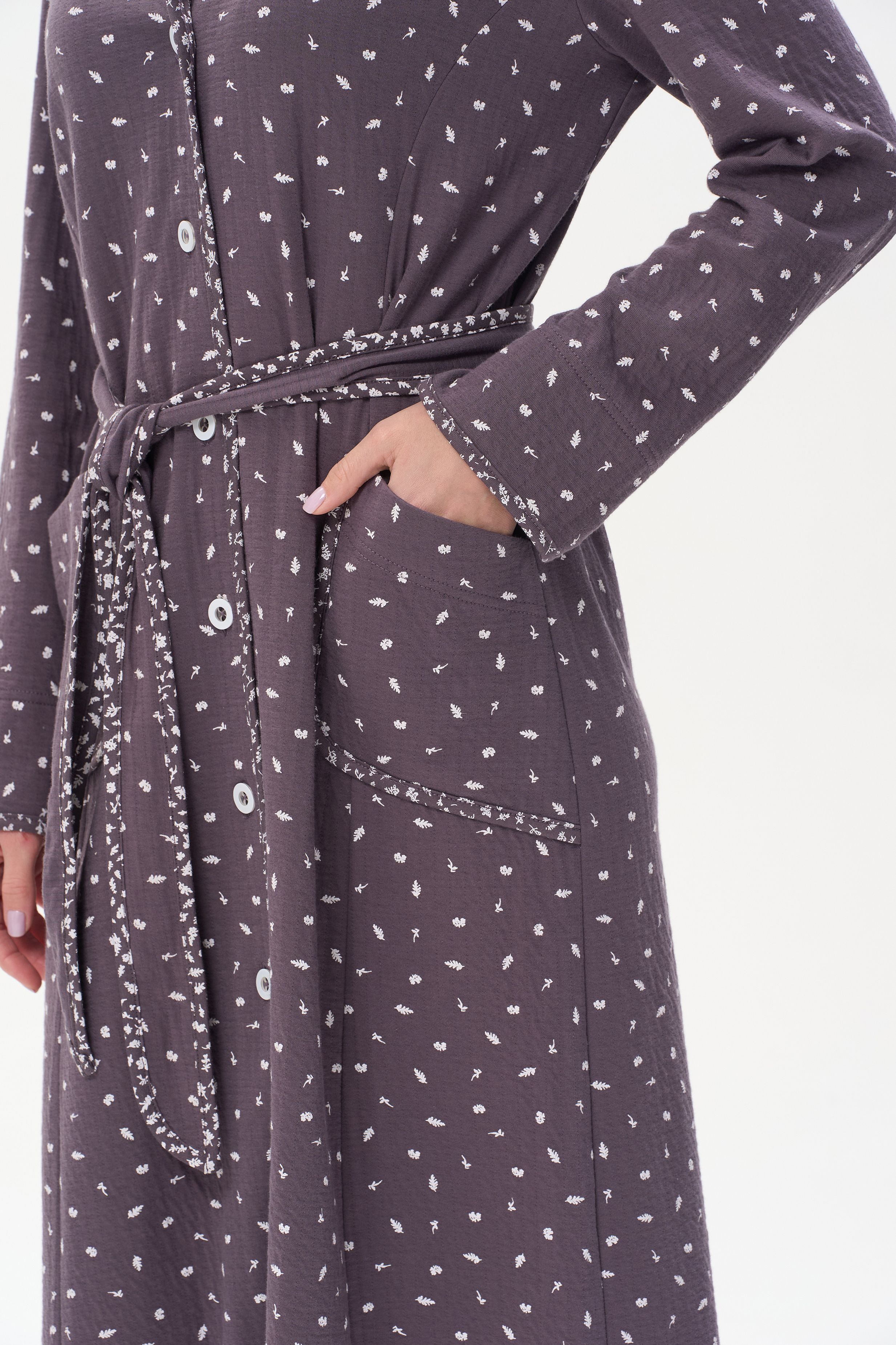Описание: Халат с поясом из фактурного трикотажного полотна - интерлок.
