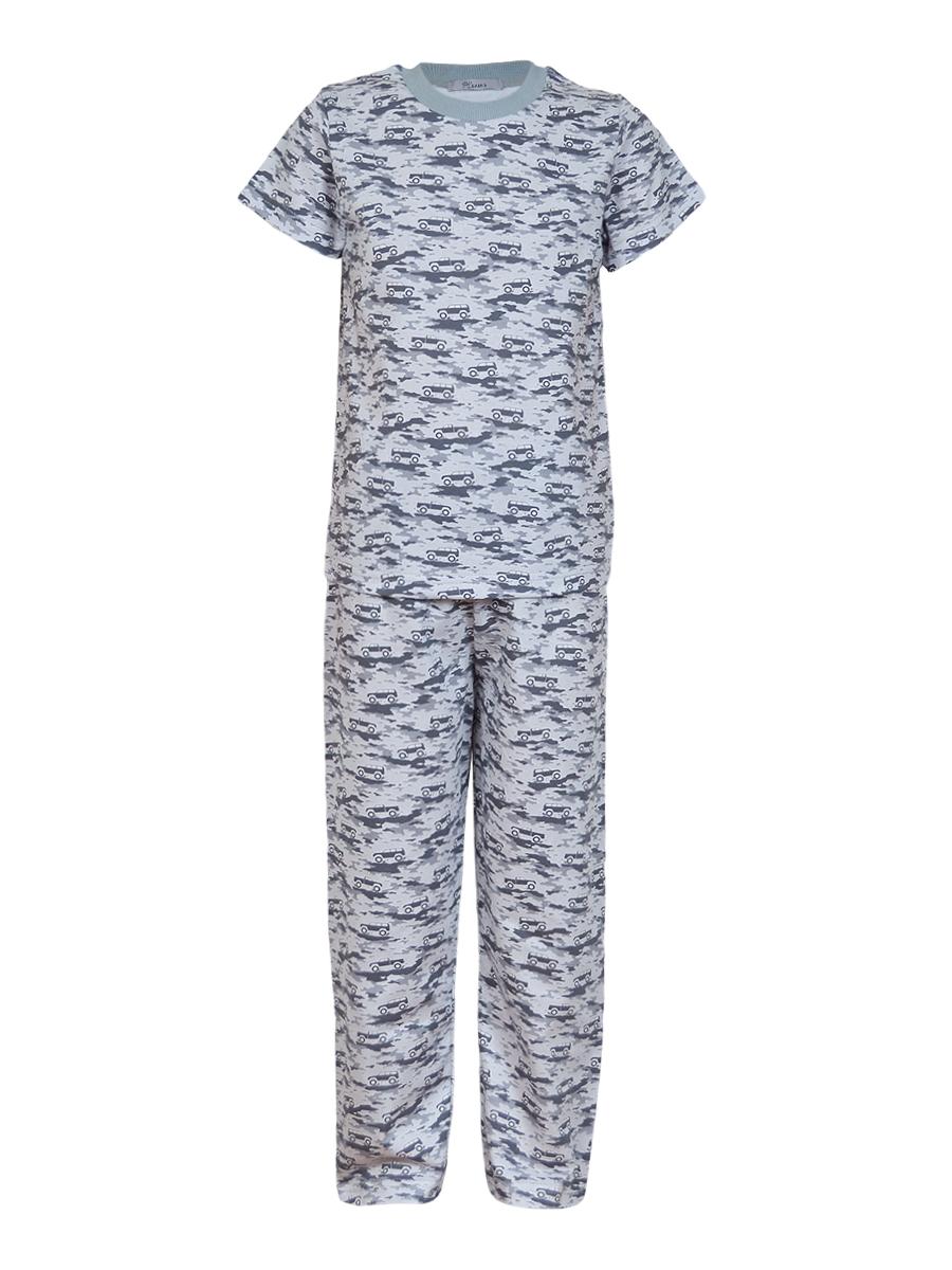 Фуфайка (пижамная)-прямая, рукав втачной, короткий. Горловина обработана ластиком. Печать на переде.