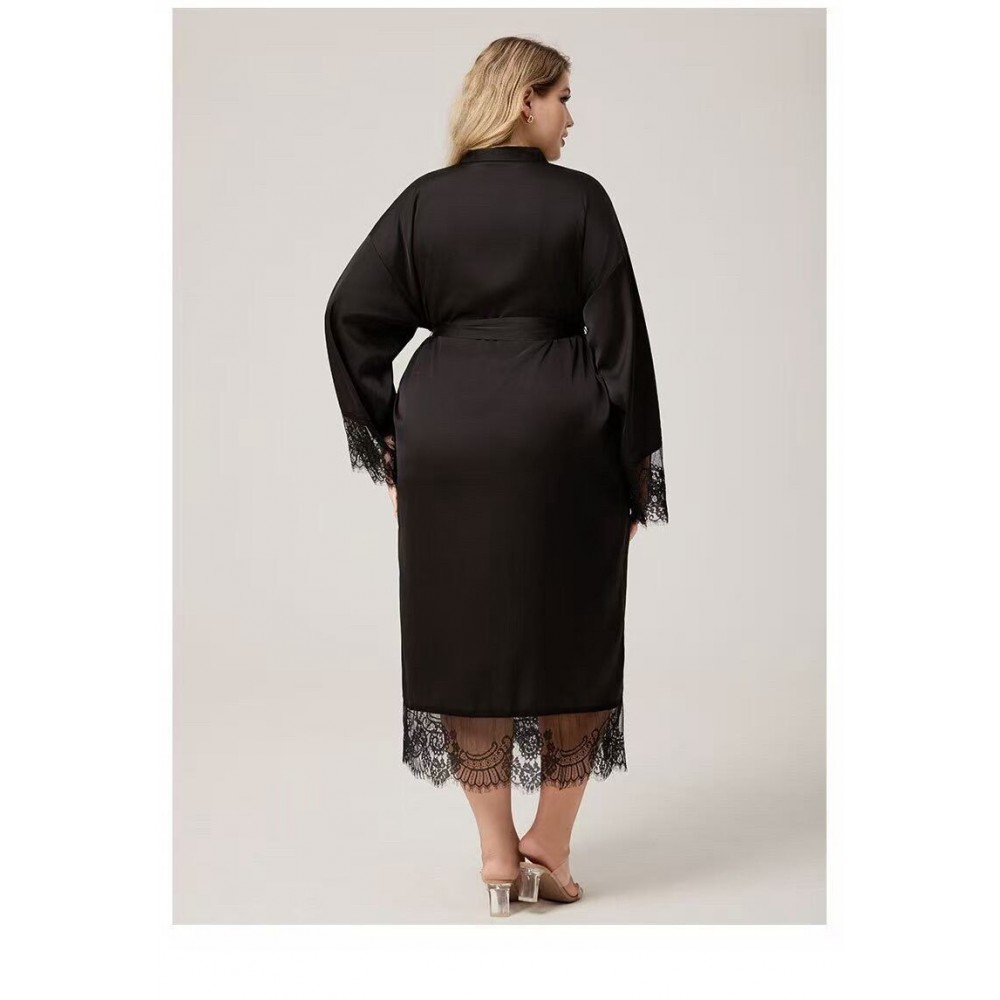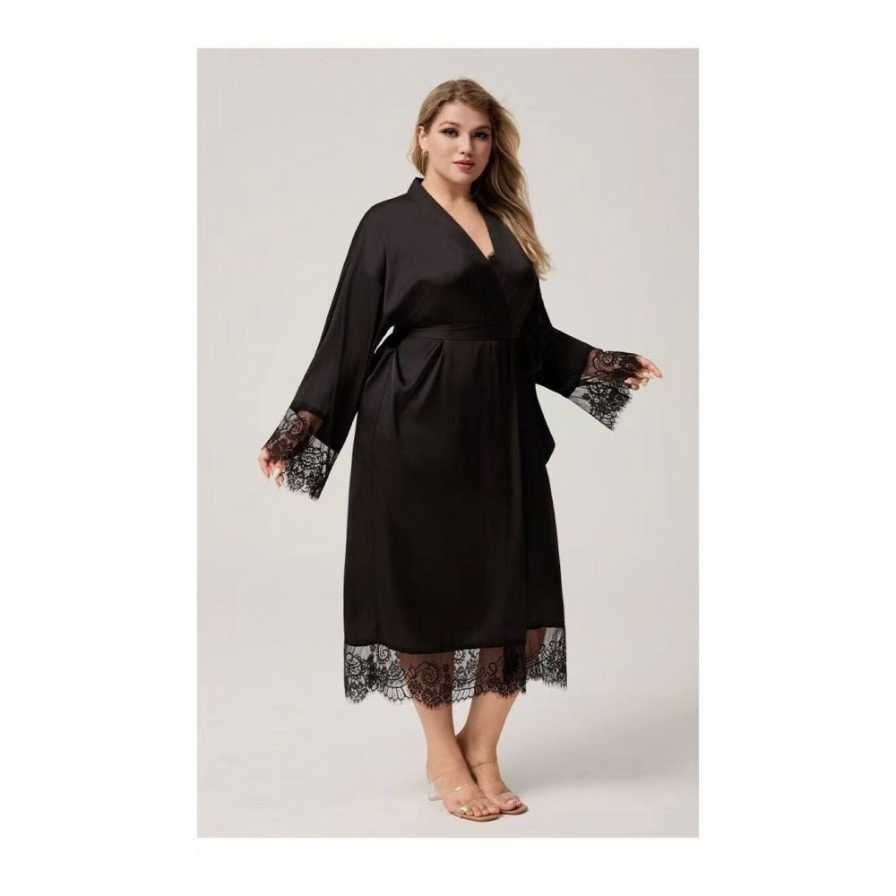 Халат атласный с запахом. С красивым набивным кружевом по подолу.