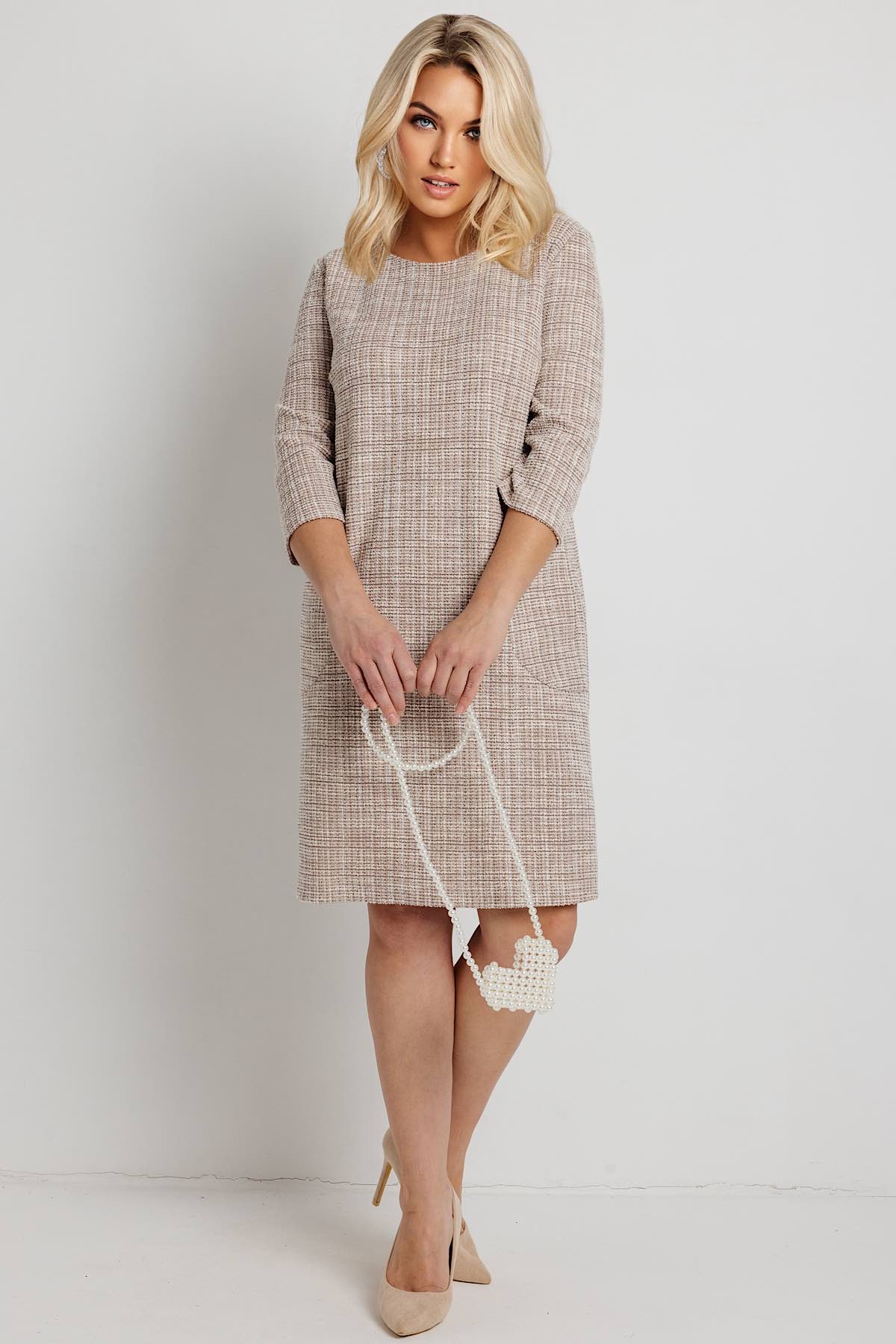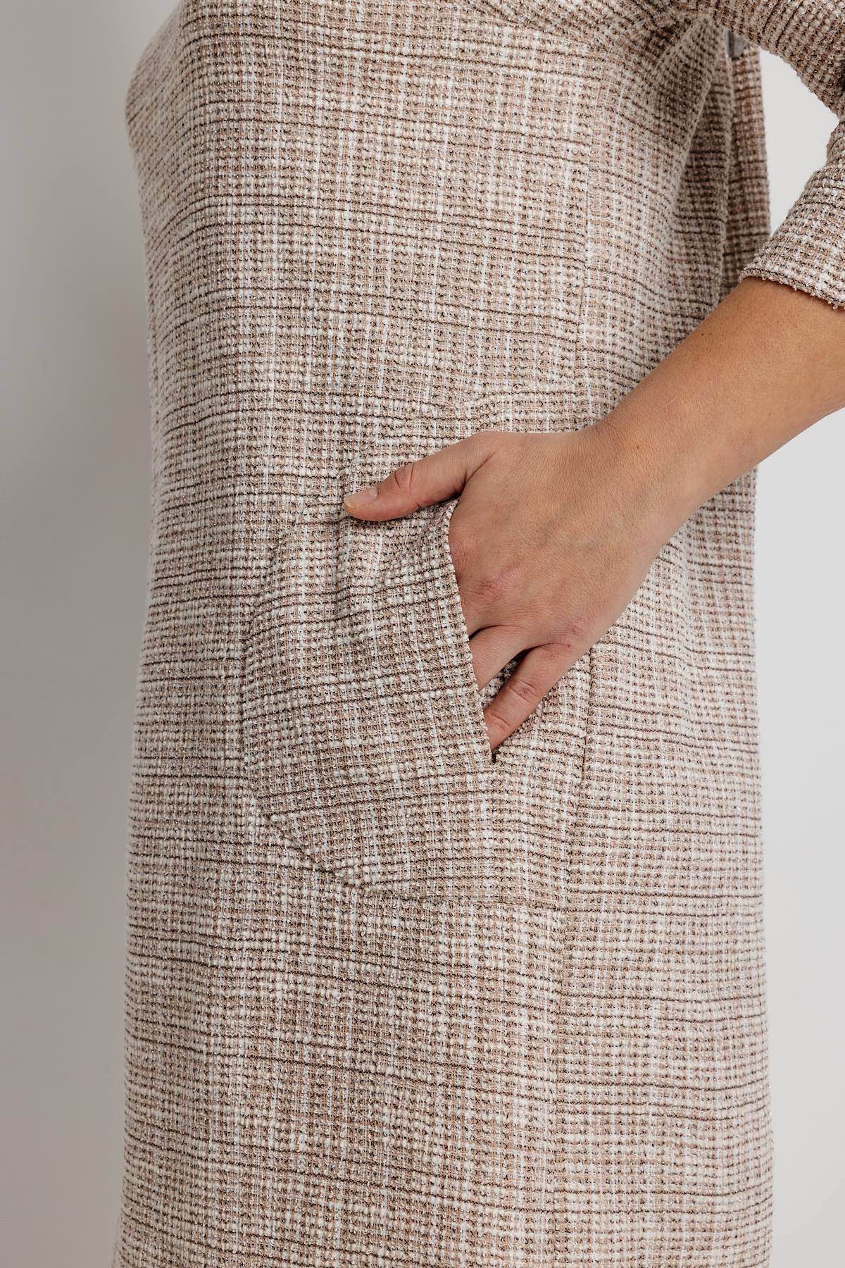 Описание: Платье из плотного трикотажа в стиле "шанель" с карманами с люрексом.