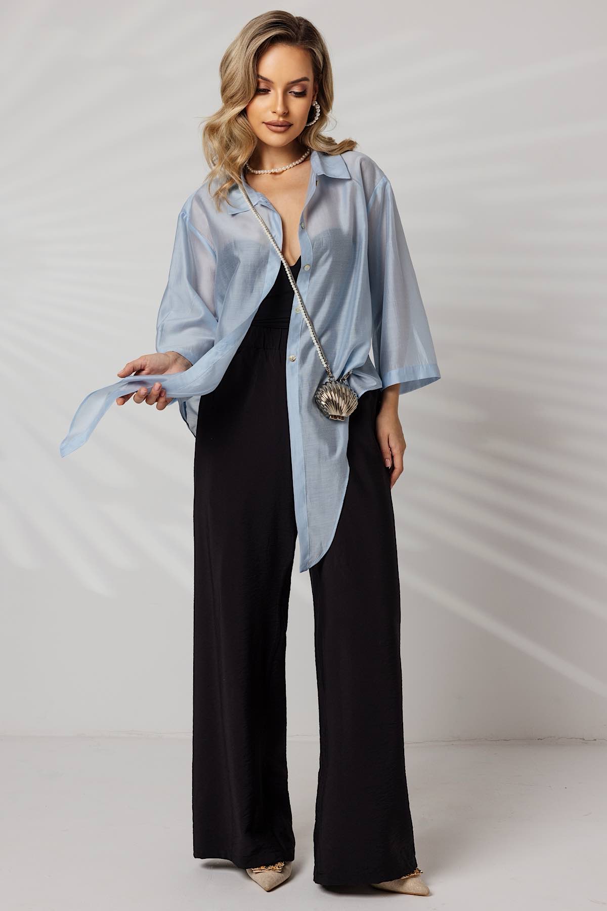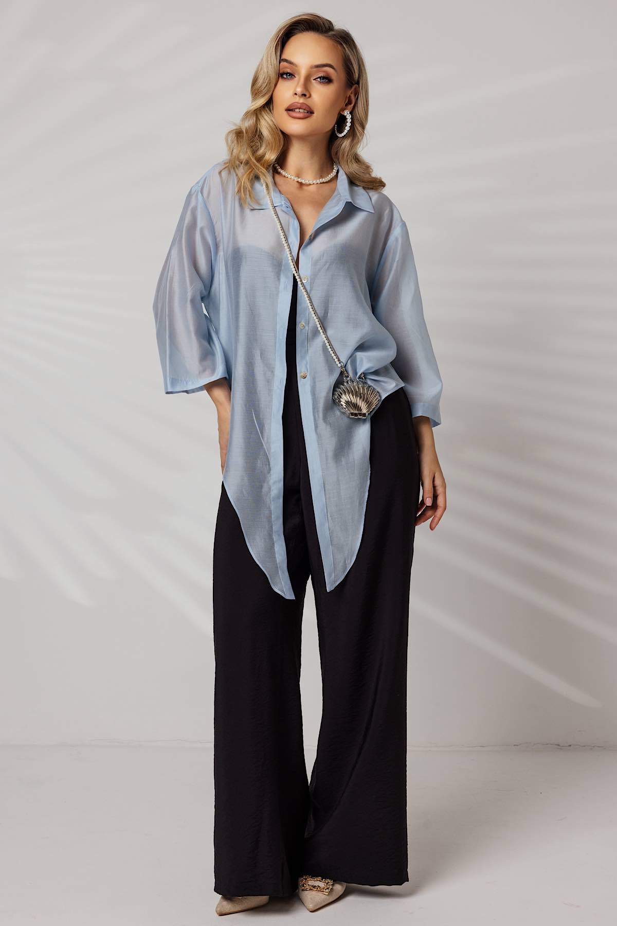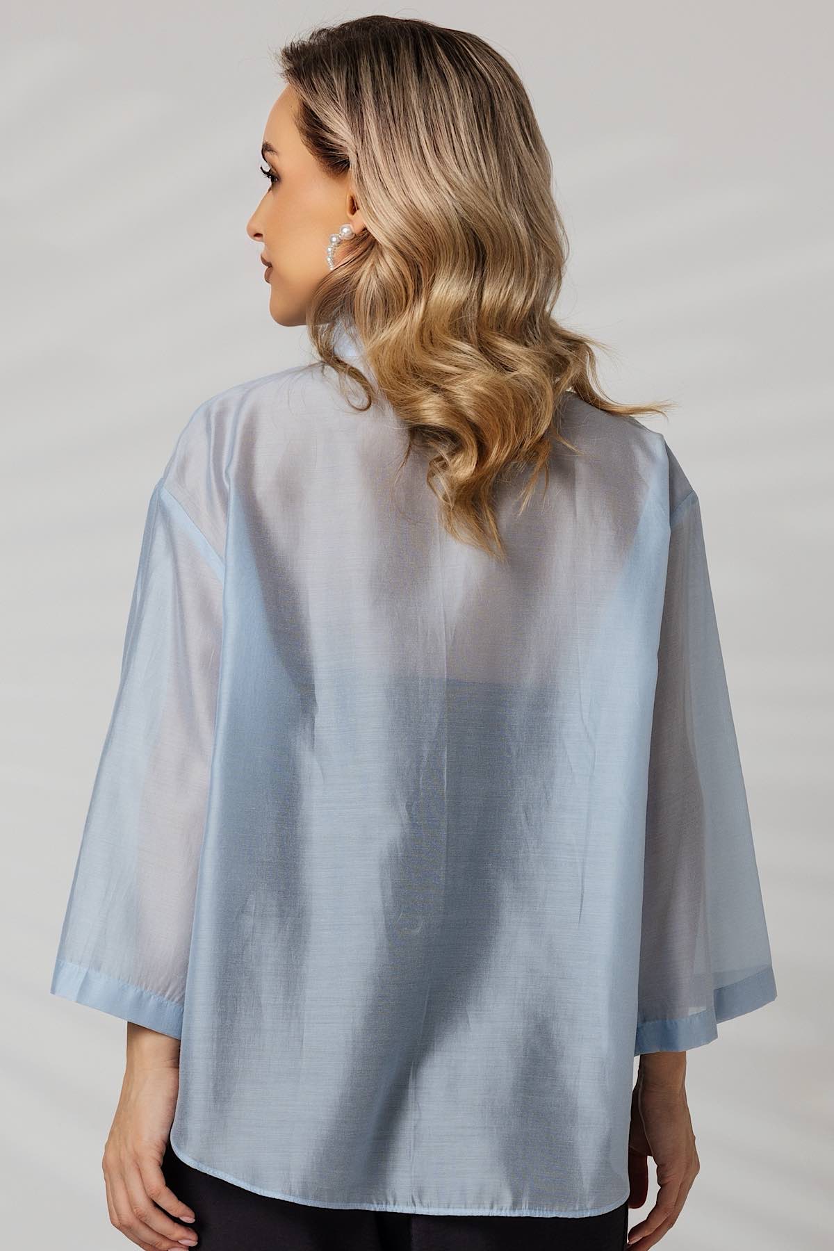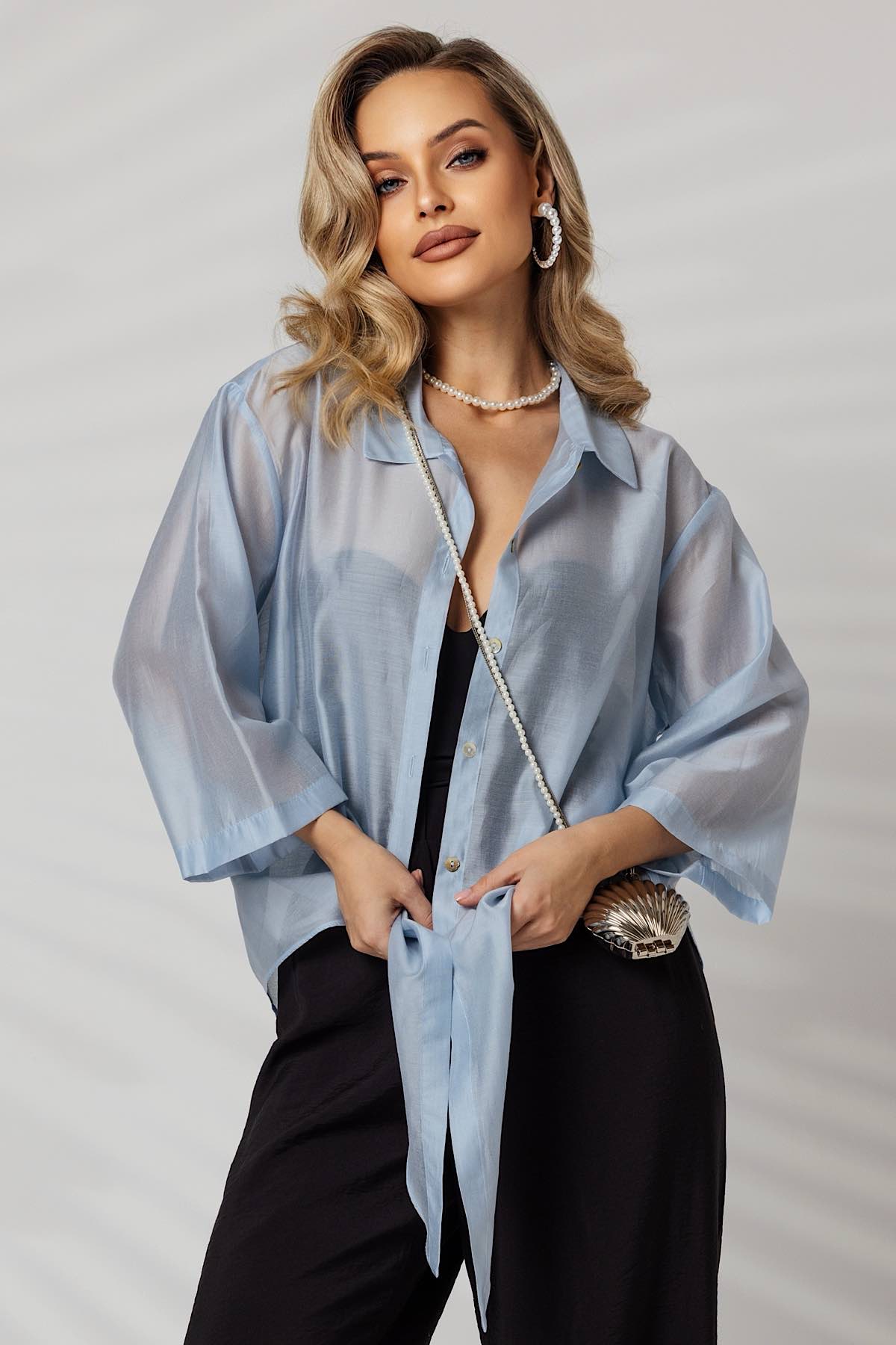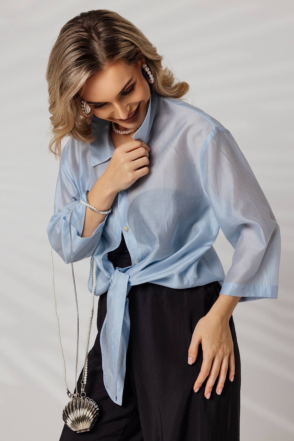 Описание: Стильная рубашка свободного силуэта из вуали. Рубашка женская с завязками – базовая вещь в гардеробе для женщин, которые предпочитают уникальность и стиль. Имеет прямой свободный крой и удлиненный перед, который можно эффектно завязывать в узел. Завязками идеально подчеркнуть талию, создавая женственные и элегантные образы.Стильная блузка свободного силуэта . Рукав чуть ниже локтя. Функциональные застежки - пуговицы. Идеально подходит для работы и отдыха.