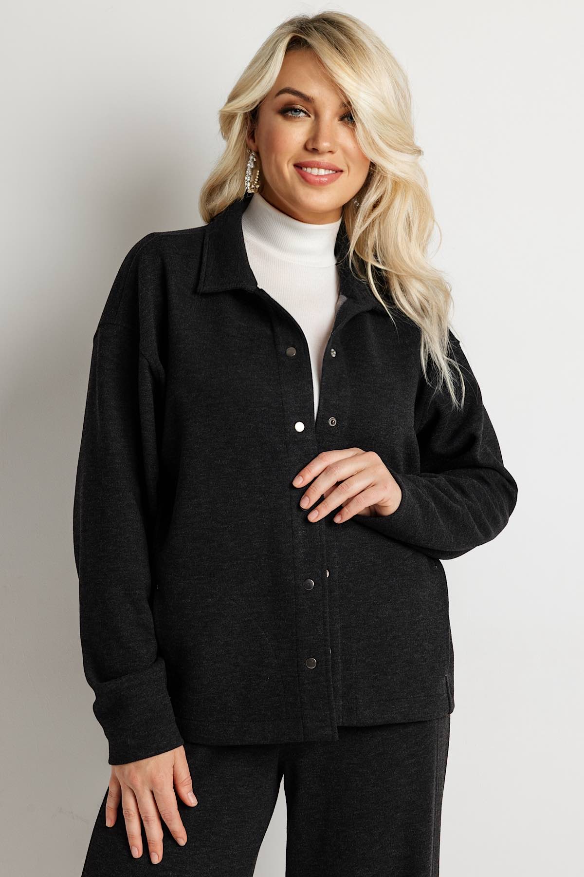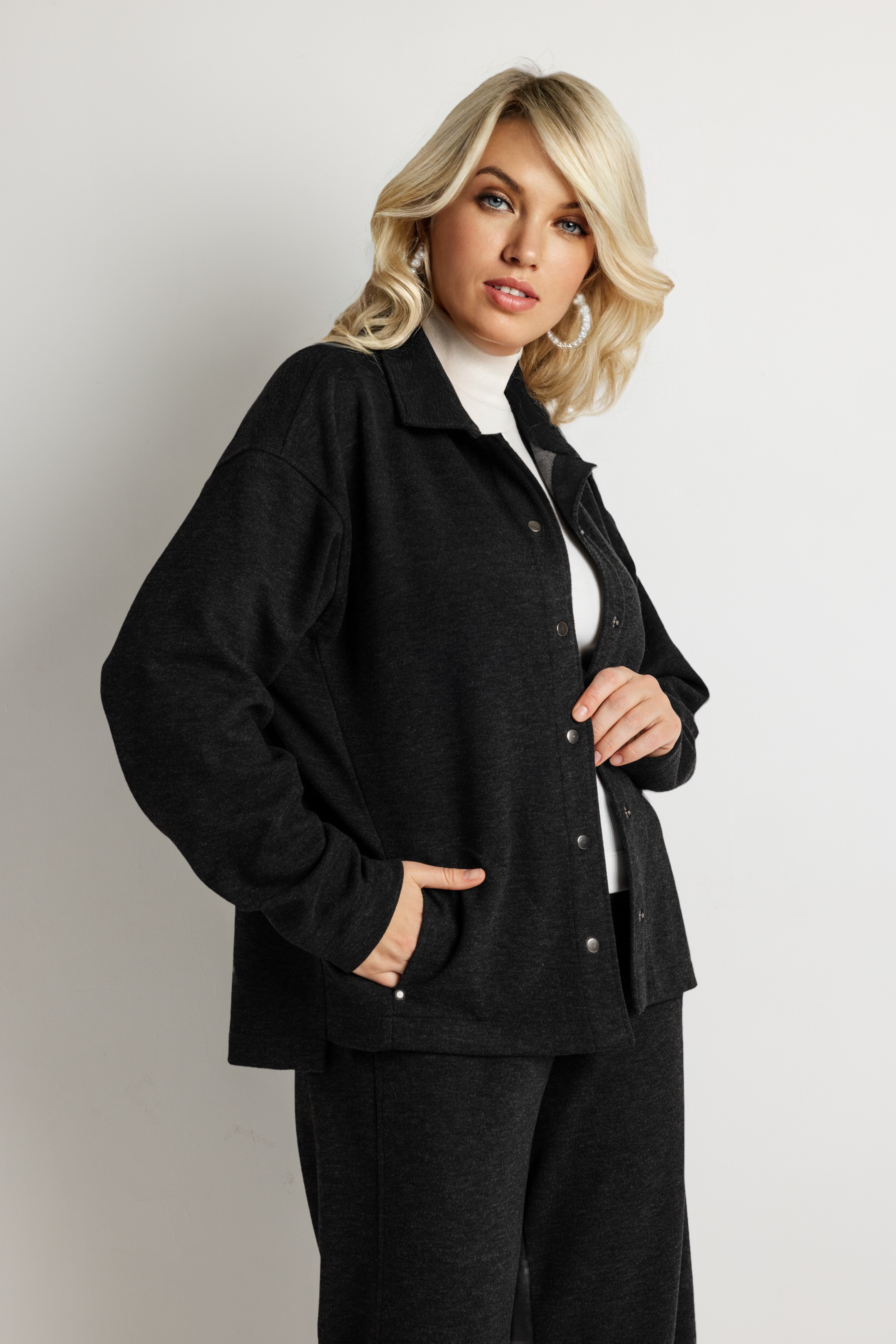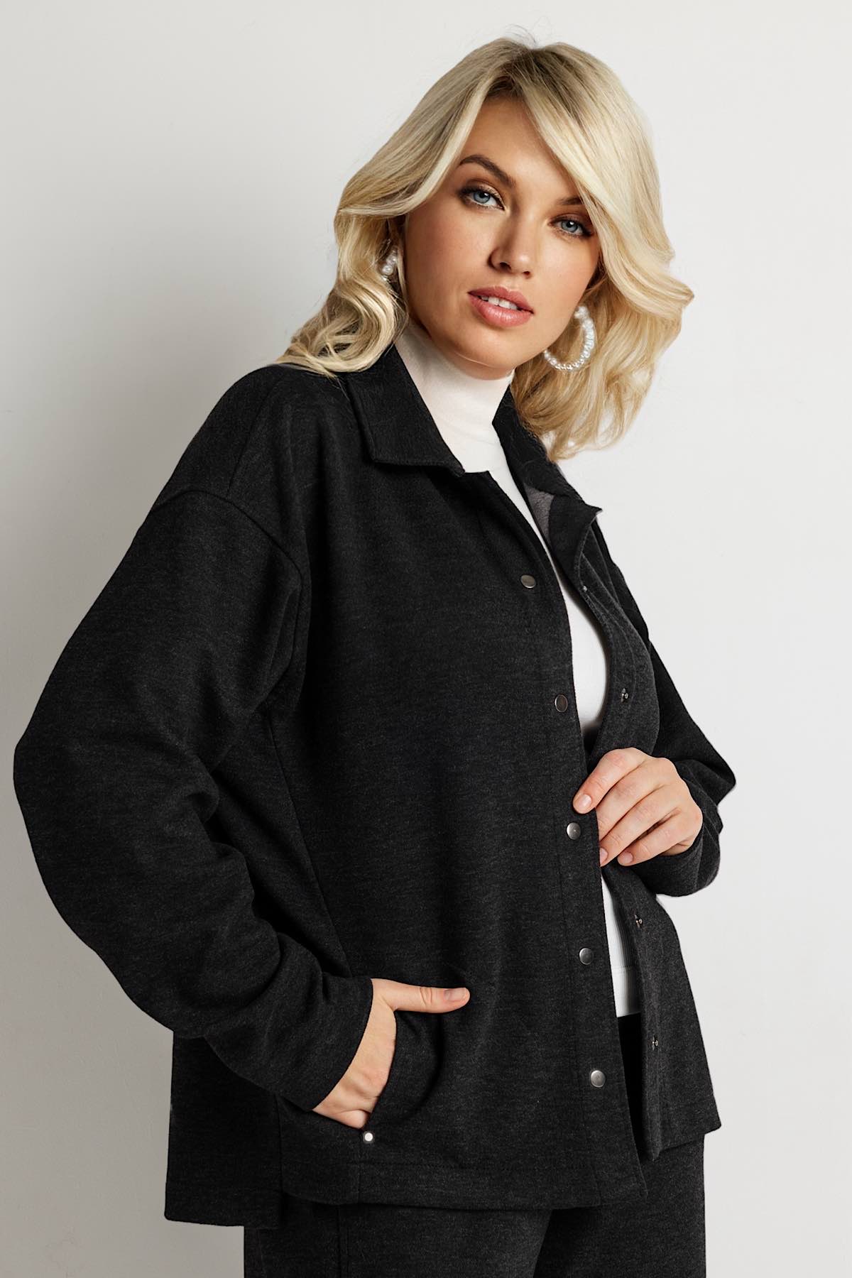 Описание: Трикотажный жакет без подклада, свободного силуэта в стиле рубашки с воротником и втачным рукавом полной длины на манжете — это универсальный предмет гардероба, который подойдет для повседневного образа. Застежка пуговицы(кнопки). Жакет будет подойдет для офиса, школы, повседневного образа.