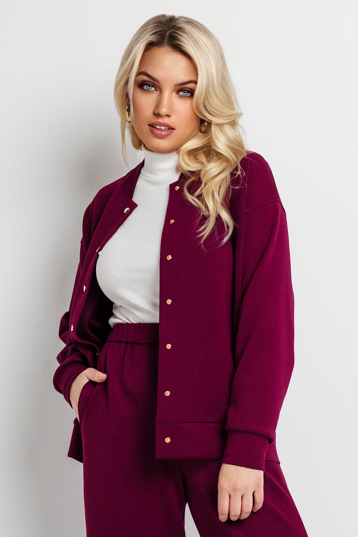 Описание: Трикотажный жакет без подклада, свободного силуэта в  стиле рубашки с воротником и втачным рукавом полной длины на манжете — это универсальный предмет гардероба, который подойдет для повседневного образа. Застежка пуговицы(кнопки). Жакет будет подойдет для офиса, школы, повседневного образа. Можно сочетать с Брюками  196Т/01.