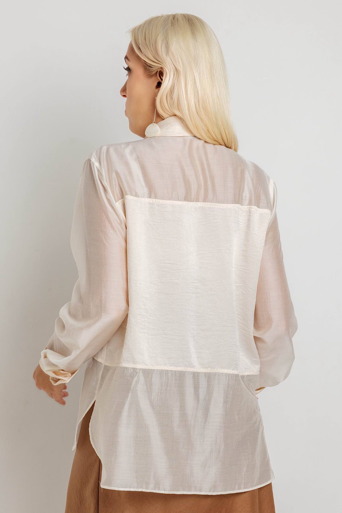 Описание: Стильная рубашка свободного силуэта. Отложной воротник. Длина рукава длинные. Идельно подходит для работы и отдыха.