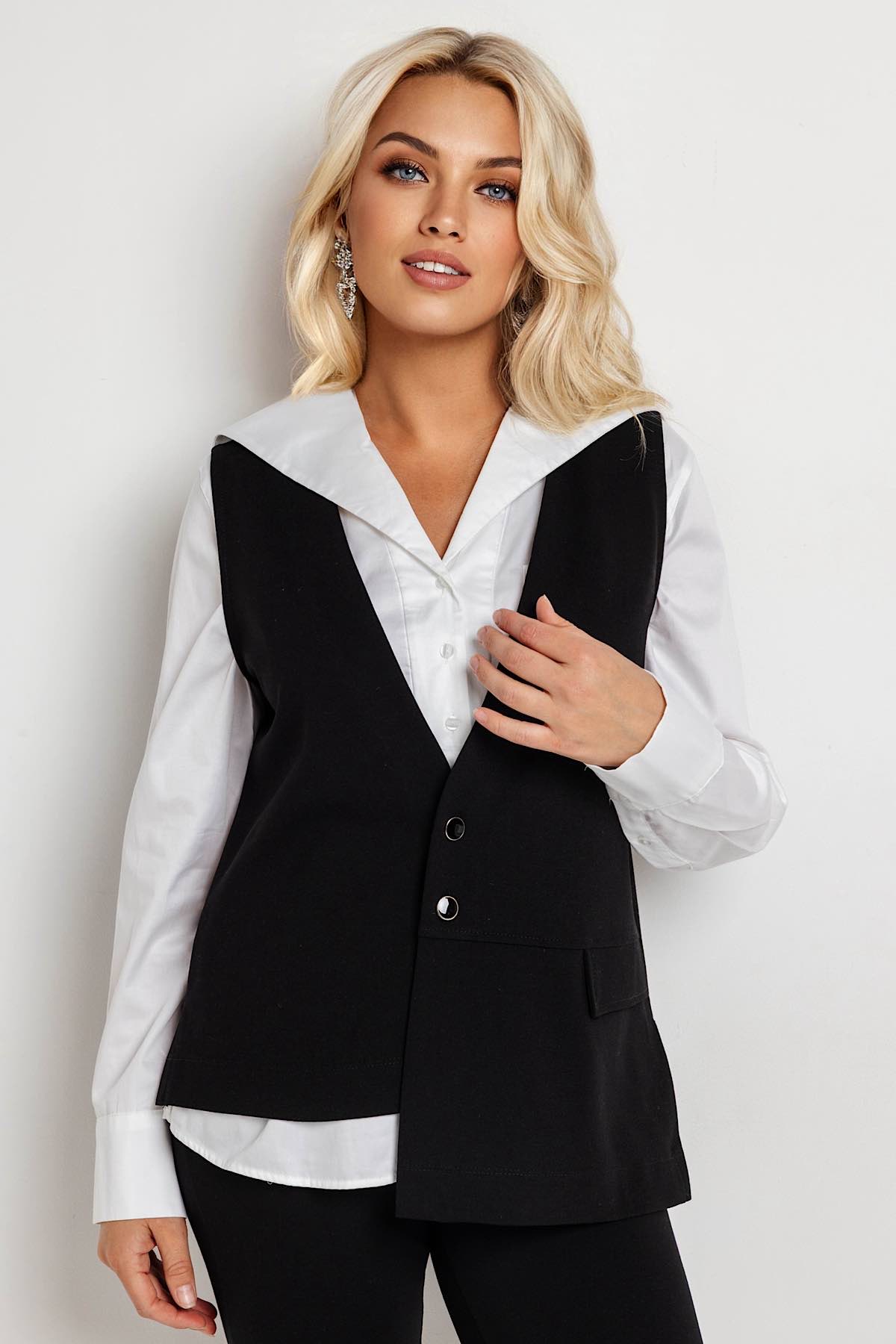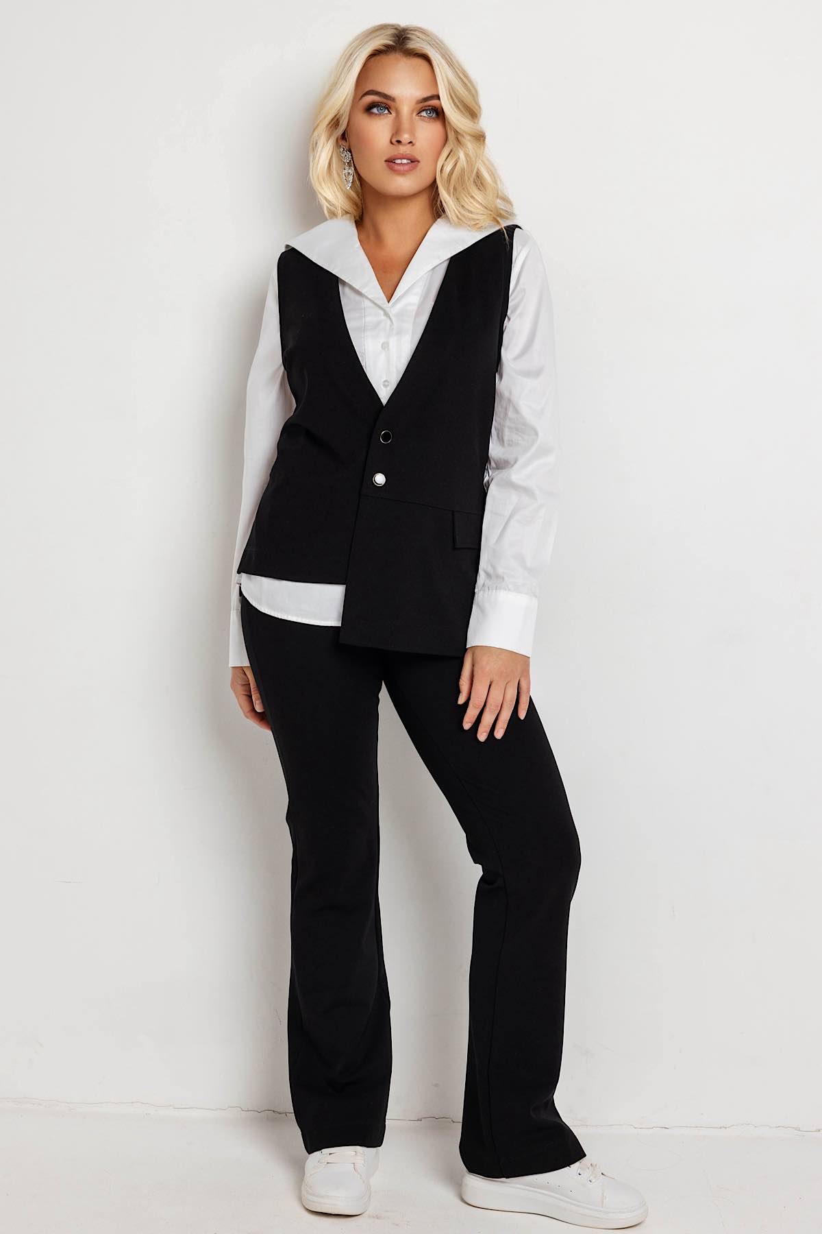 Описание: Женский жилет из трикотажа с эластаном. Ткань мягкая, эластичная, комфортная, хорошо держит форму. Жилет тактильно приятен. Можно комплектовать с Брюками 155/02,145/01 или Юбкой 141/10.