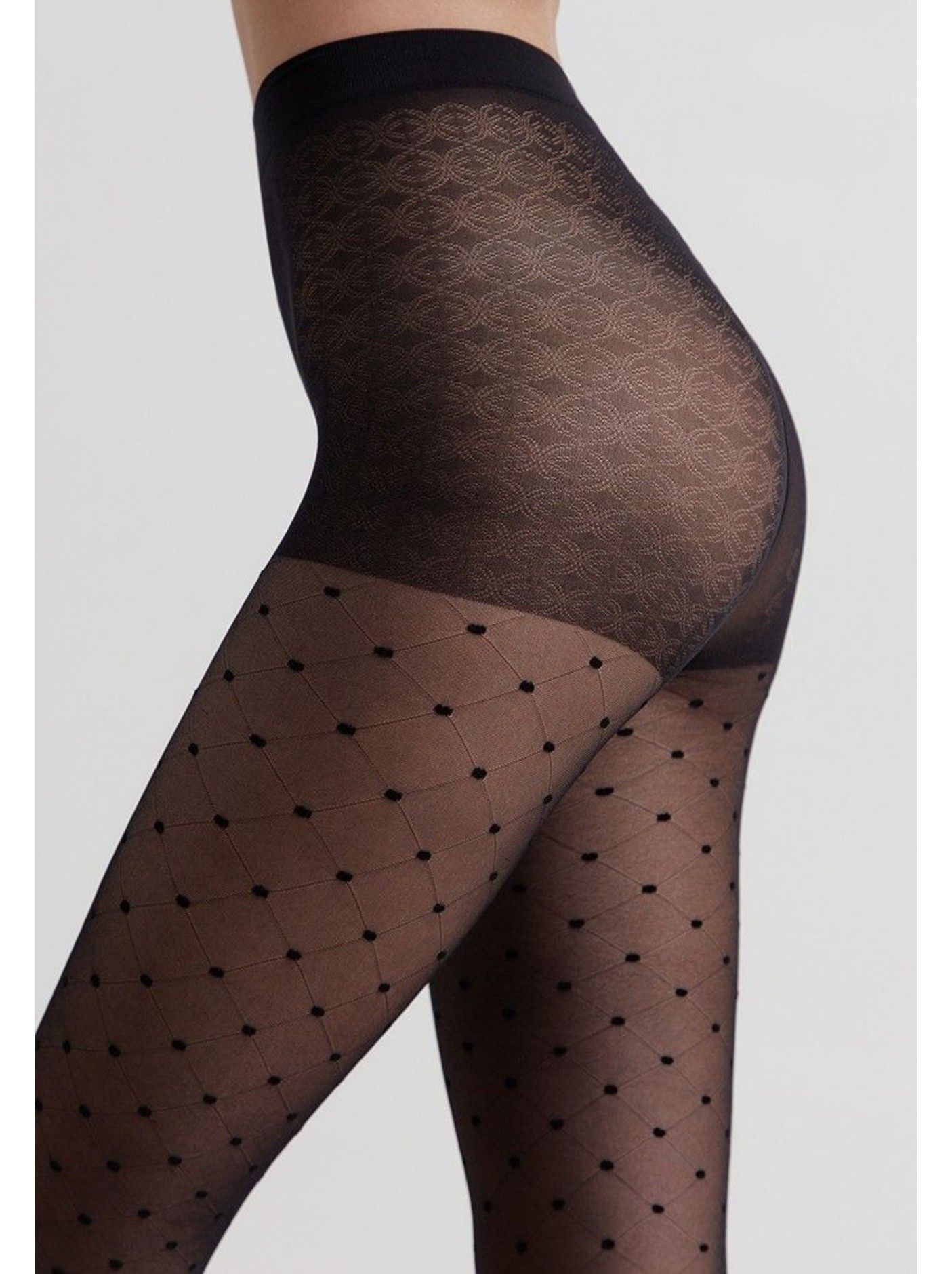 Тонкие фантазийные колготки с фактурным геометрическим рисунком «точки» – must have в стильном гардеробе.