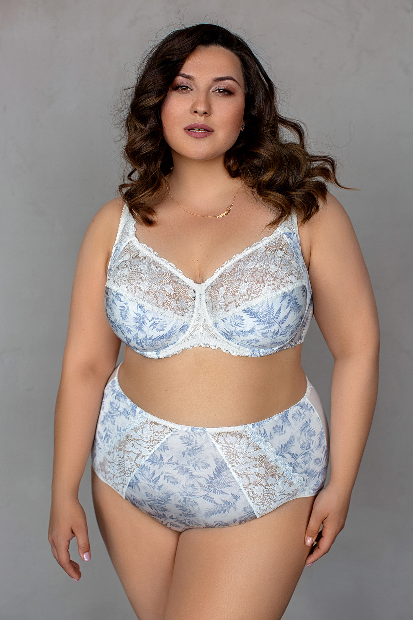 Мягкая чашка из эластичного кружева и эластичной микрофибры. Чашка внутри дублирована хлопком. В модели предусмотрены подгрудные косточки. Очень удобная модель для ежедневного использования. Верх чашки выполнен с дополнительным нижним слоем из эластичной сетки с целью улучшения формоустойчивости, что актуально для больших размеров.