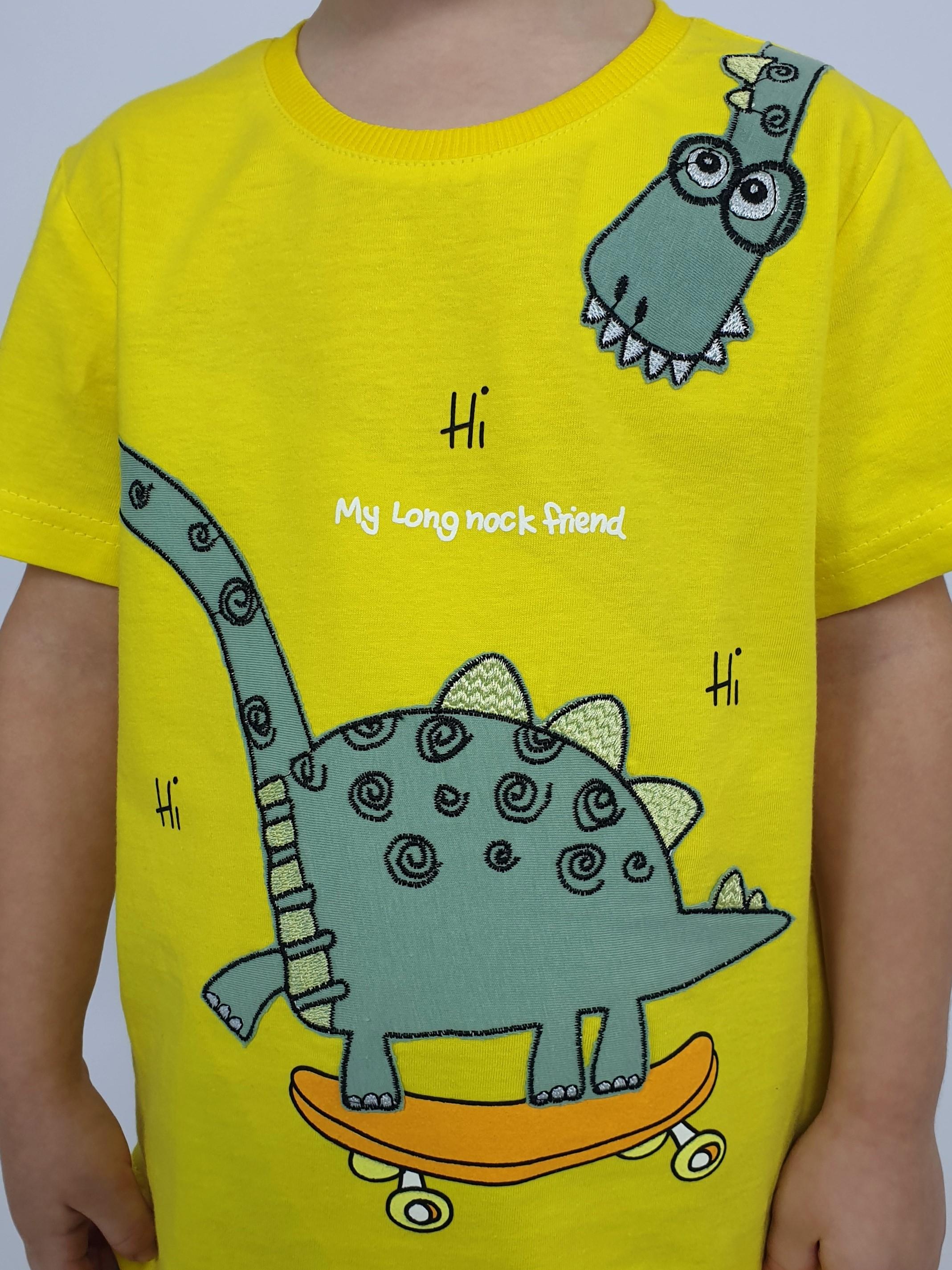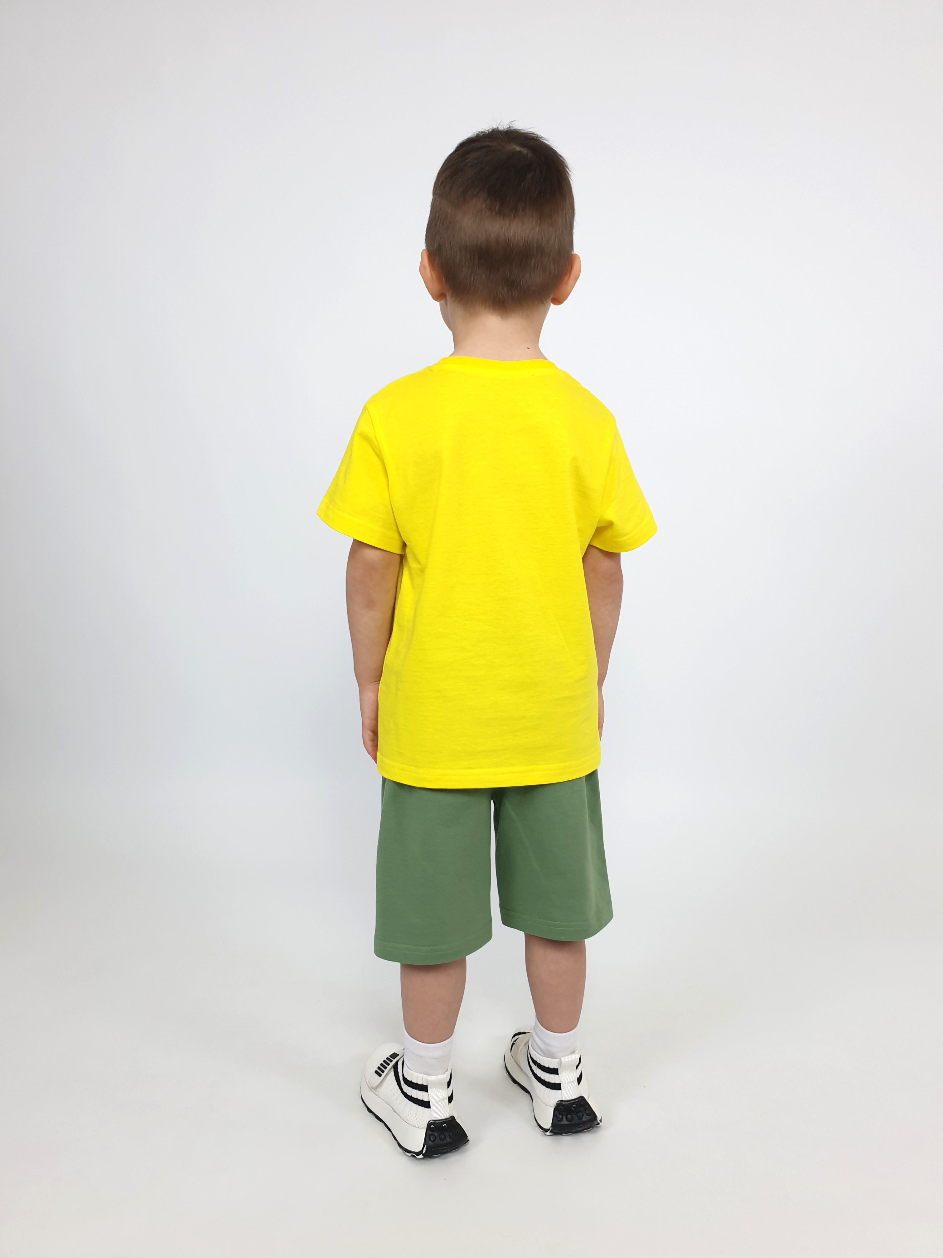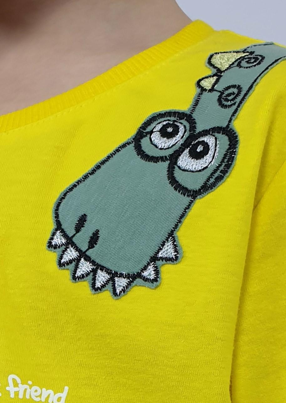 Фуфайка-прямая, перед с печатью и вышивкой. Рукав втачной, короткий. Горловина обработана ластиком. Шорты-укороченные с притачным поясом и резинкой. Два боковых кармана.