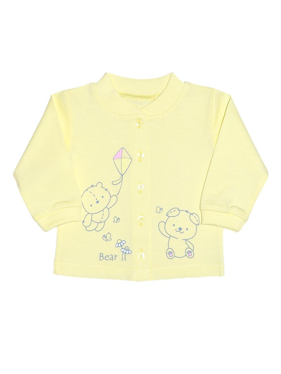 Кофточка-застежка центральная по переду на кнопки (пуговицы). Рукав длинный. Горловина, низ рукава обработаны ластиком. Низ изделия подшит. Перед с печатью.