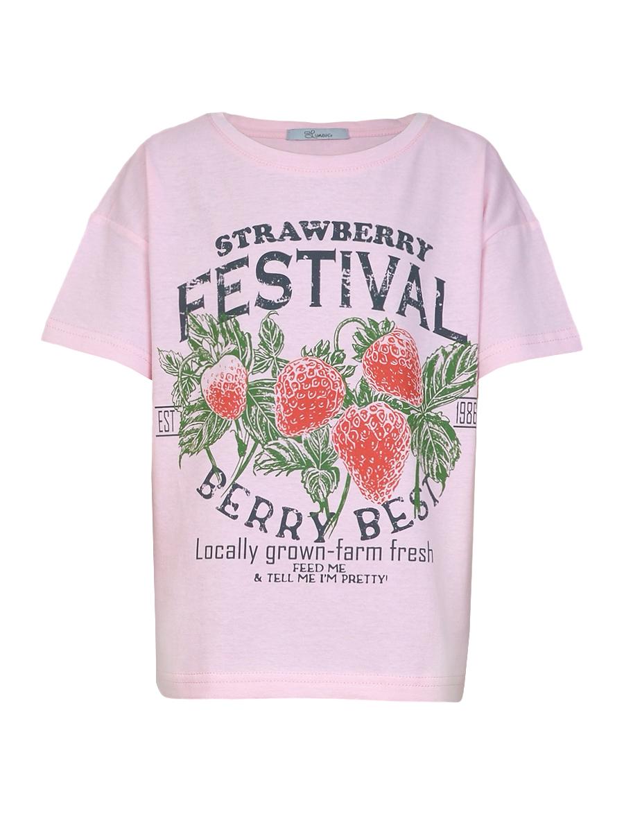 Футболка (оверсайз)-прямой силуэт, спущенное плечо, короткий рукав, перед с печатью. Горловина обработана притачной планкой. Низ изделия и рукава подшиты.
