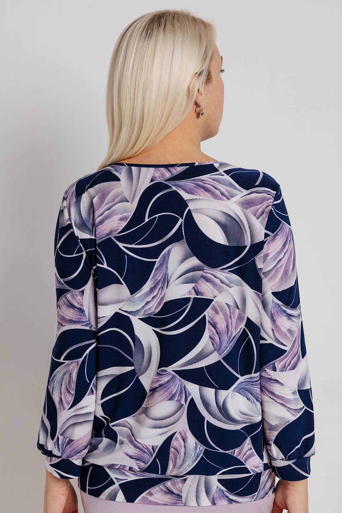 Описание: Блузка выполнена из трикотажного полотна, рукав 3/4. Элегантно смотрится, легко стирается, не теряет и не меняет цвет. Так как в ткани используется большое количество вискозы, ткань дышащая и легко пропускает воздух, сохраняет форму и посадку даже после многочисленных стирок. Модель свободного силуэта имеет эластичный пояс по низу изделия с напуском. Блуза представлена в ярких, современных и модных расцветках. Блузка станет неотъемлемой частью Вашего образа.  Блуза прекрасно подходит для торжеств и повседневных мероприятий. Сочетайте блузу с брюками, юбками, и с любым типом обуви. Блузка бренда RISE - это стиль, качество и комфорт!