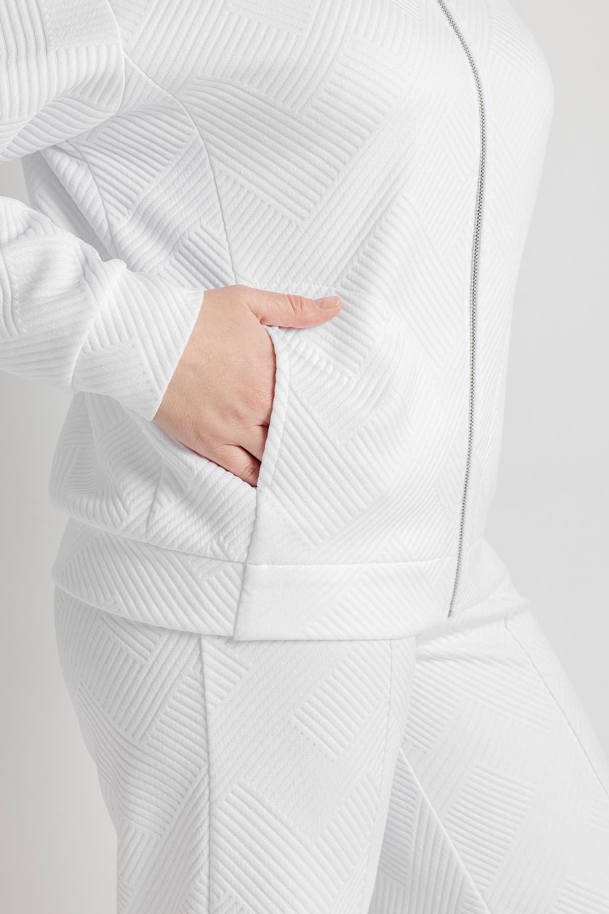 Описание: Стильный жакет на молнии без начеса, выполненный из трикотажного материала с узорно-рельефной фактурой, идеально подходит как для занятий спортом, так и для повседневной носки в стиле спорт шик.Свободный крой обеспечивает удобство и свободу движений, что особенно важно