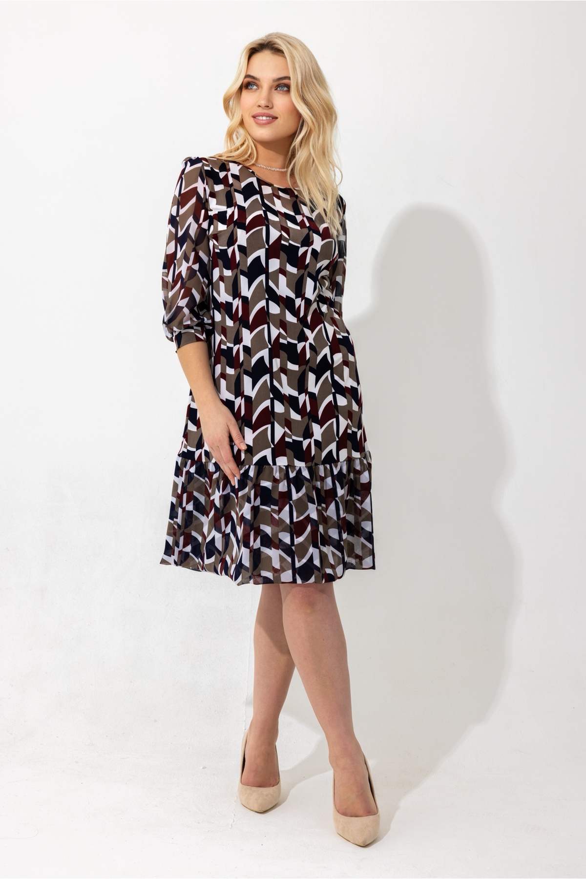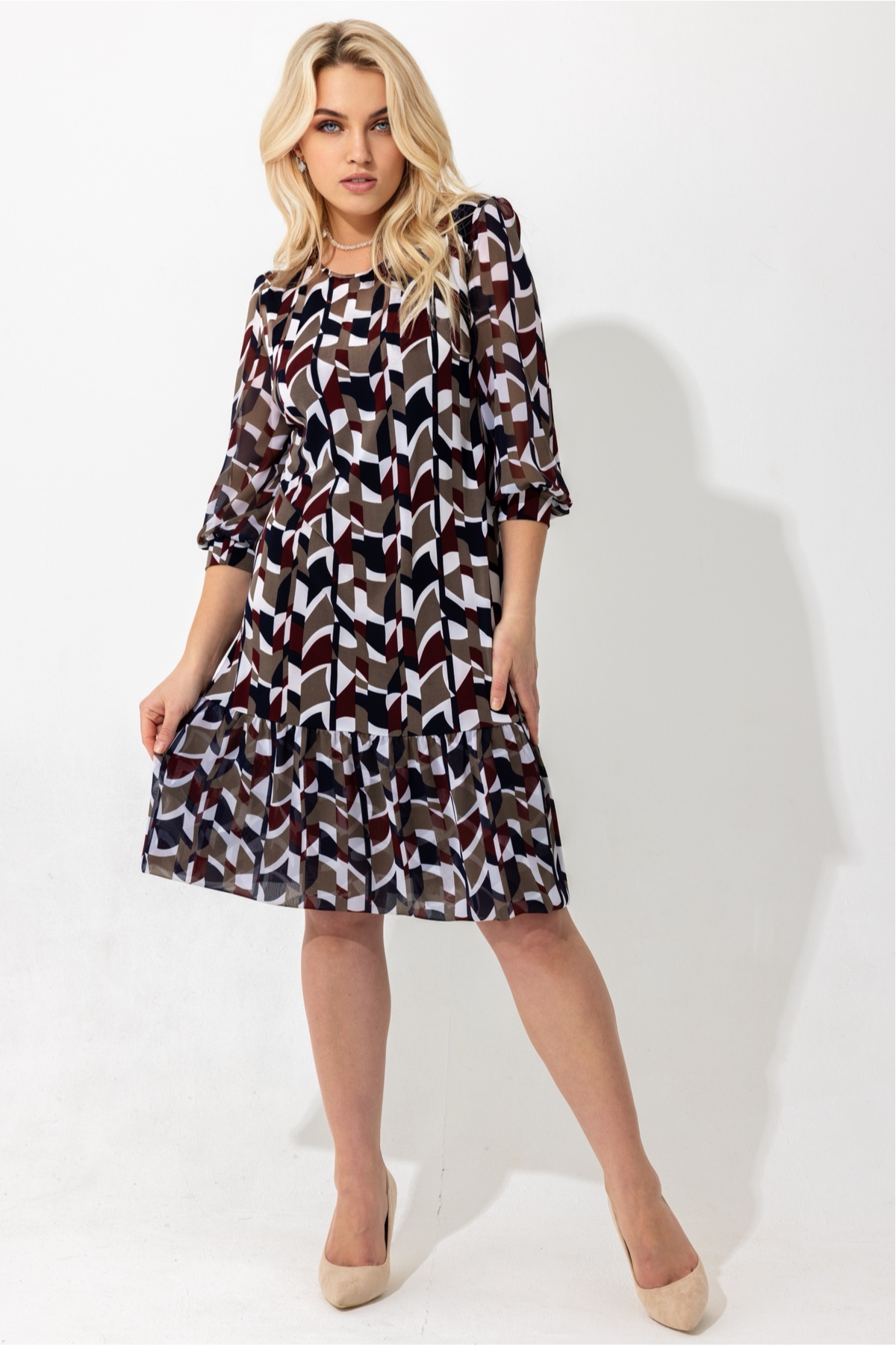 Описание: Платье женское классическое, нарядное. Основа платья выполнена из трикотажного полотна - масло, волан и рукав - из шифона. Рукав 3/4. Платье красивое пышное, немного свободное в крое. Базовый вариант платья в А-силуэте.