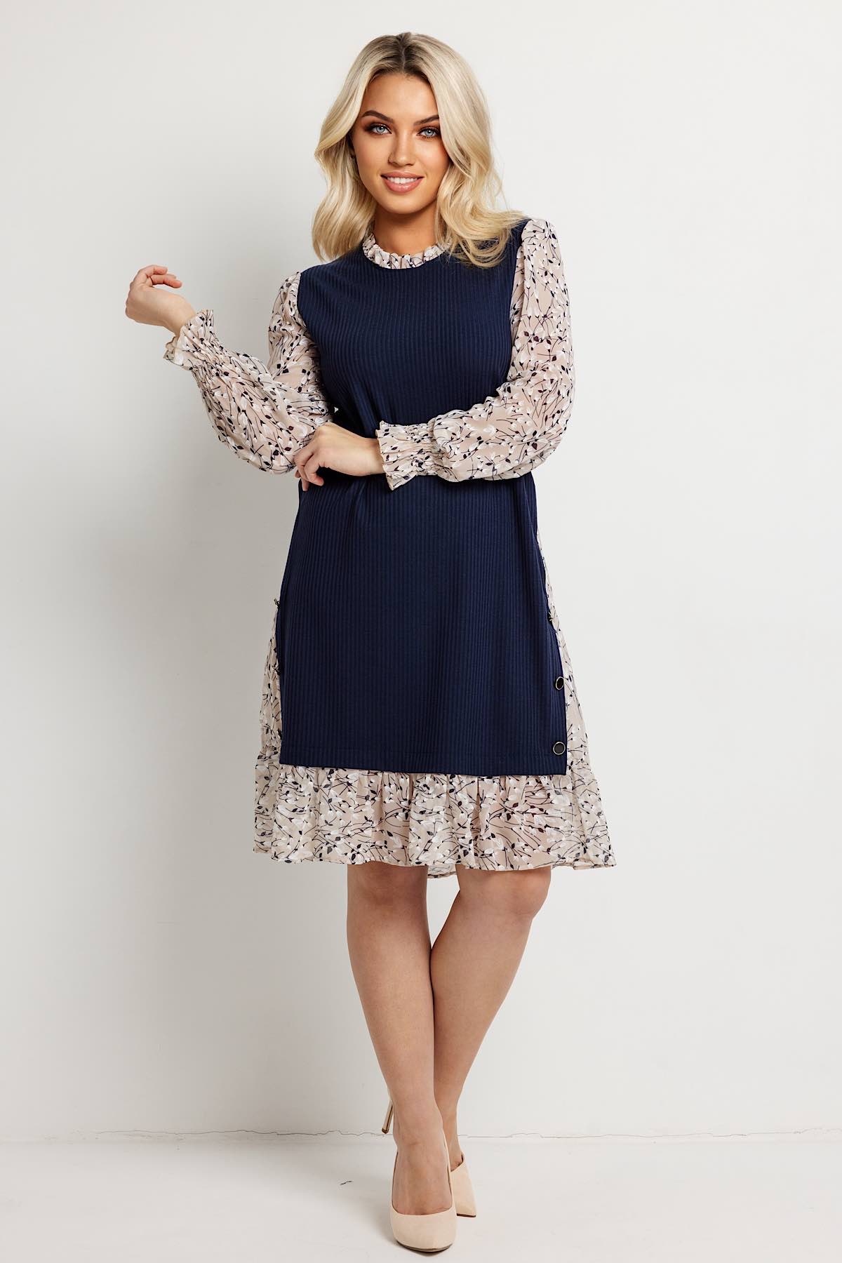 Описание: Платье женское классическое, нарядное. Основа платья выполнена из трикотажного полотна - "лапша", рукав - из шифона. Рукав длинный. Платье красивое пышное, немного свободное в крое.