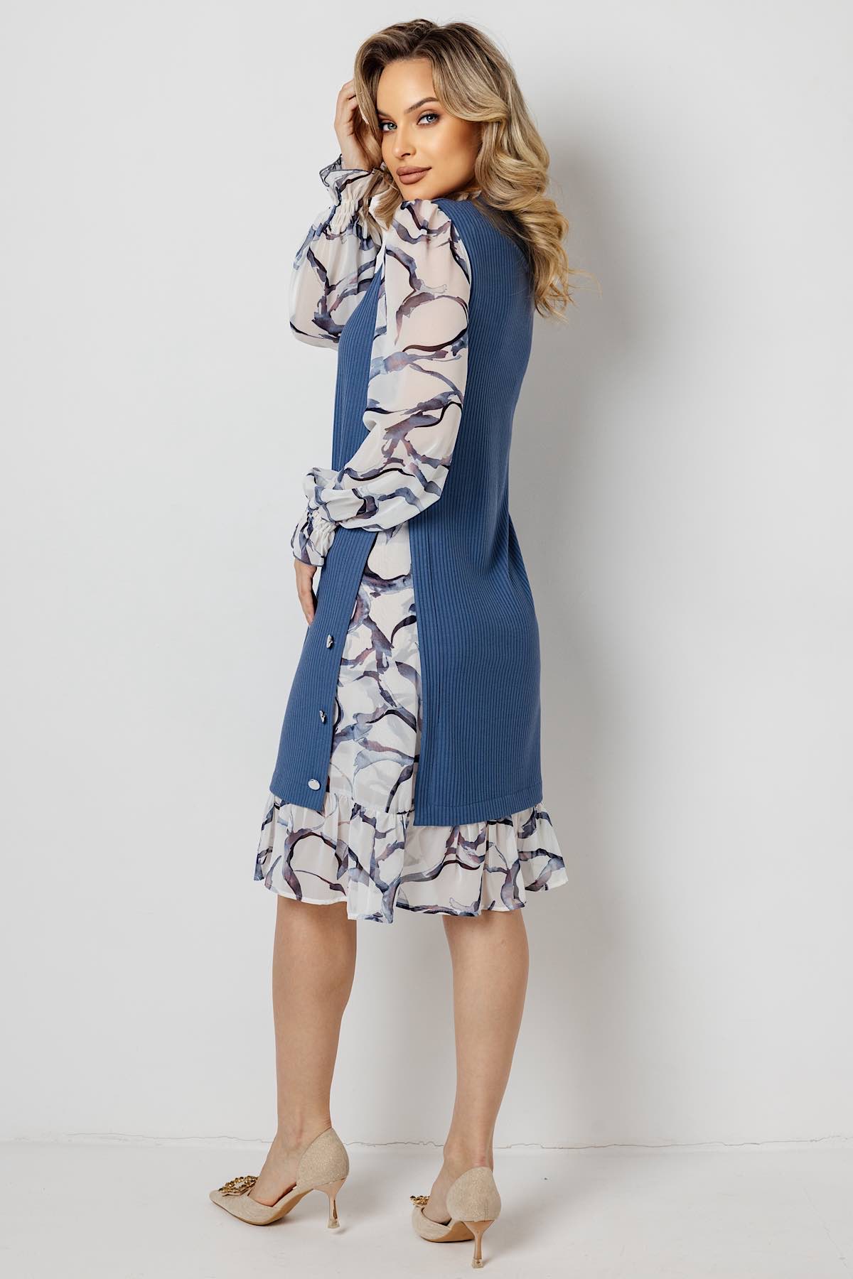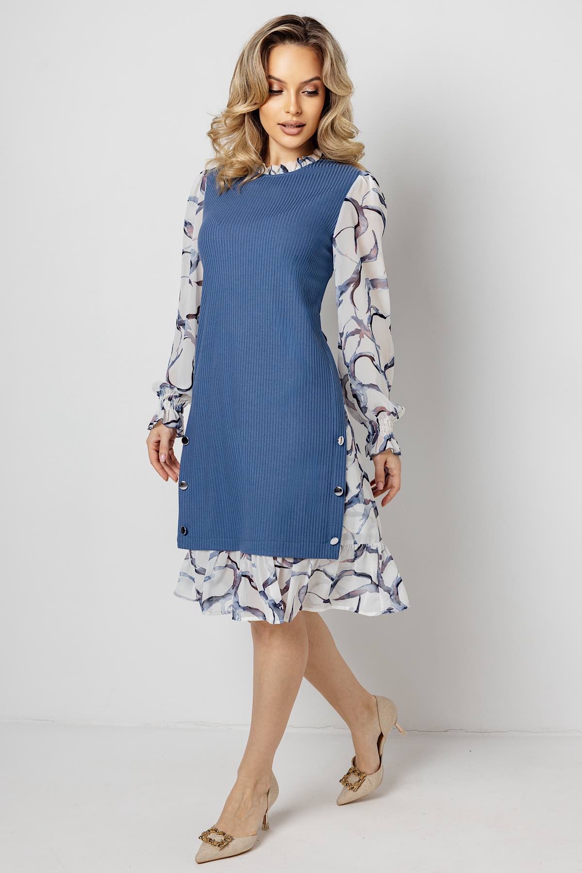 Описание: Платье женское классическое, нарядное. Основа платья выполнена из трикотажного полотна - "лапша", рукав - из шифона. Рукав длинный. Платье красивое пышное, немного свободное в крое.