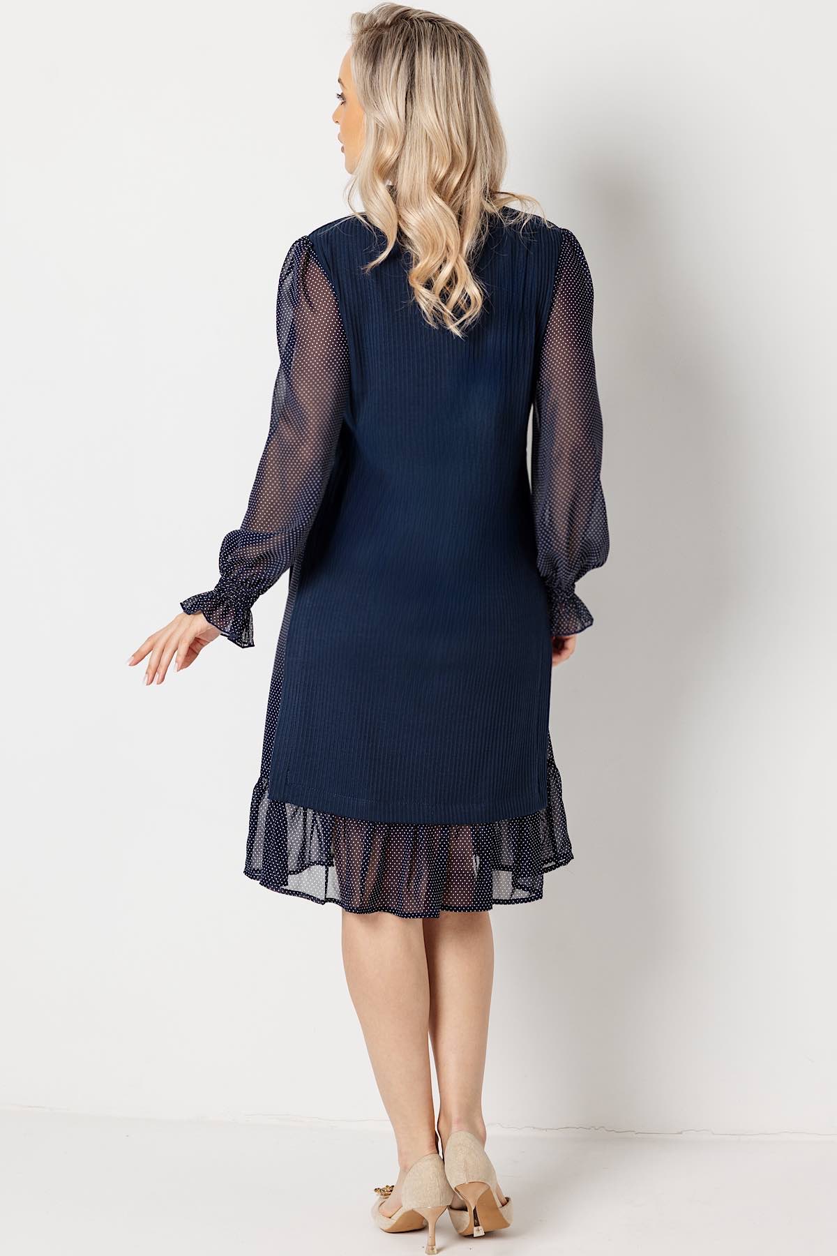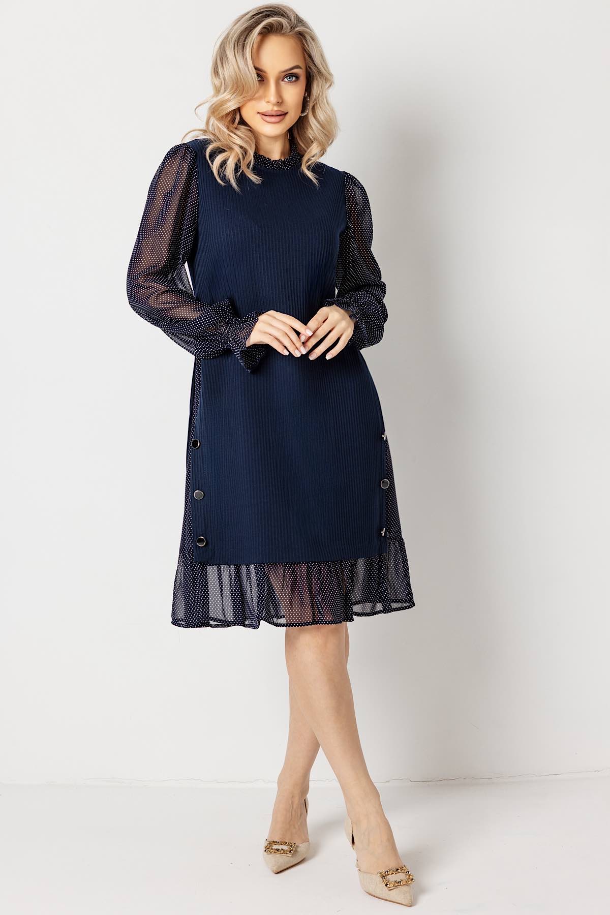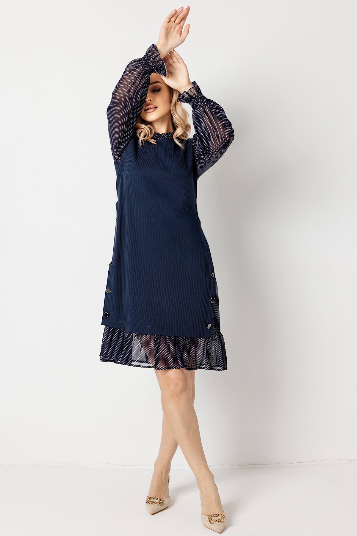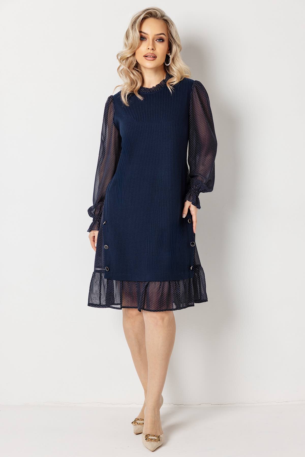 Описание: Платье женское классическое, нарядное. Основа платья выполнена из трикотажного полотна - "лапша", рукав - из шифона. Рукав длинный. Платье красивое пышное, немного свободное в крое.