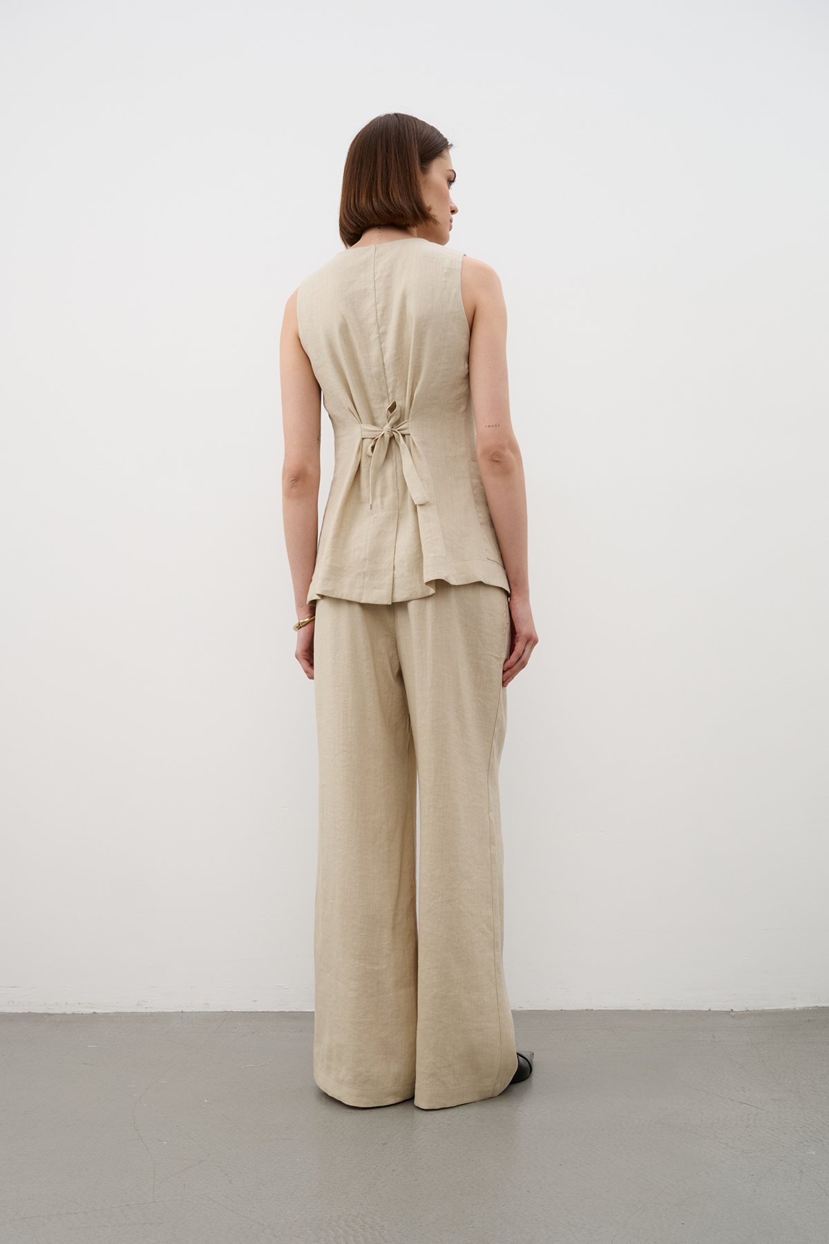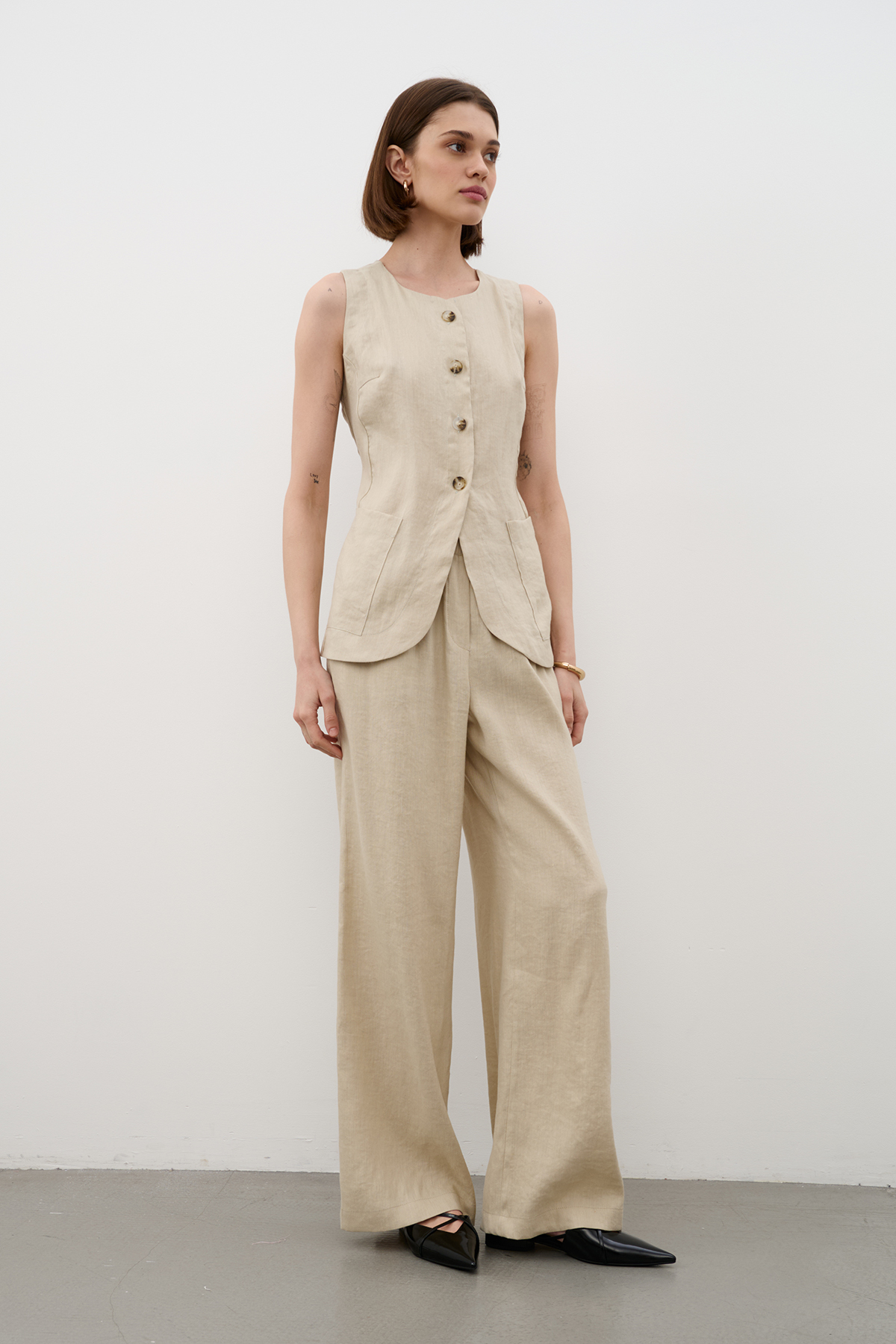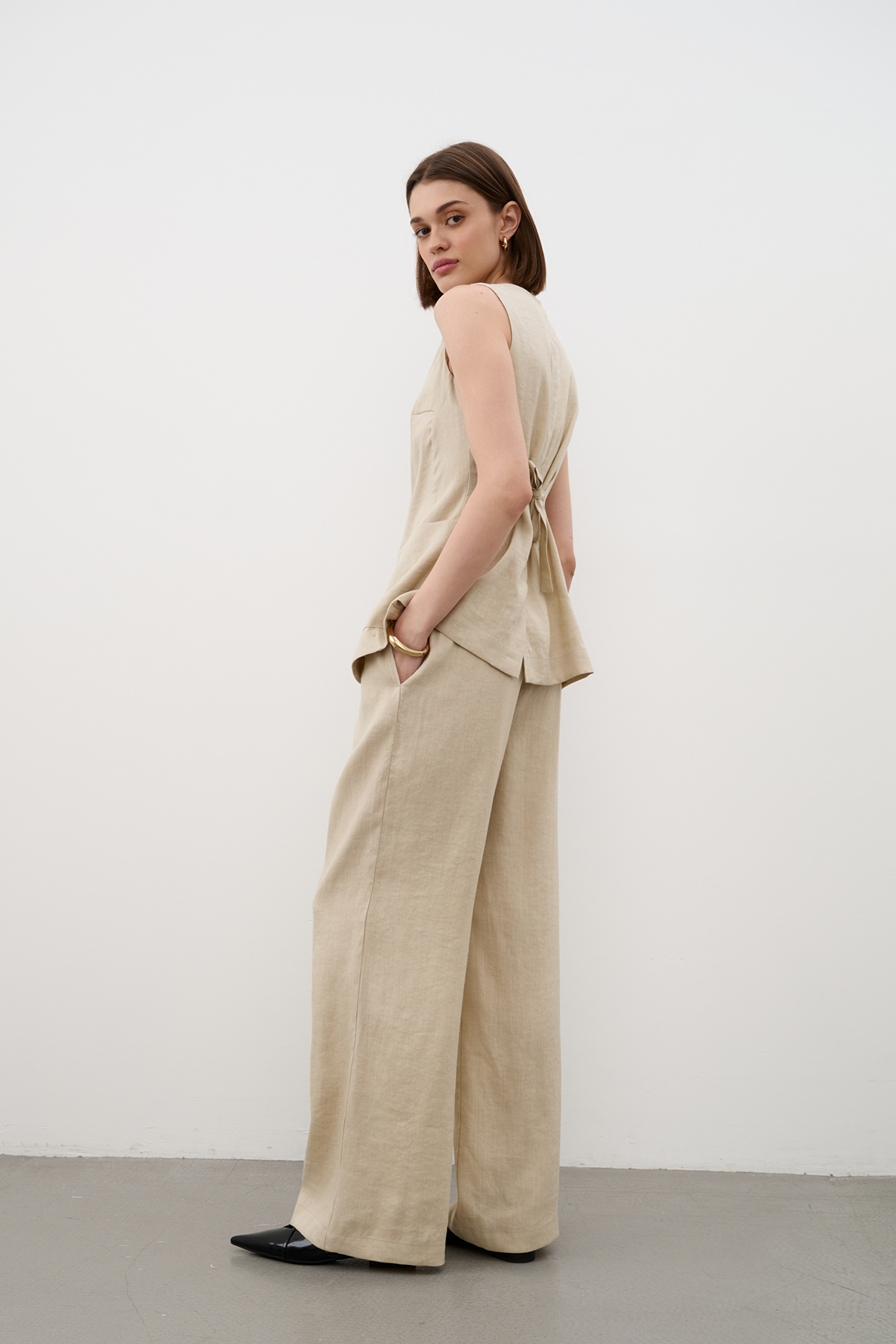 Прямые брюки со стрелками помогут в создании официальных образов. Модель с высокой посадкой сшили из плотной фактурной ткани, которая хорошо держит форму. Притачной пояс надежно фиксируется на талии, или дополнительно стилизуйте его с ремнем.