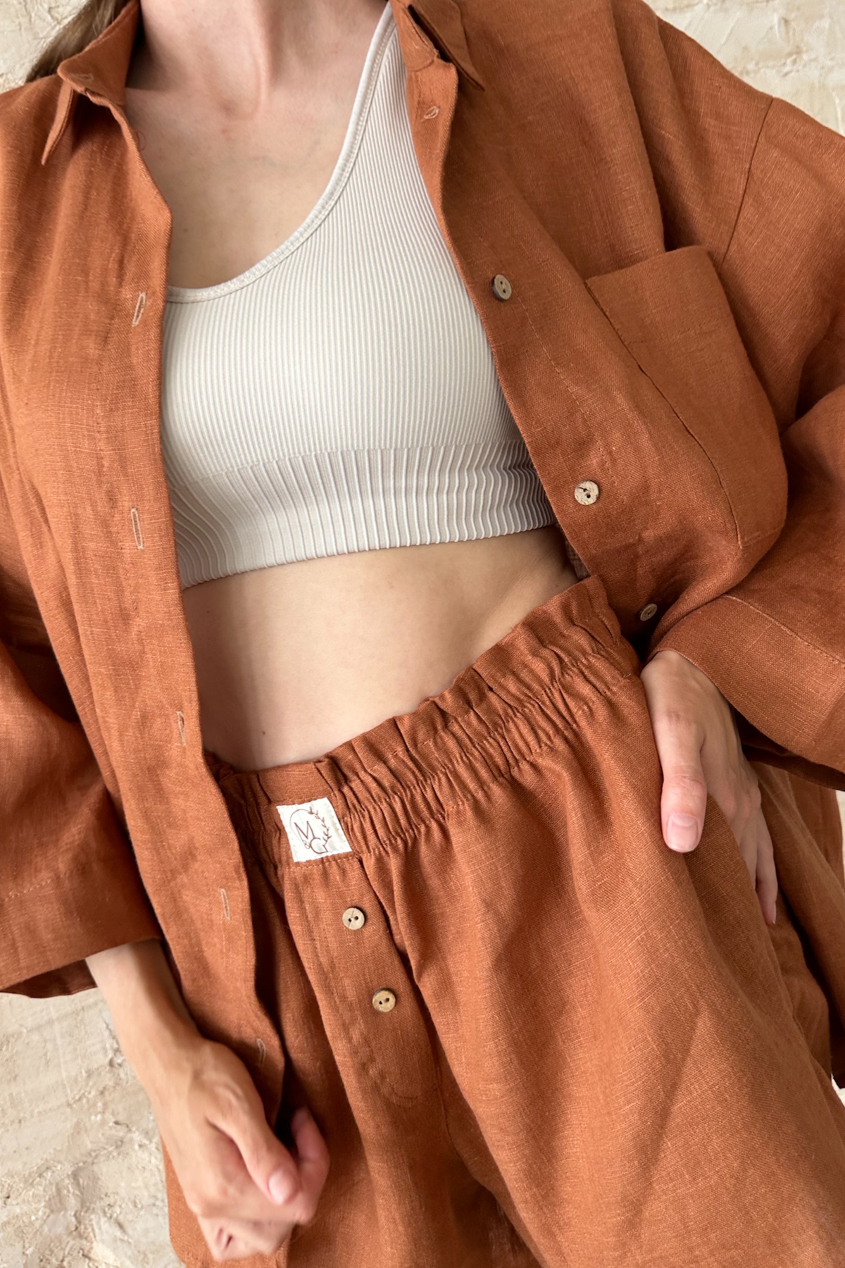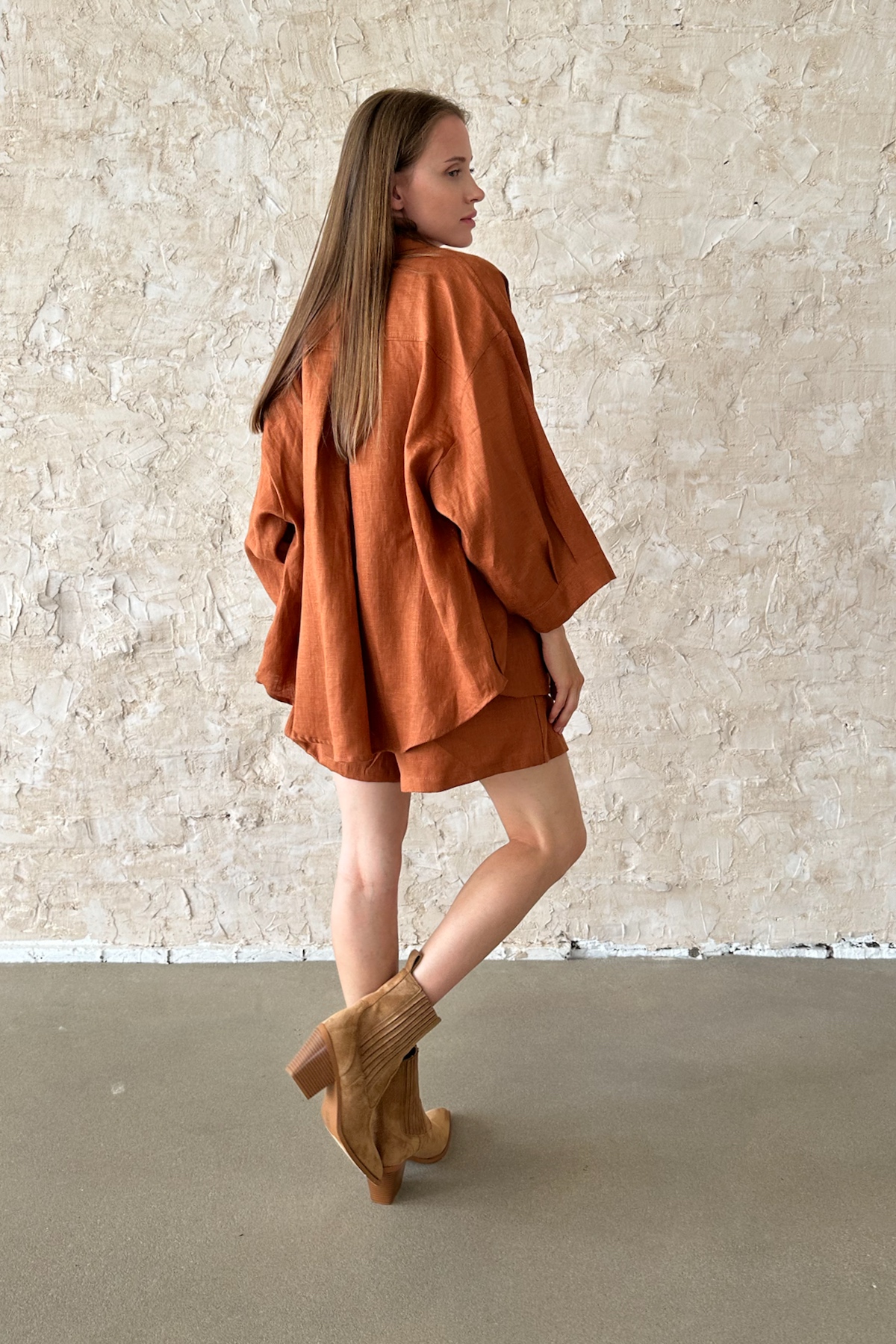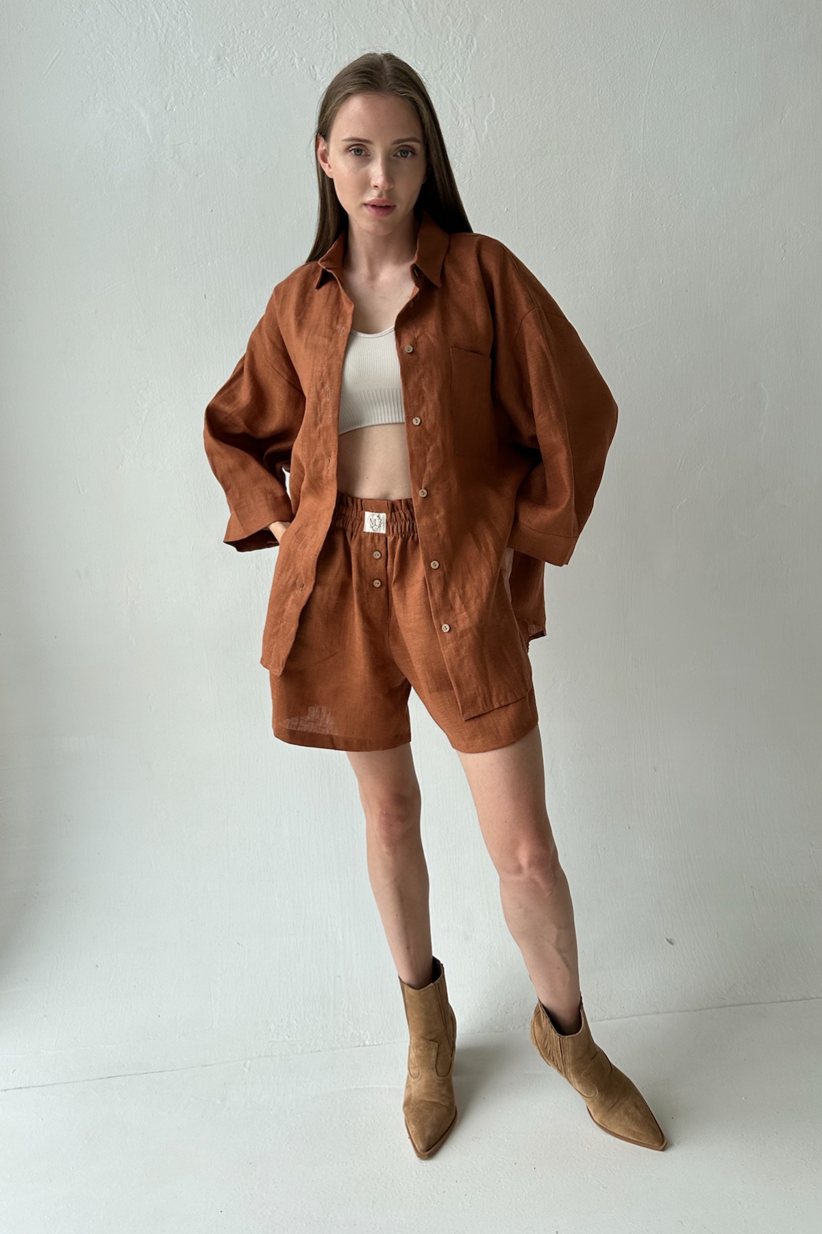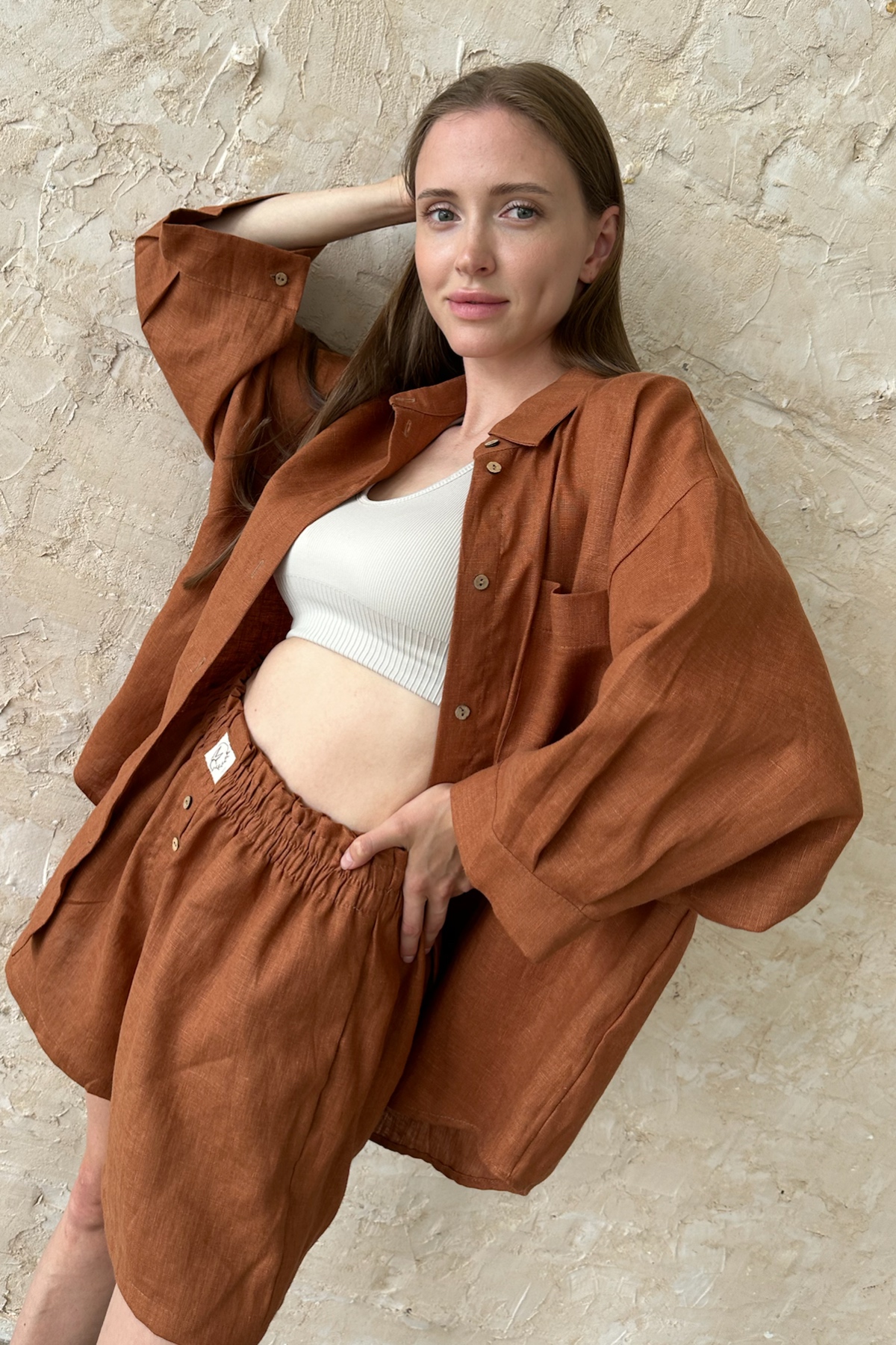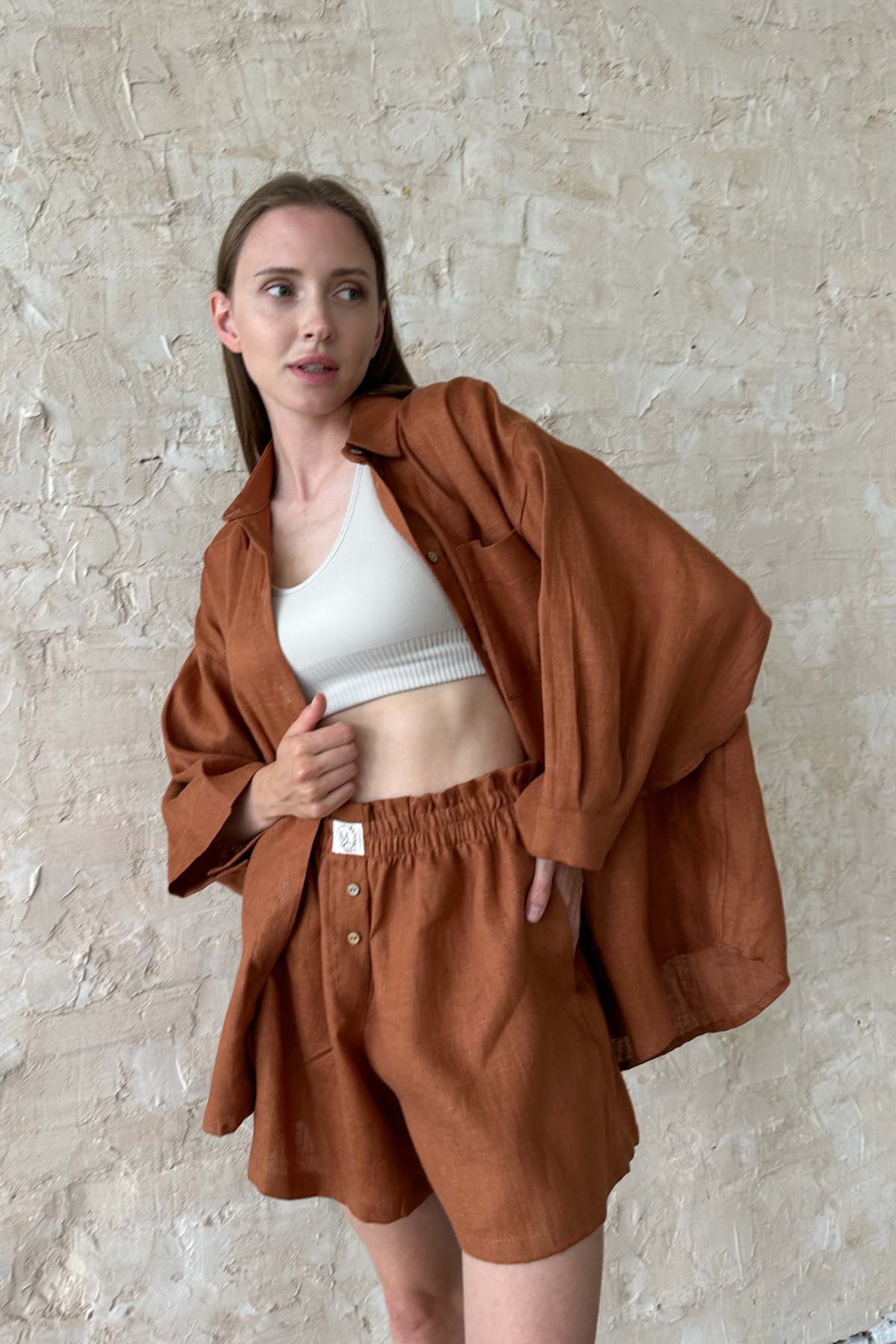 Описание: Все изделия имеют безупречный пошив и идеальную посадку. Костюм SET019 рубашка удлиненная с шортами из 100% мягкого льна. Свободный крой рубашки и шорт не стесняет ваши движения, шорты с карманами (высокая посадка, на мягкой резинке, ручной работы) не давят и подходят беременным. Костюм идеально садится на любой тип фигуры. Все изделия уникальны и отшиваются небольшими партиями. Стирка изделий вручную либо использовать машинную стирку в деликатном режиме (не более 30 градусов).