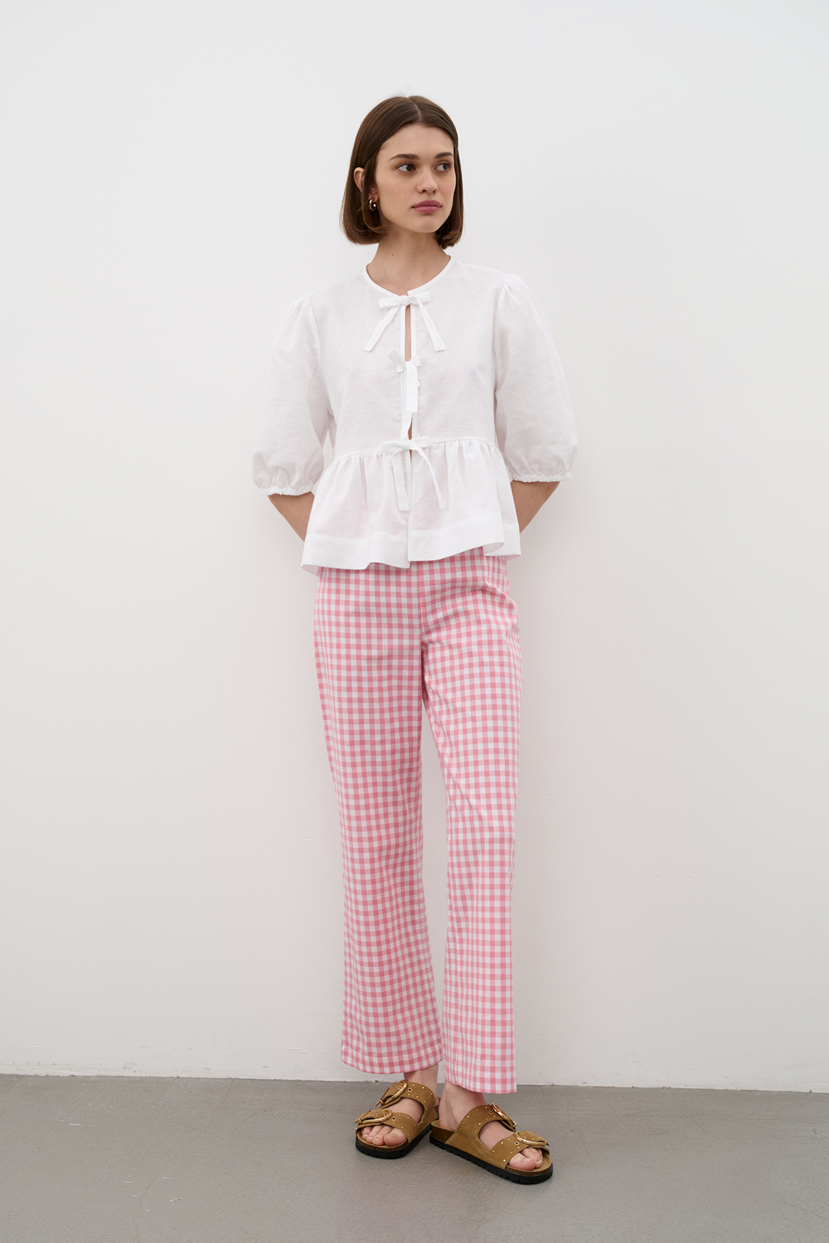 TR2535_Pink Checkers (Брюки женские, Rise )