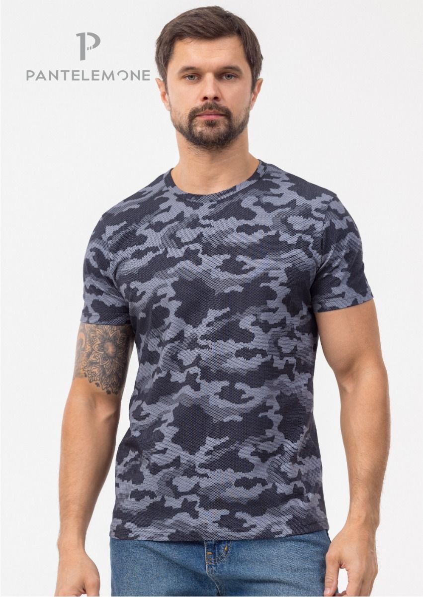 Мужская камуфляжная футболка подарочной серии - 23 февраля. Футболка с втачным рукавом, полуоблегающего силуэта, с круглым вырезом горловины. Выполнена из набивного полотна.