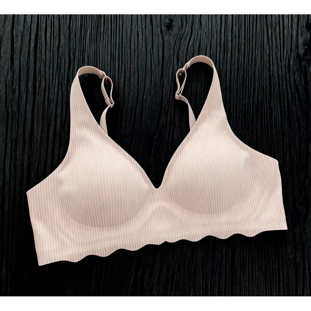 Топ-бюстгальтер гладкий, бесшовный. В рубчик, на чашке, на узкой регулируемой лямочке.