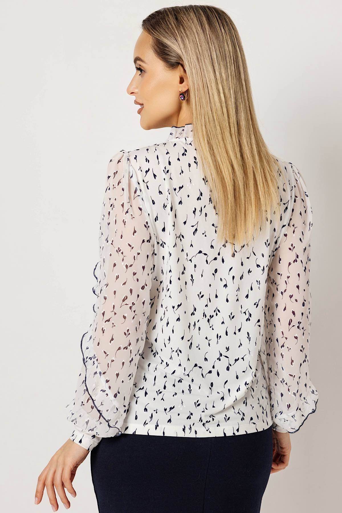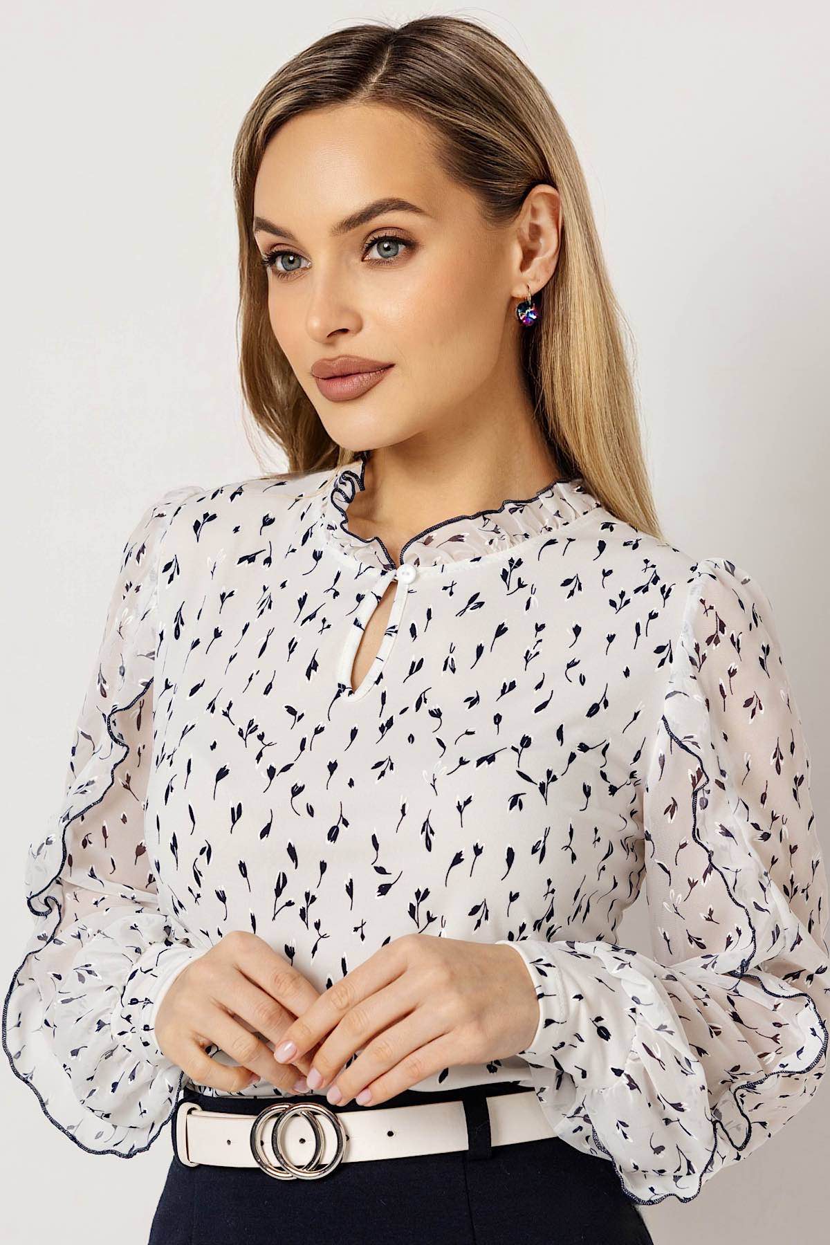 Описание: Блузка выполнена из трикотажного полотна, рукав длинный шифоновый, задекорирован рбшей. Горловина украшена рюшей с застежкой на петлю и пуговицу. Элегантно смотрится, легко стирается, не теряет и не меняет цвет. Так как в ткани используется большое количество вискозы, ткань дышащая и легко пропускает воздух, сохраняет форму и посадку даже после многочисленных стирок. Блузка представлена в ярких, современных и модных расцветках. Блузка станет неотъемлемой частью Вашего образа. Блуза прекрасно подходит для торжеств и повседневных мероприятий. Сочетайте блузу с брюками, юбками, и с любым типом обуви. Блузка бренда RISE - это стиль, качество и комфорт!