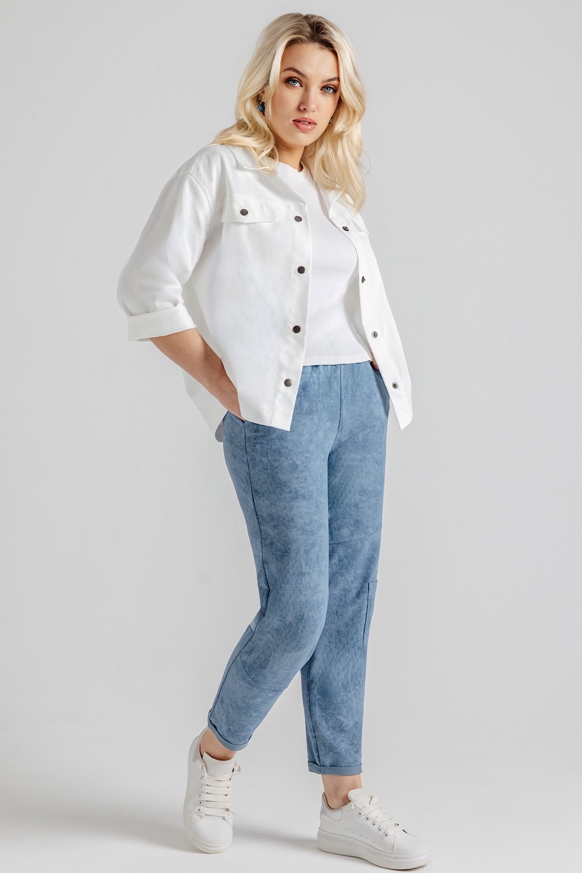Описание: Брюки женские из футера-двунитки. Трикотажные женские брюки свободного кроя, слегка зауженные к низу, с двумя боковыми карманами. Высокая посадка и пояс на широкой резинке – 4см. Трикотажные брюки с идеальной посадкой модного силуэта.