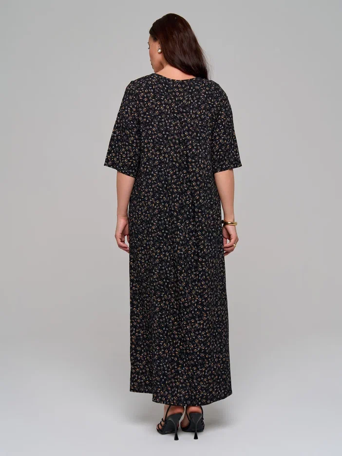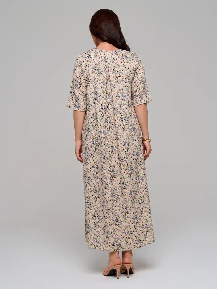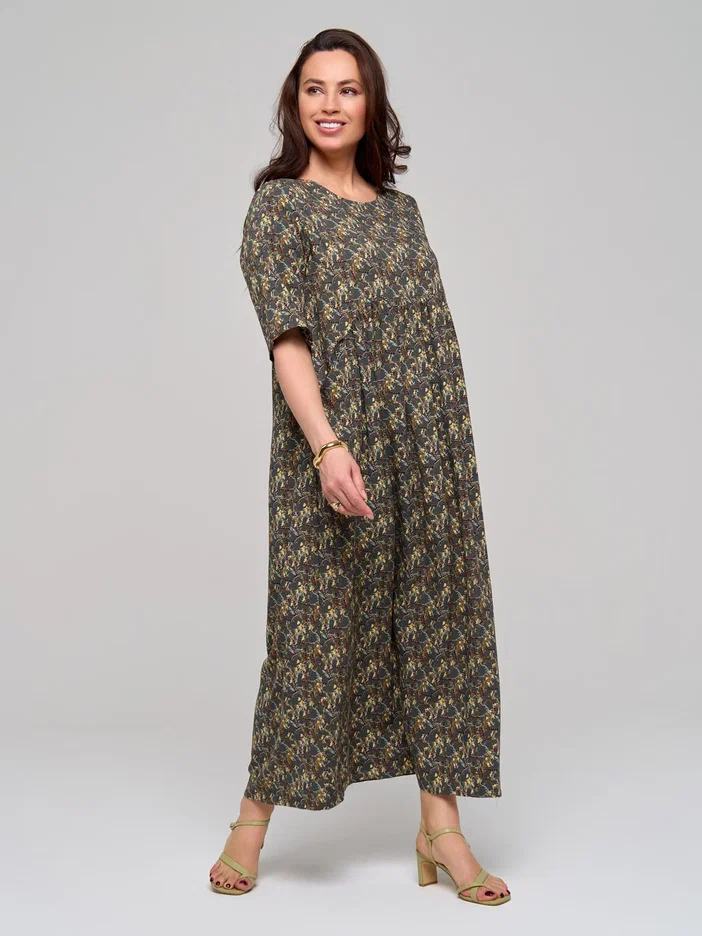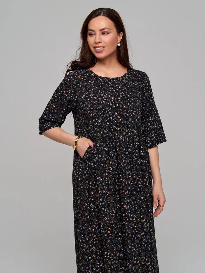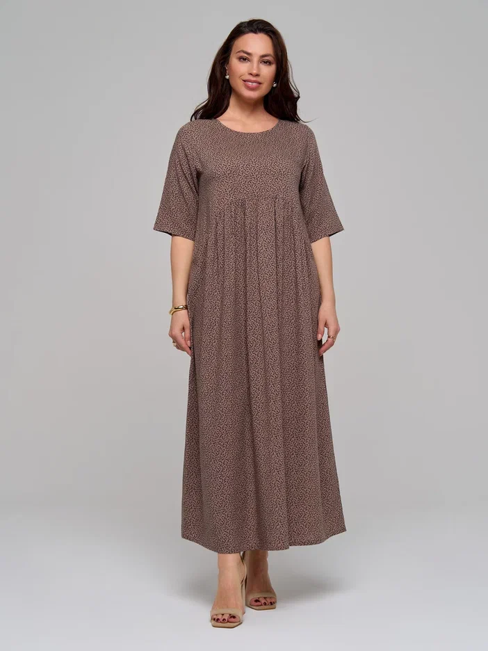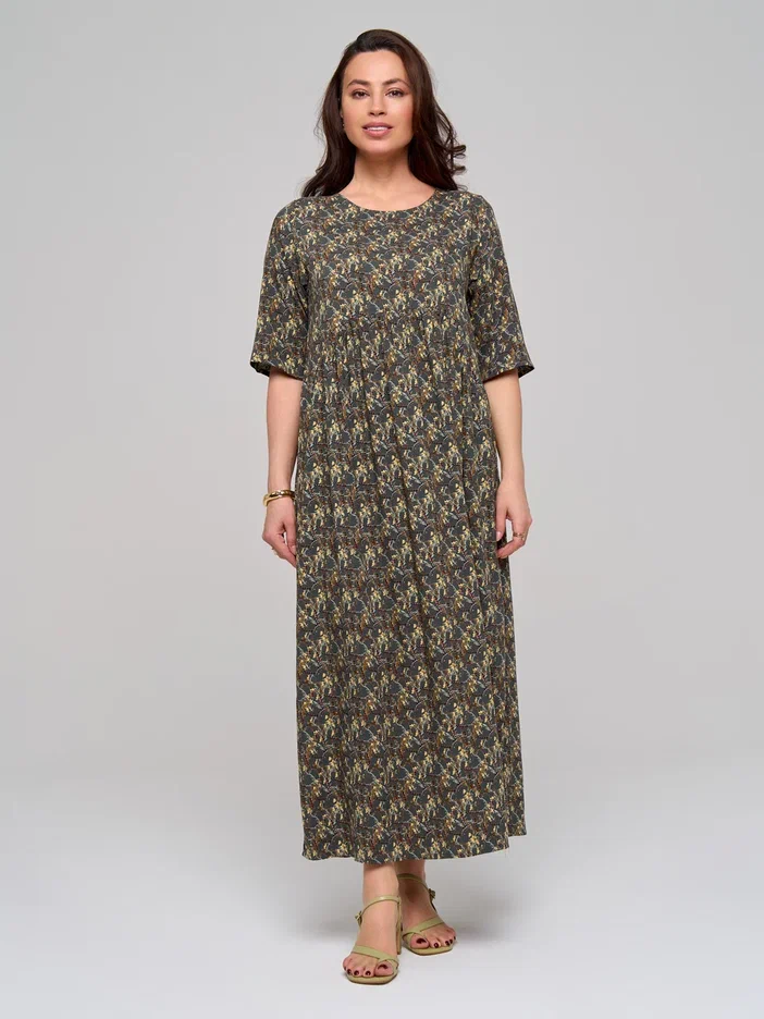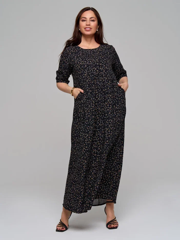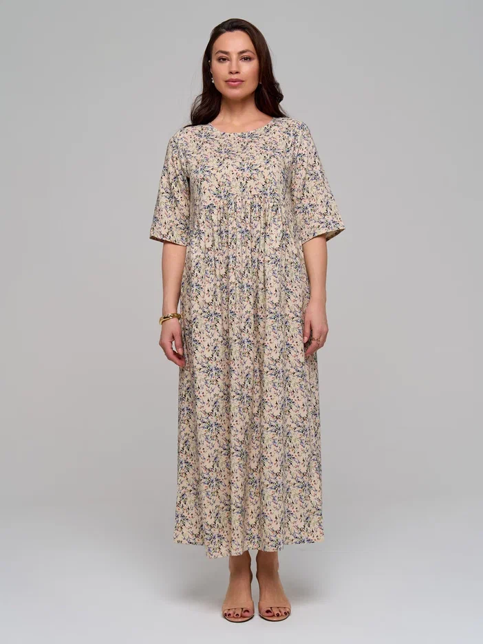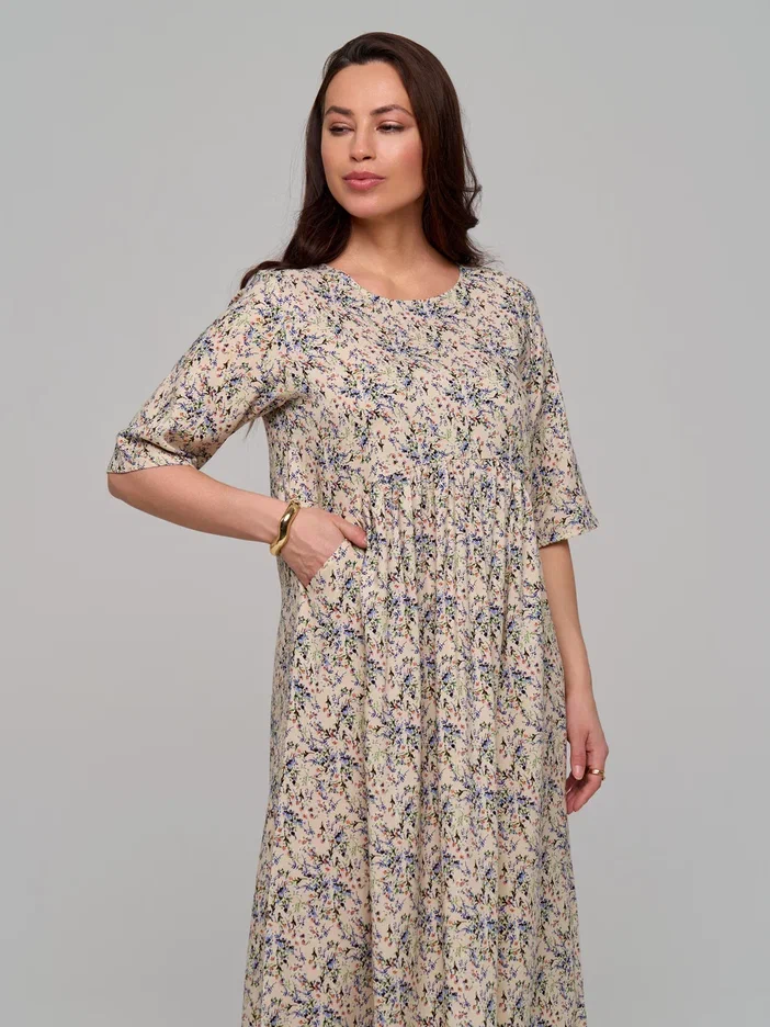 Повседневное длинное женское платье из штапельной вискозы в стиле бохо с удлиненным рукавом до локтя (рукав 3/4) - лучшее летнее решение для женщин. Завышенная талия, воздушная сборка на полукруглом лифе и элегантная складка на спинке помогут скорректировать фигуру и подчеркнут ваш силуэт. Благодаря свободному крою эта модель прекрасно подойдёт для любого типа фигуры и любого возраста. Широкий крой юбки не сковывают движения по бокам и в бедрах. Большие размеры позволят подобрать для себя наряд любой покупательнице.