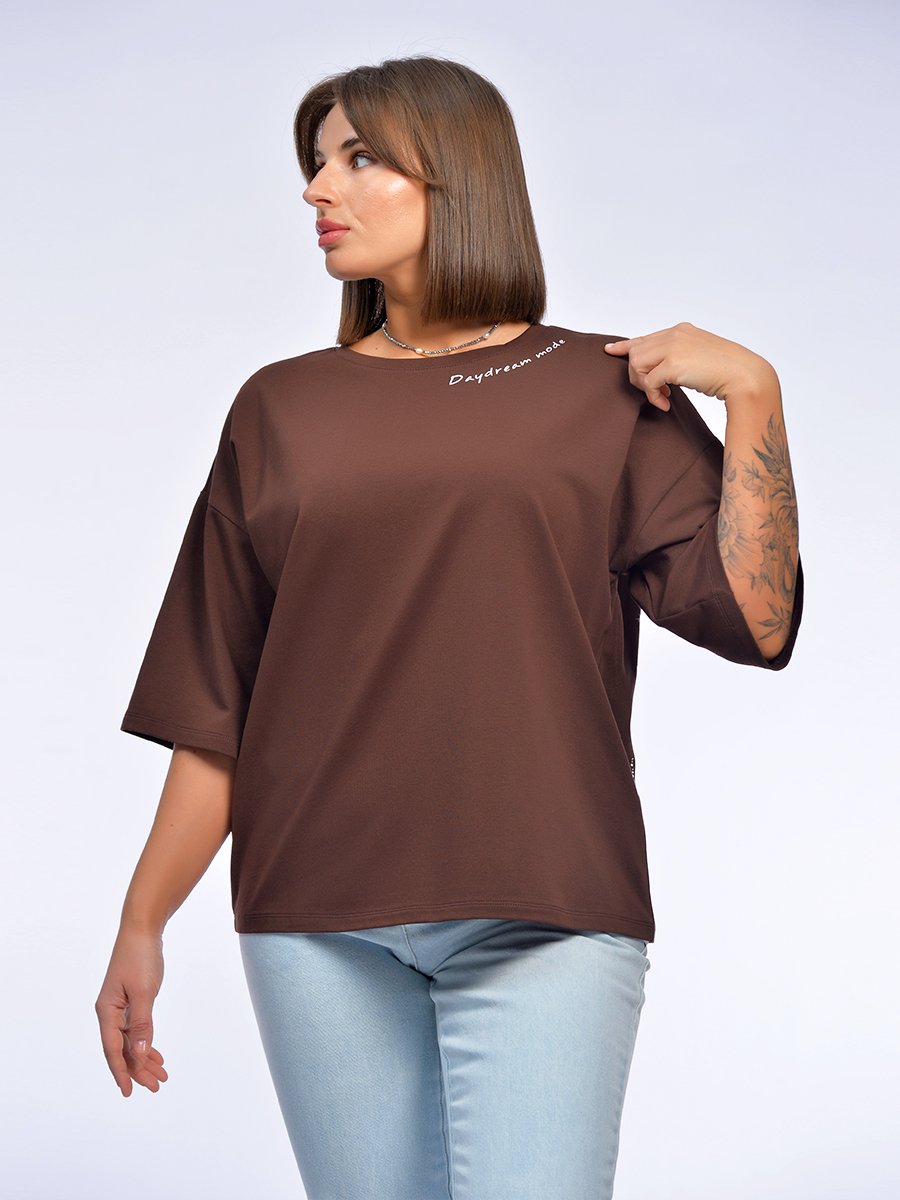 Свободный прямой силуэт, аккуратная горловина, рукав, закрывающий две трети предплечья обеспечивает визуальную легкость рук, не сковывает движений. Уникальный дизайн модели: белый текстовый принт вдоль линии горловины «Daydream mode» (режим мечтаний) не перегружает изделие. Акцентный принт на спинке привлекает внимание и создает эффект дизайнерской вещи.Он читается максимально контрастно и графично.!