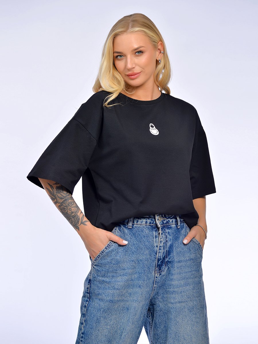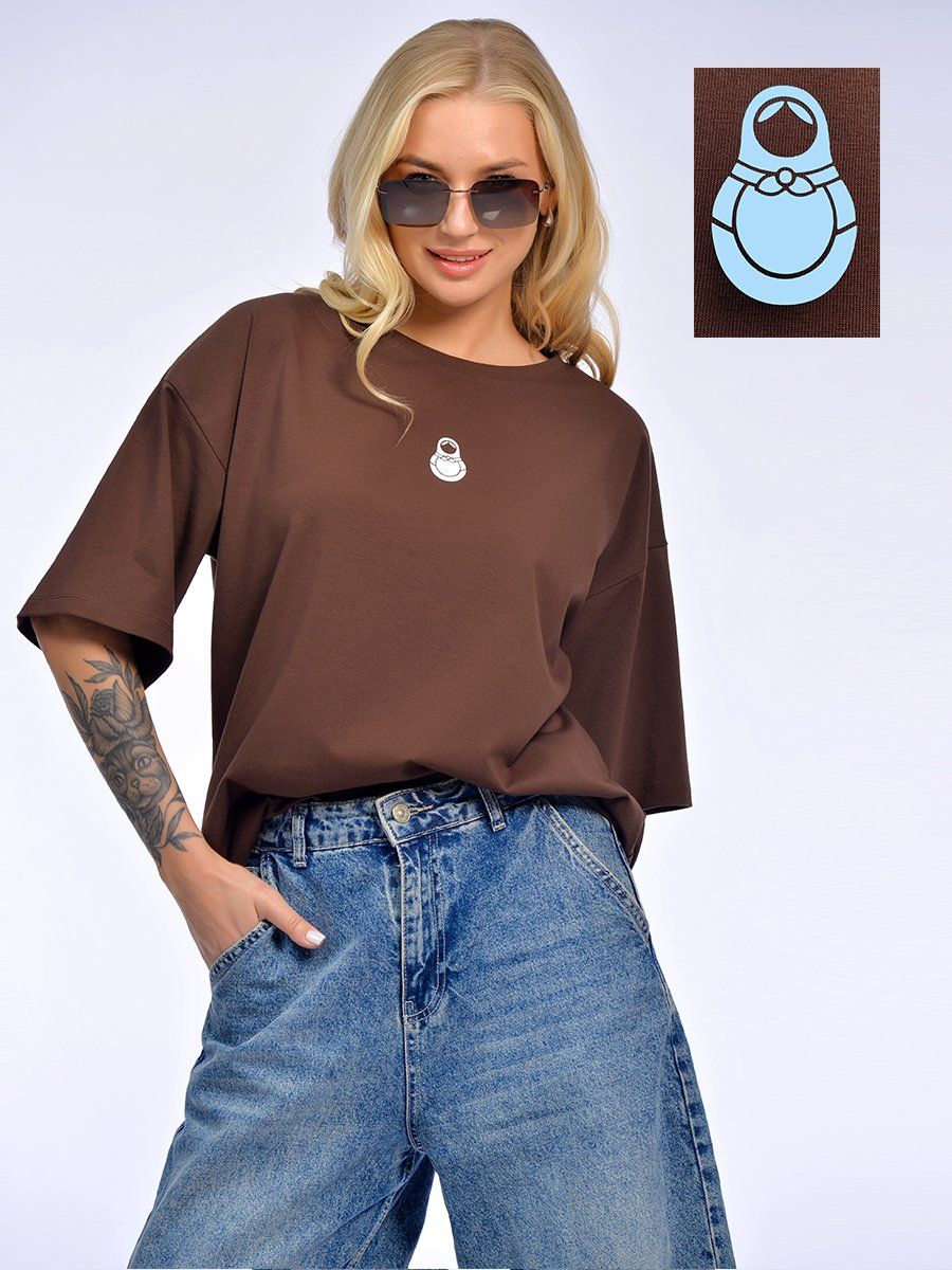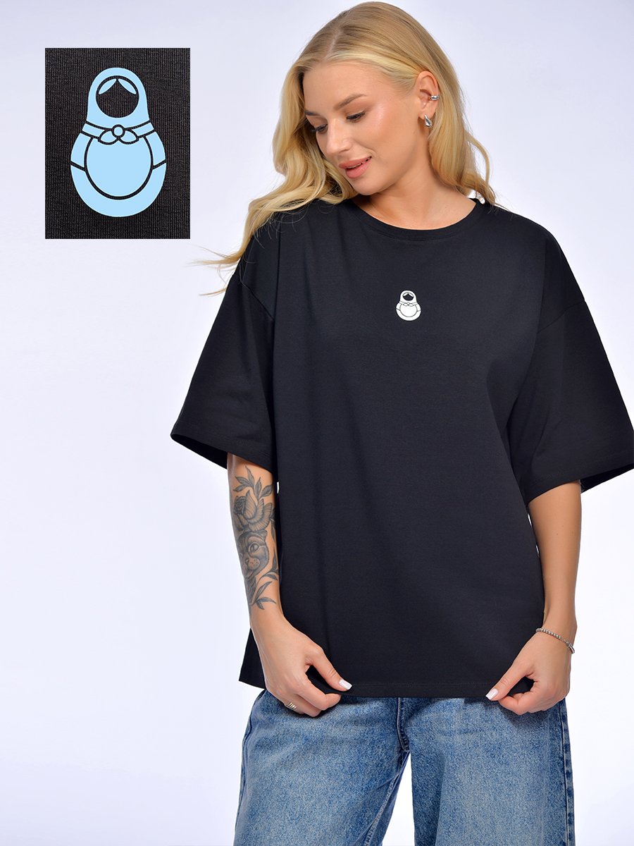 Базовая футболка из хлопка с эластаном с WOW-эффектом. Комфортная свободная посадка на фигуре. Полотно премиум качества плотностью 190 г/м2, хлопок с добавлением эластана. Плотное, дышашее, мягкое, формоустойчивое и гигроскопичное, идеально для летнего сезона. Эластан в составе исключает возможность вытягивания и деформации формы изделия. Свободный силуэт, спущенное плечо, широкий рукав. Модель украшена минималистичной наклейкой по центру полочки с изображением Матрешки: трендовая этно-эстетика. Принт с WOW- эффектом: белого цвета-в помещении, меняет цвет на голубой - при воздействии УФ-лучей. «Живая» футболка ,которая реагирует на выход из помещения! Идеальна для эмоциональной покупки. Для дам, ценящих необычные детали и современные решения в дизайне. Модель для активного летнего сезона, отпуска, городских прогулок.