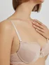 Базовый бюстгальтер классической формы выполнен из эластичного кружева с оригинальными узорами. Формованные чашки на косточках с Push-up (для размеров 70AB, 75ABC, 80B) и без Push-up (для размеров 70C, 75DE, 80CDE, 85BCD). Центральная деталь декорирована бантиком. Регулируемые бретели съемные.