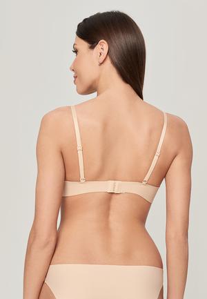 Бесшовный бюстгальтер Peony с формованной чашкой с эффектом push-up во всех размерах. Съёмные бретели можно застёгивать двумя способами: классическим и крест накрест. Незаметен под одеждой.