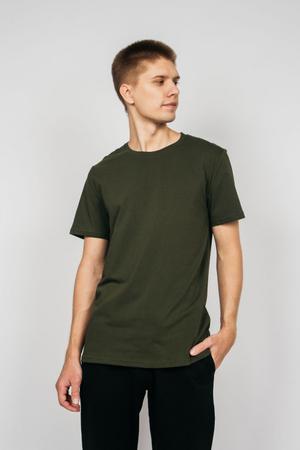 Мужская однотонная футболка с круглым вырезом горловины и коротким рукавом.
