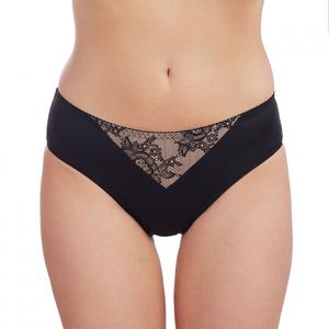 Классические трусы слип со средней линией талии. Выполнены из эластичного трикотажного полотна. На передней детали вставка их неэластичного кружевного полотна, хлопковая ластовица.