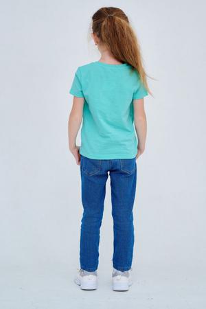 Футболка для девочки из кулирки. Горловина обработана воротником из основного полотна. Рукав втачной, короткий.